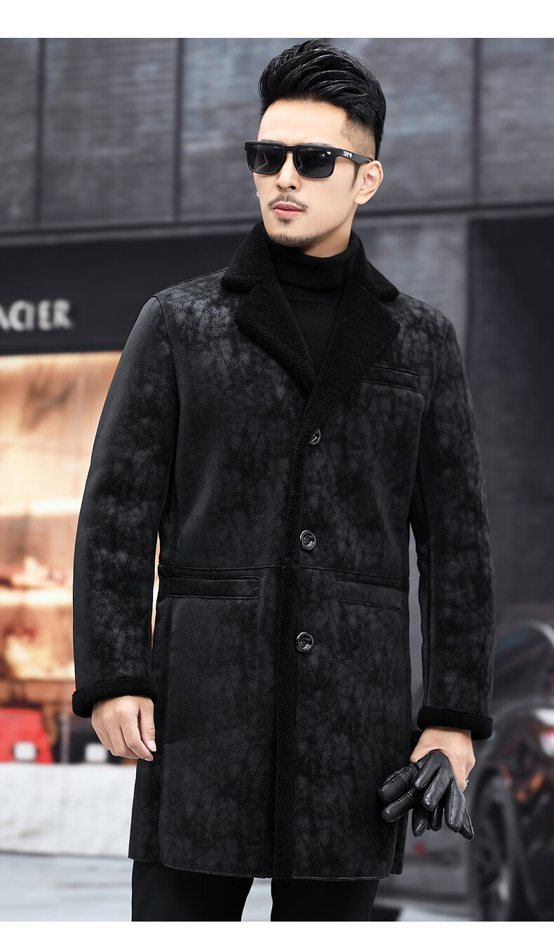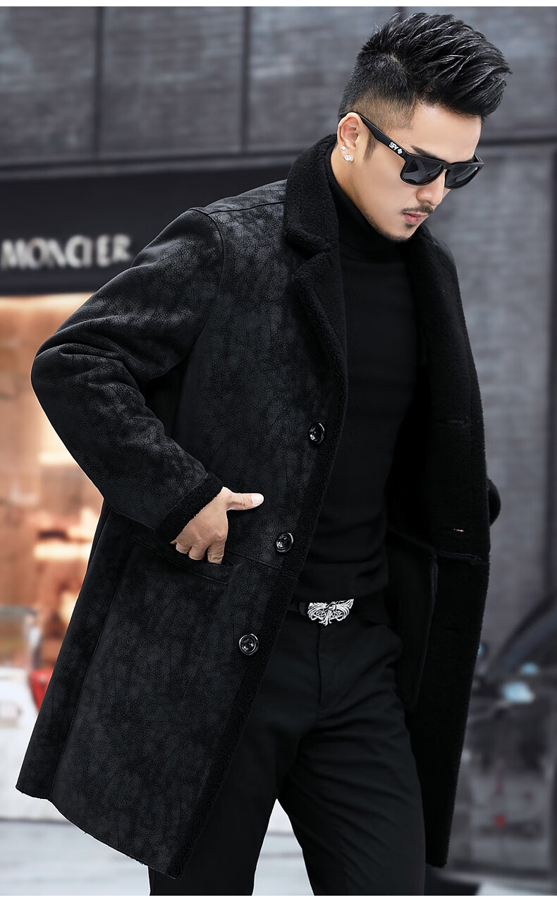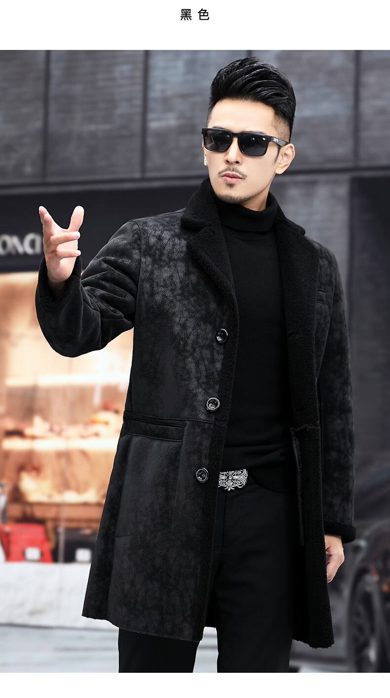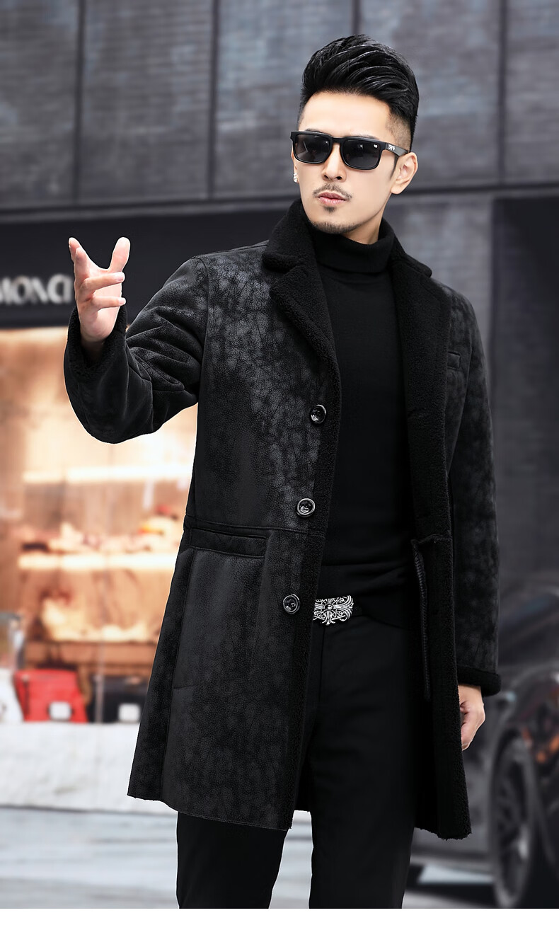 CHEVALPES international first-line brand sheepskin men's long suit lapel coat genuine leather coat men's windbreaker imitation fur black M 165