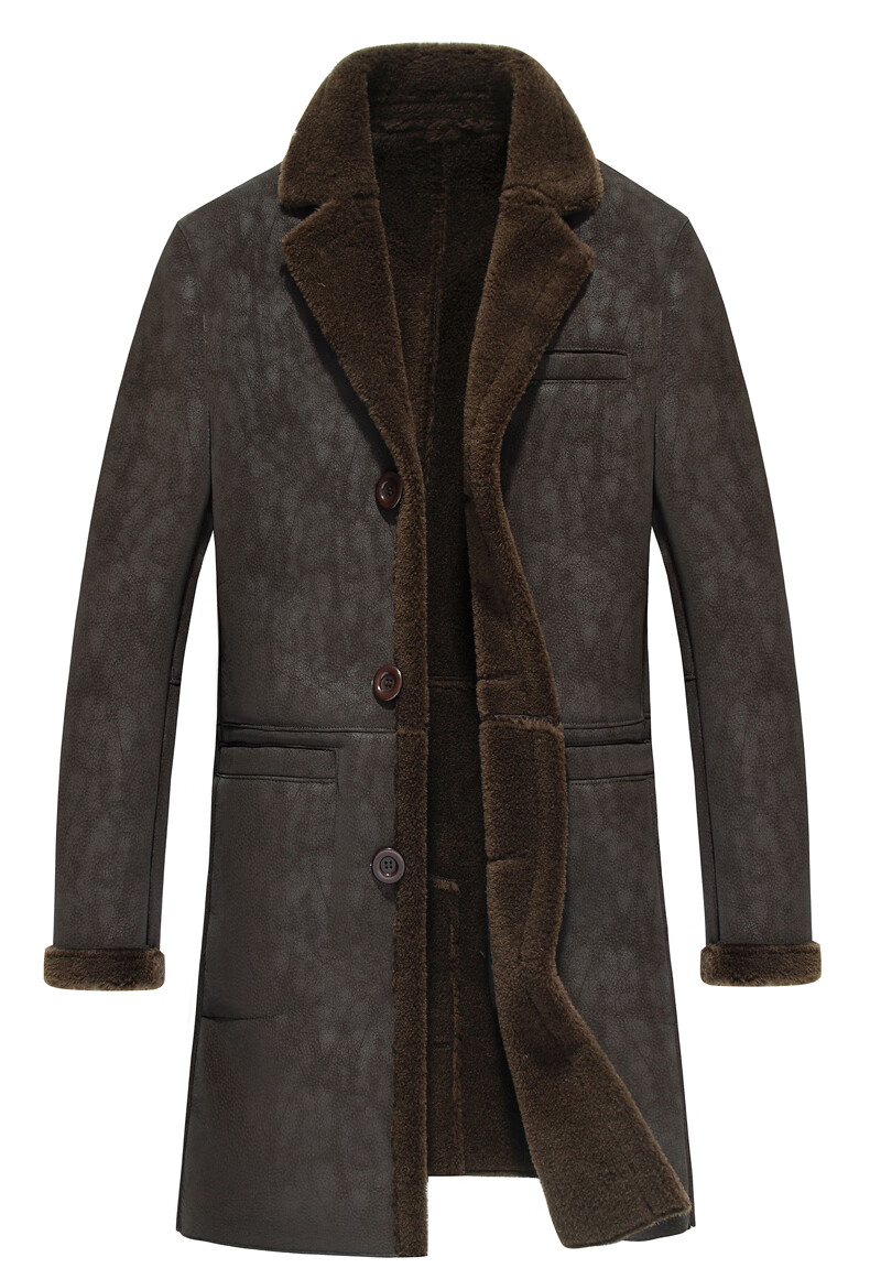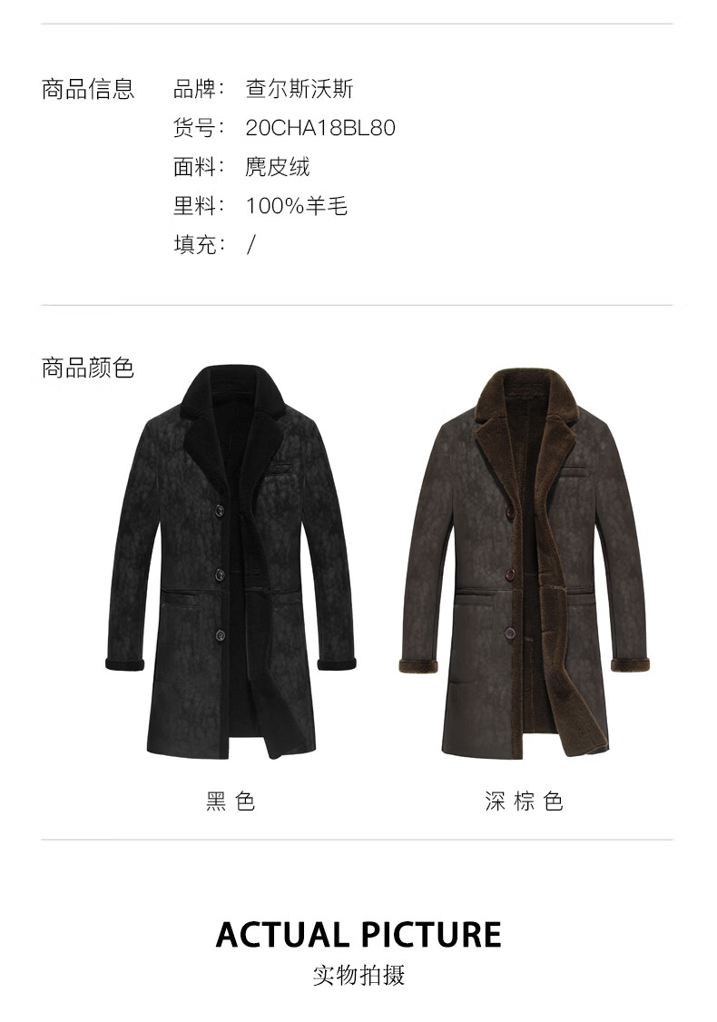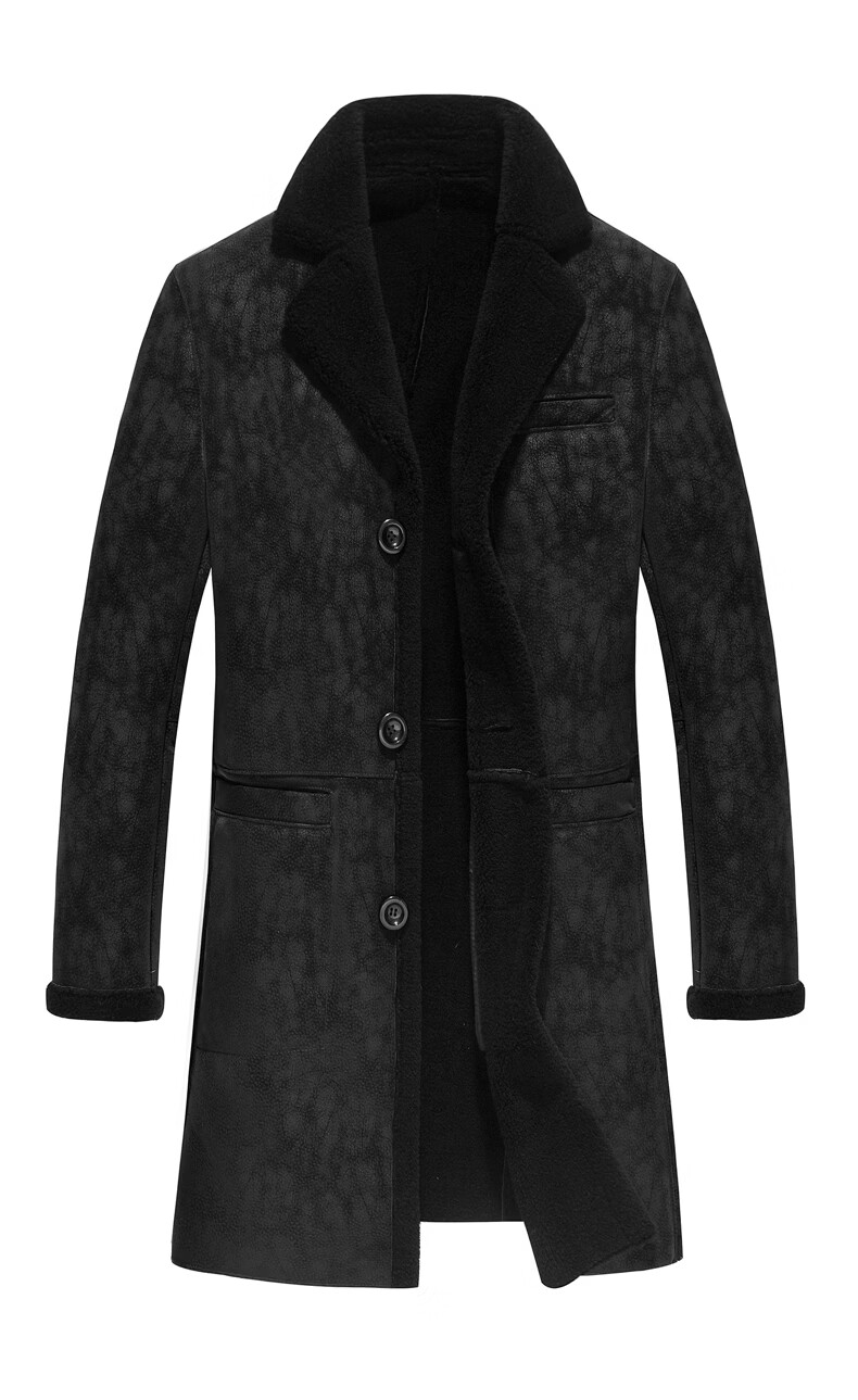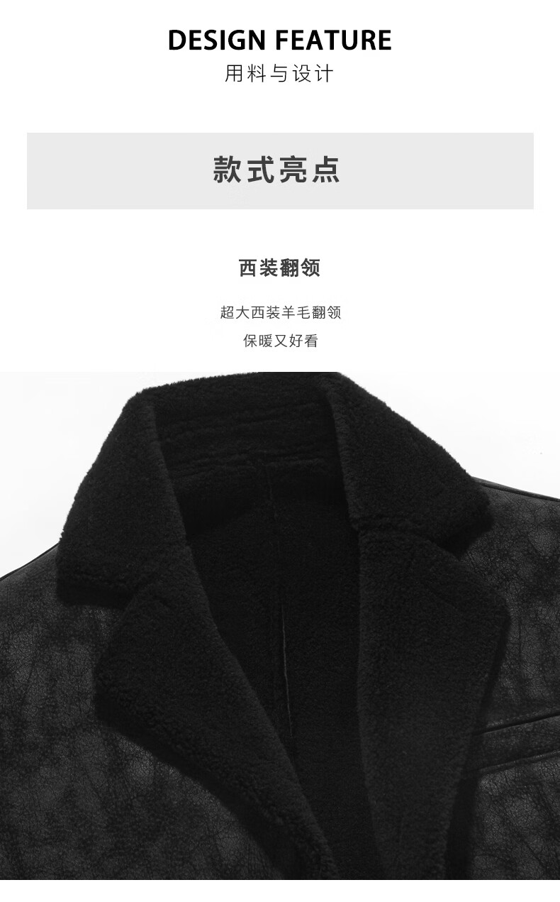 CHEVALPES international first-line brand sheepskin men's long suit lapel coat genuine leather coat men's windbreaker imitation fur black M 165