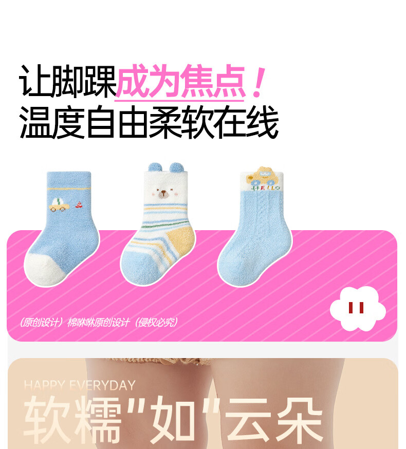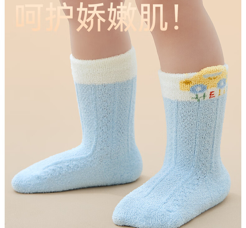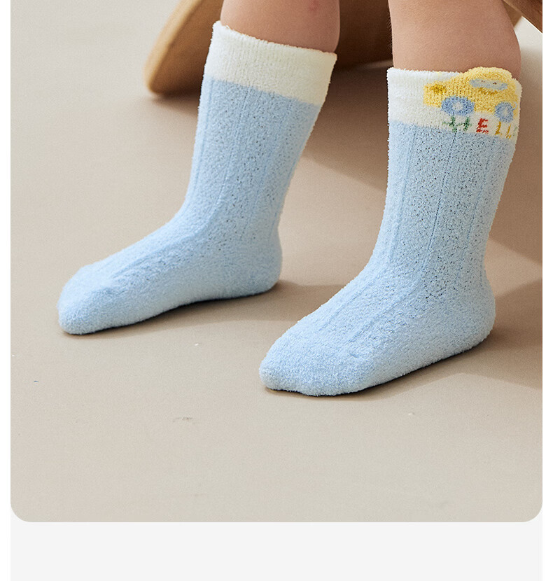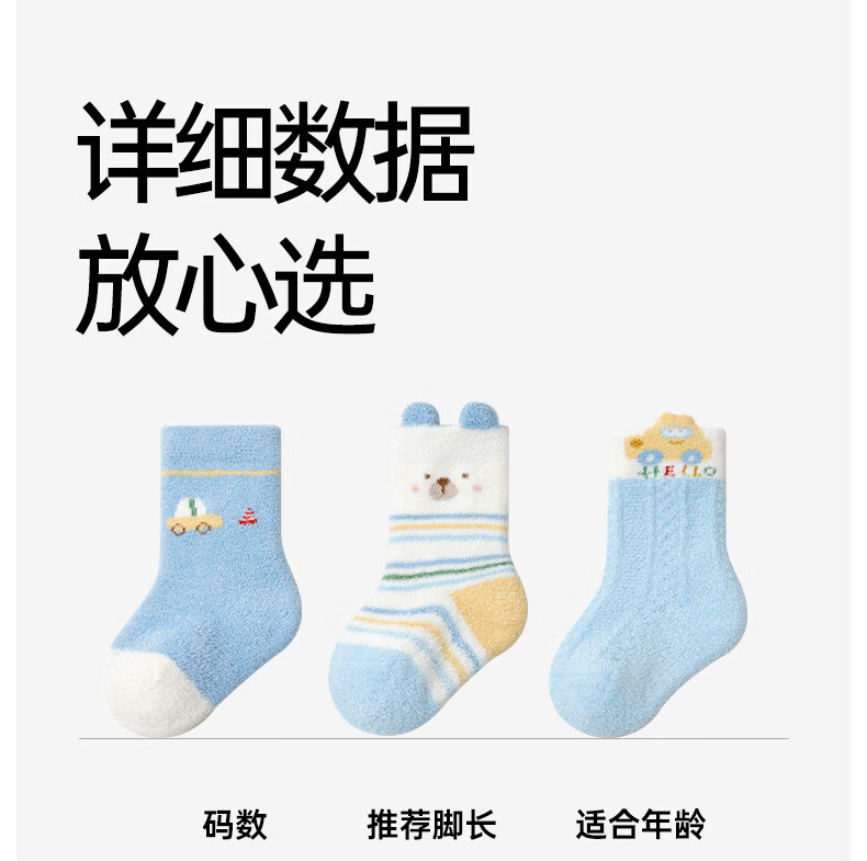 Cotton half-sided velvet socks for infants and toddlers, thickened and velvet, autumn and winter mid-calf socks, soft and comfortable, newborn boys and girls baby socks B5010 - baby boy style - 3 pairs, warm double-sided velvet, 1-3 years old - recommended foot length 11-13cm