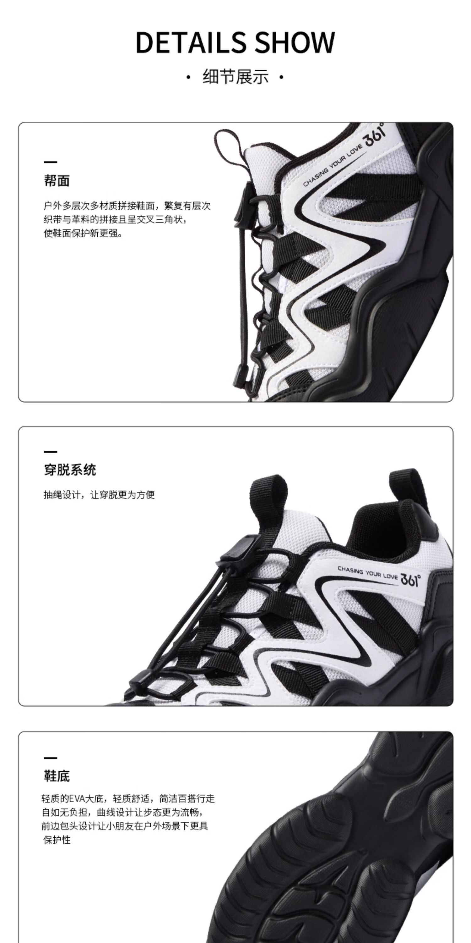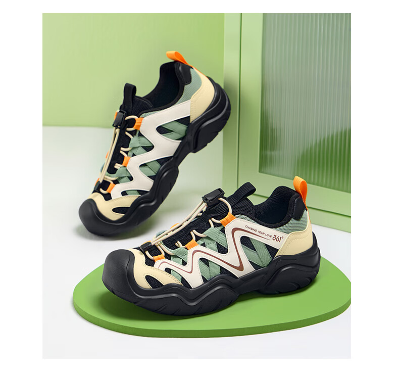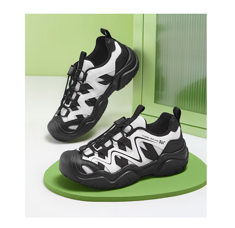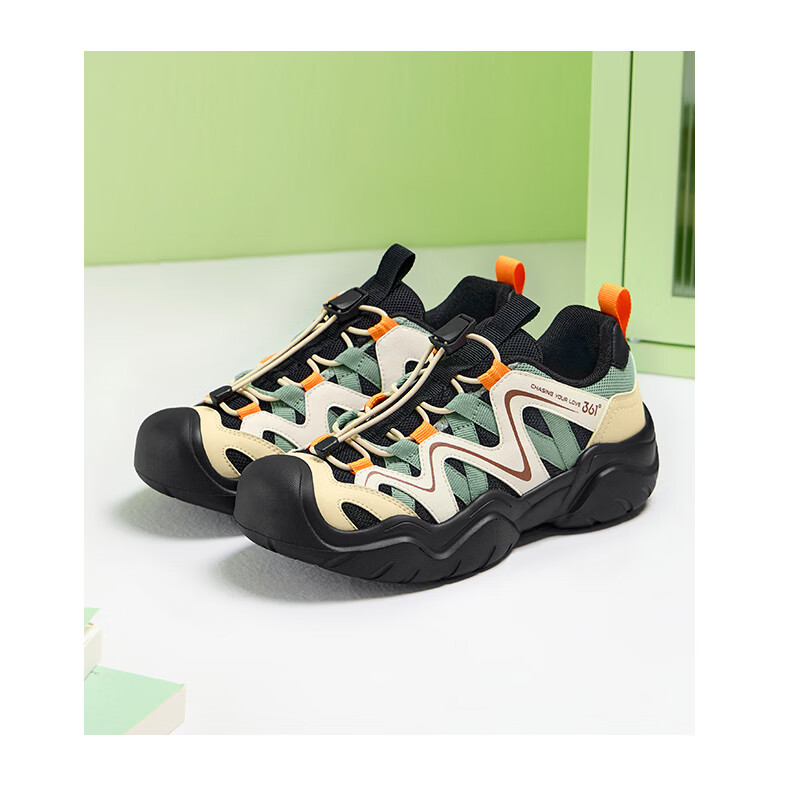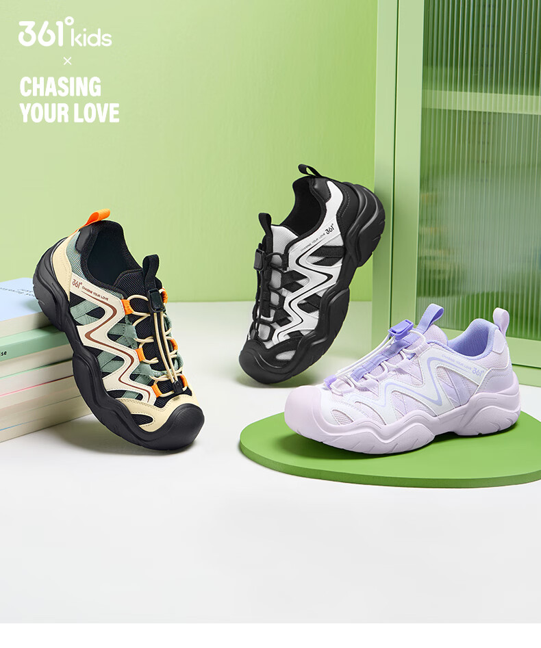 361 Children's casual shoes, boys and girls, non-slip outdoor shoes, 2026 spring, medium and large children's lightweight wear-resistant shoes, carbon black/oatmeal gray/tile green 35