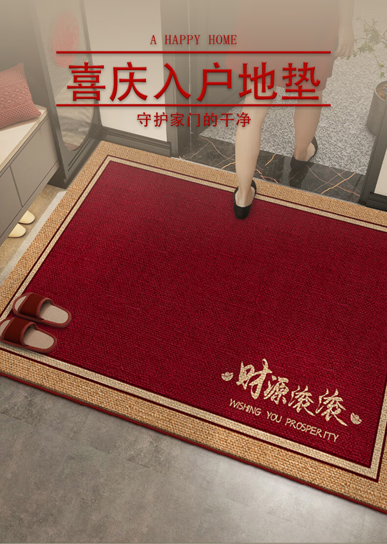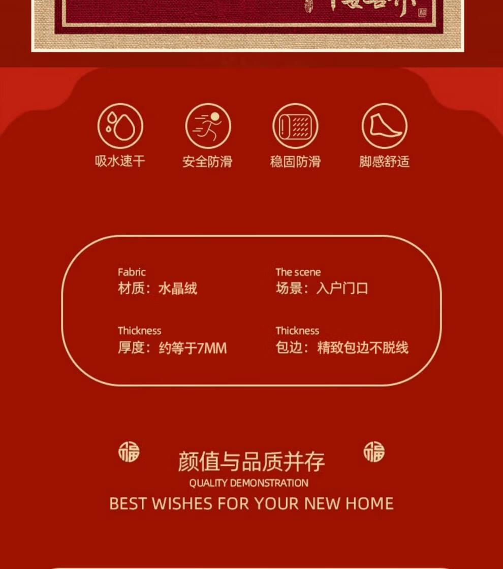 Pupan 2025 new entry door floor mat red festive entrance carpet entrance door mat household housewarming door mat N-Shishi Ruyi A-horizontal version 140cm*200cm water-absorbent, non-slip and wear-resistant