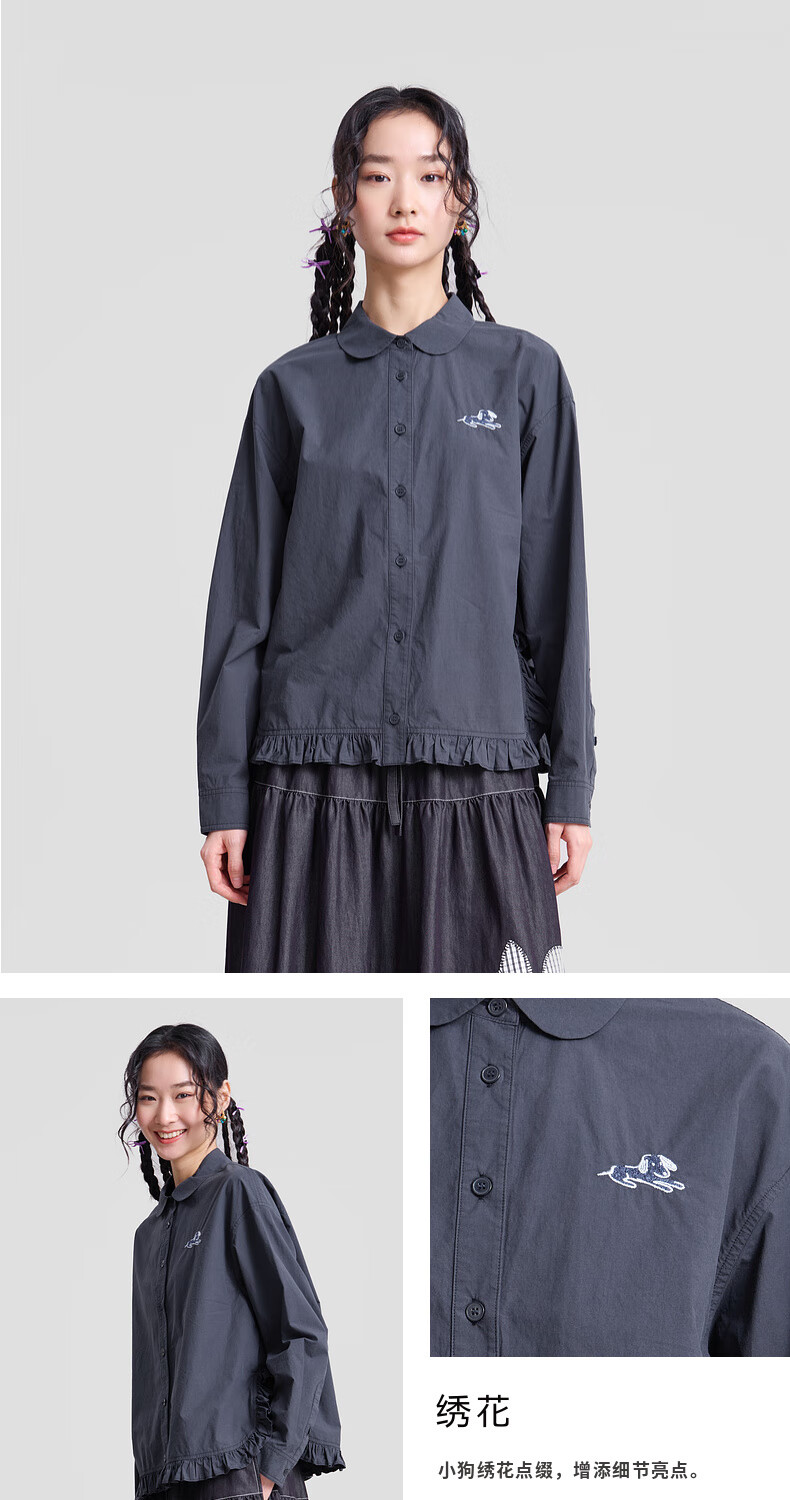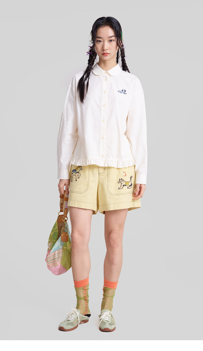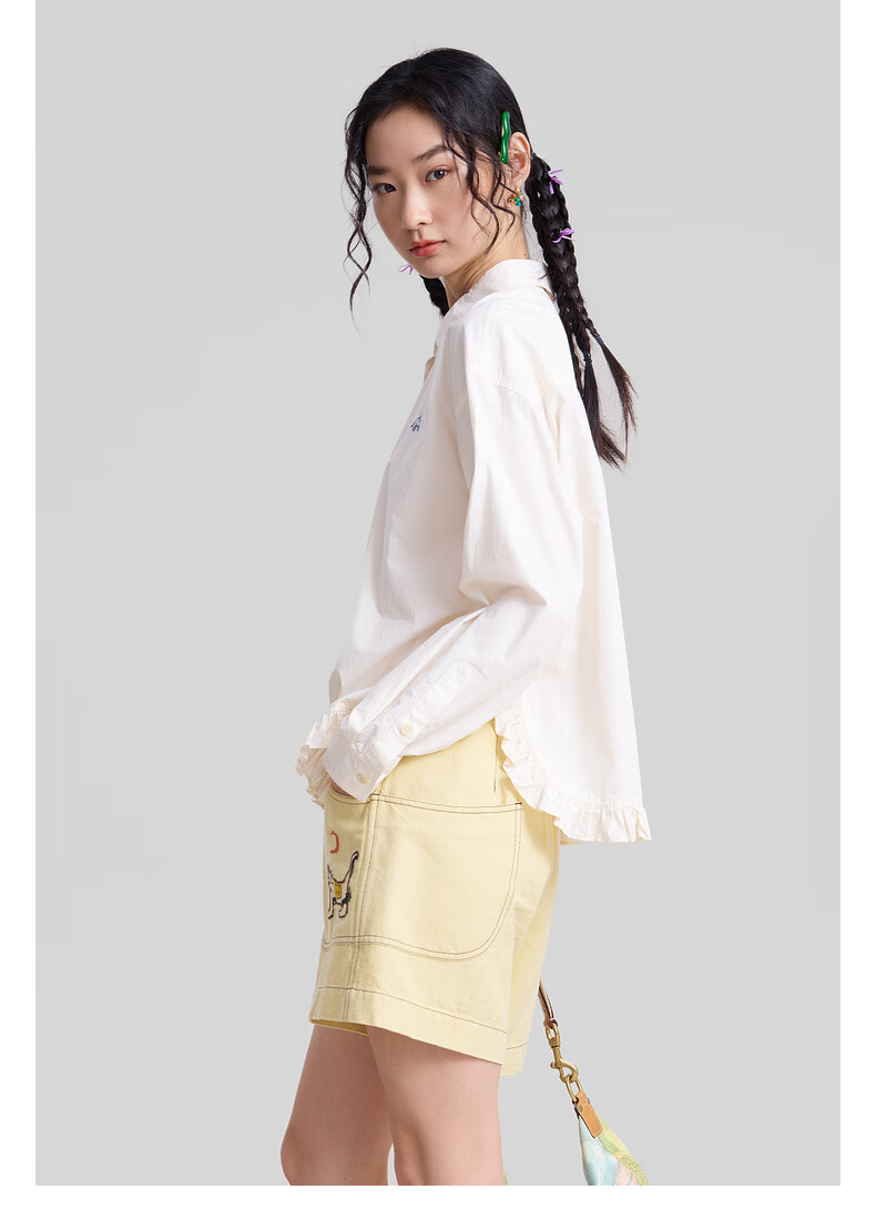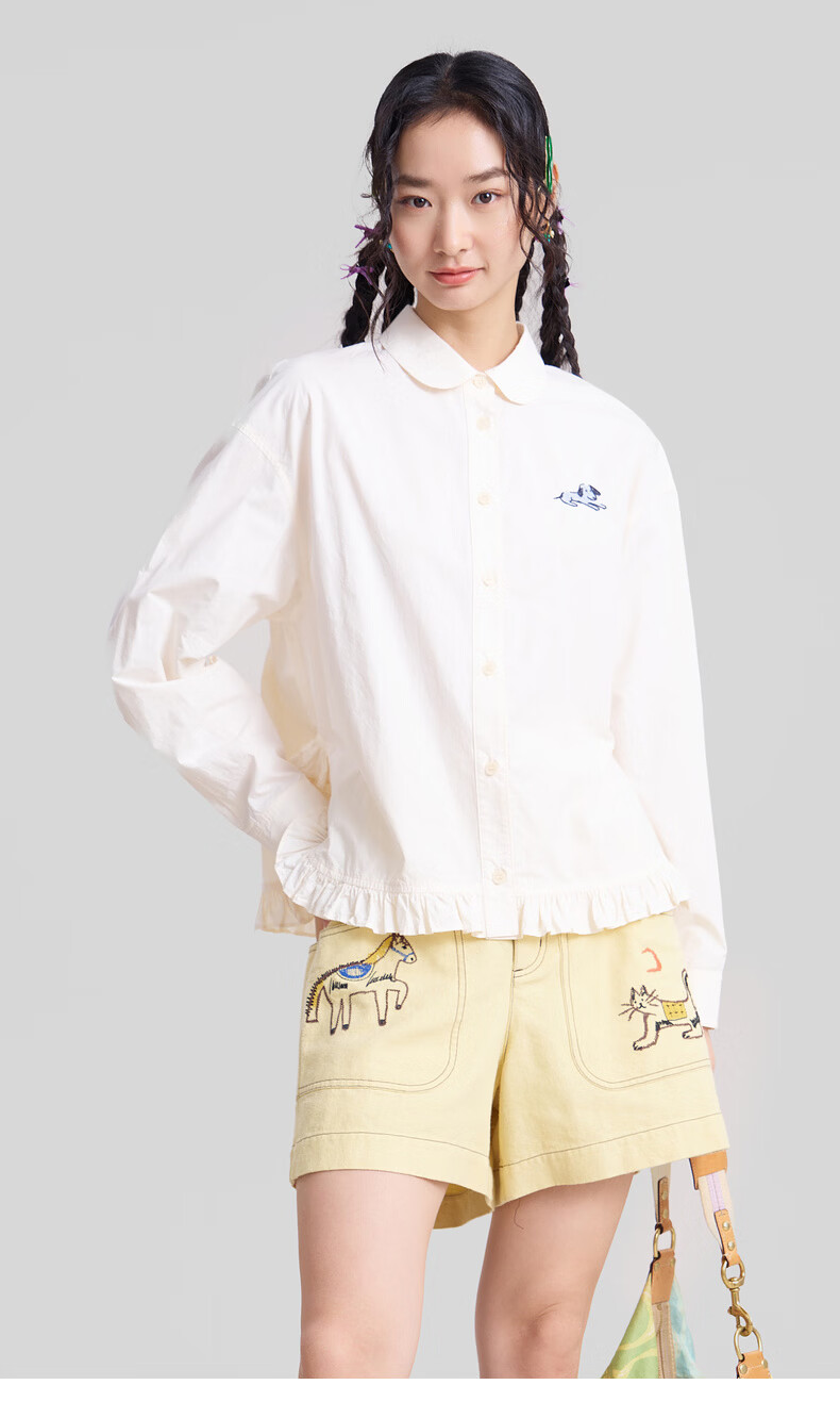 MOVEUP 2026 Spring New Style.FUN Series Lace Small Embroidery Design Commuting Short Shirt Women's Off-White M