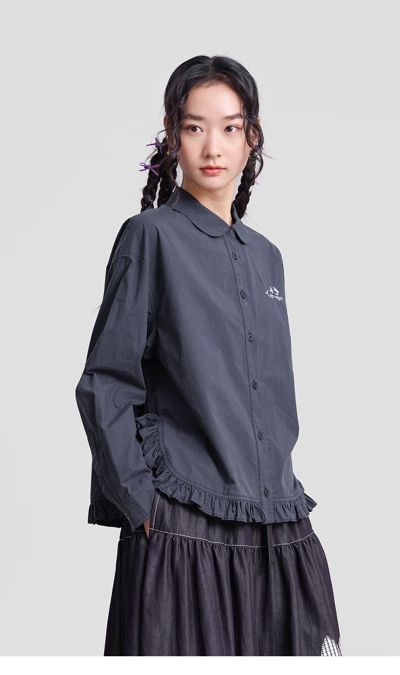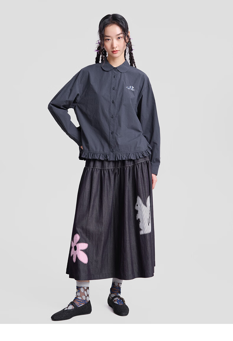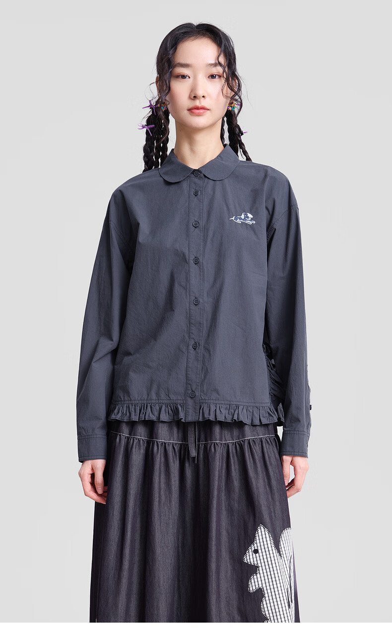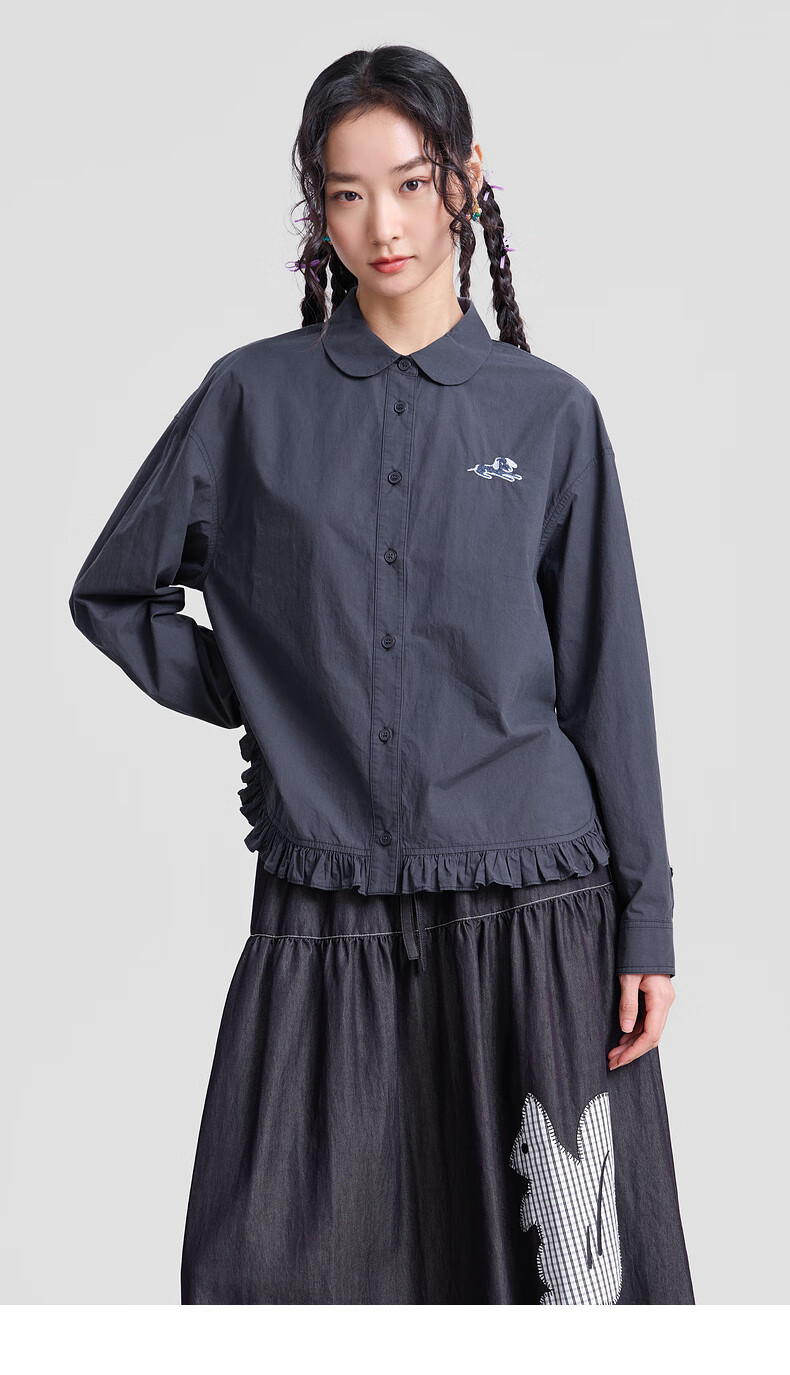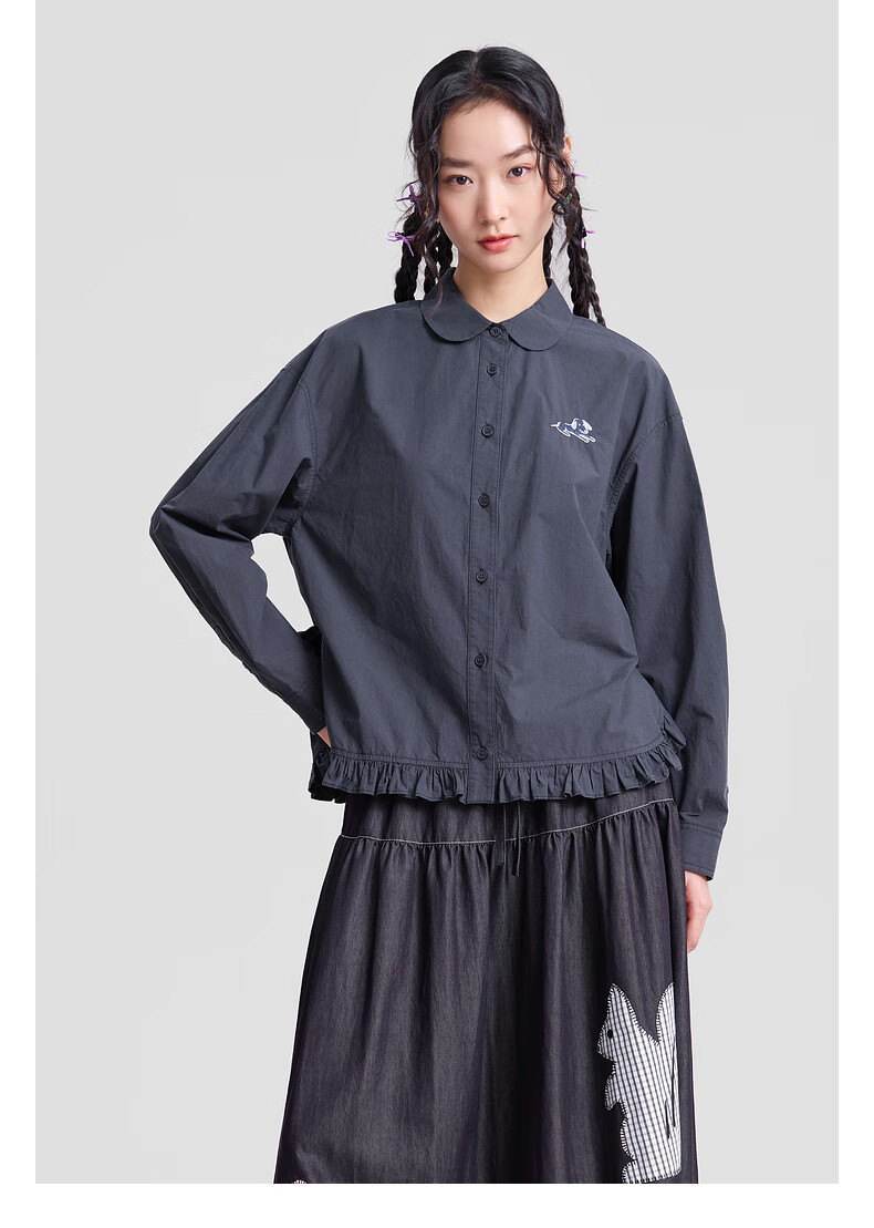 MOVEUP 2026 Spring New Style.FUN Series Lace Small Embroidery Design Commuting Short Shirt Women's Off-White M