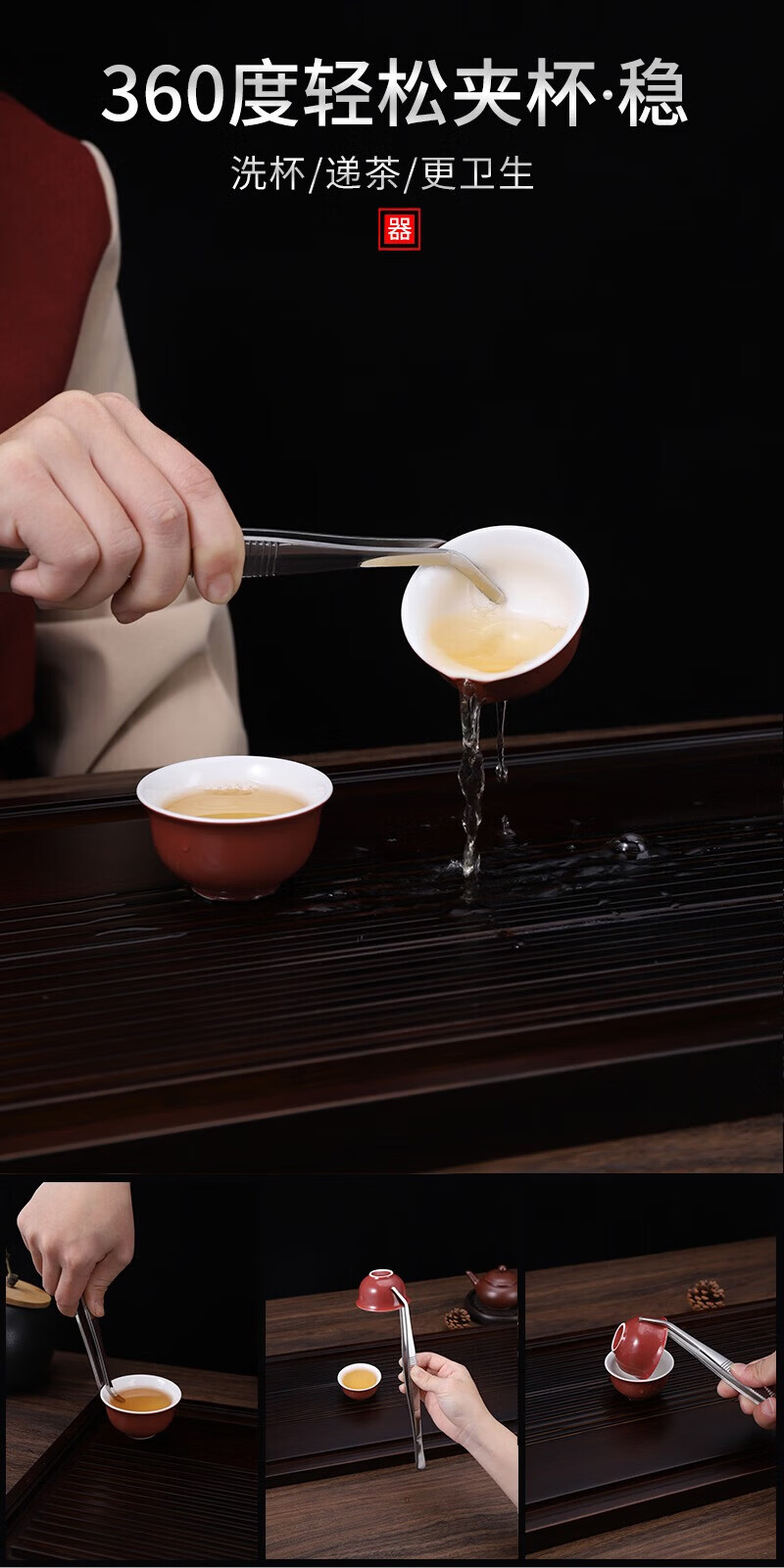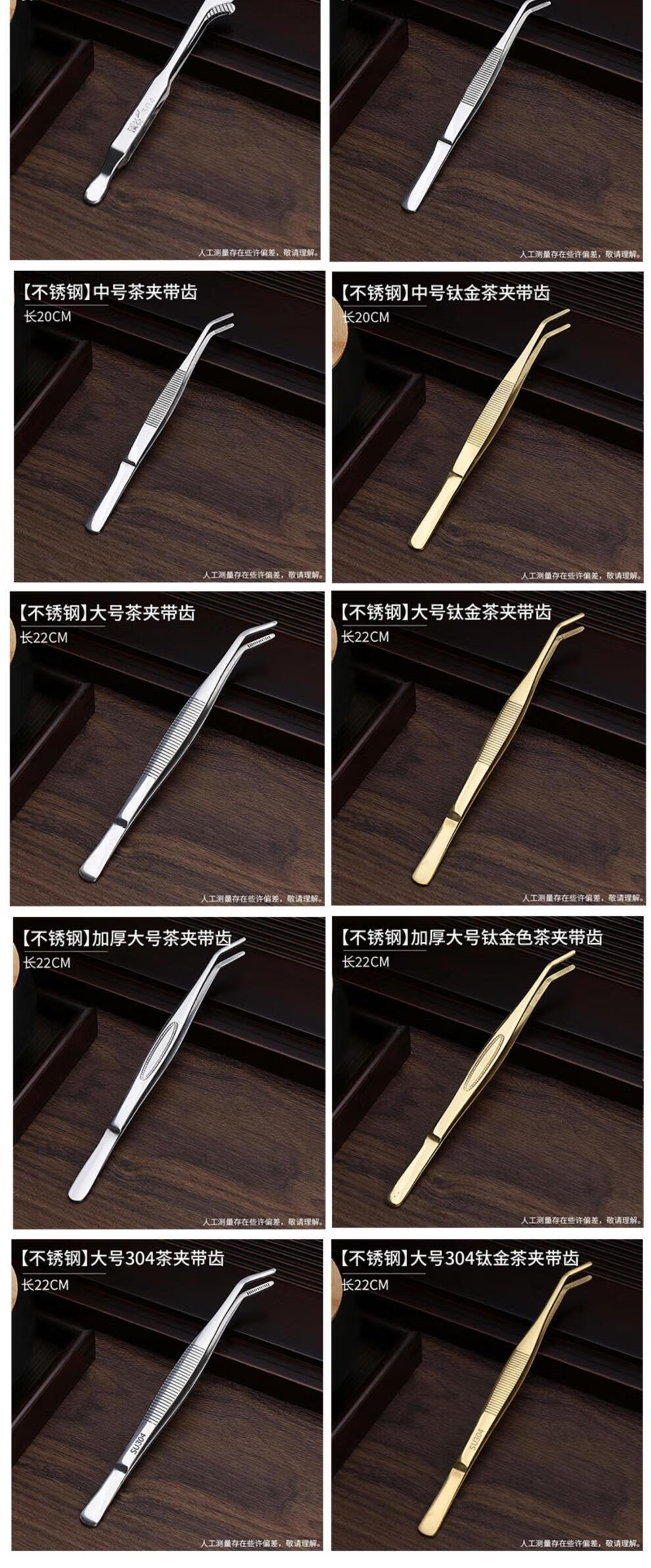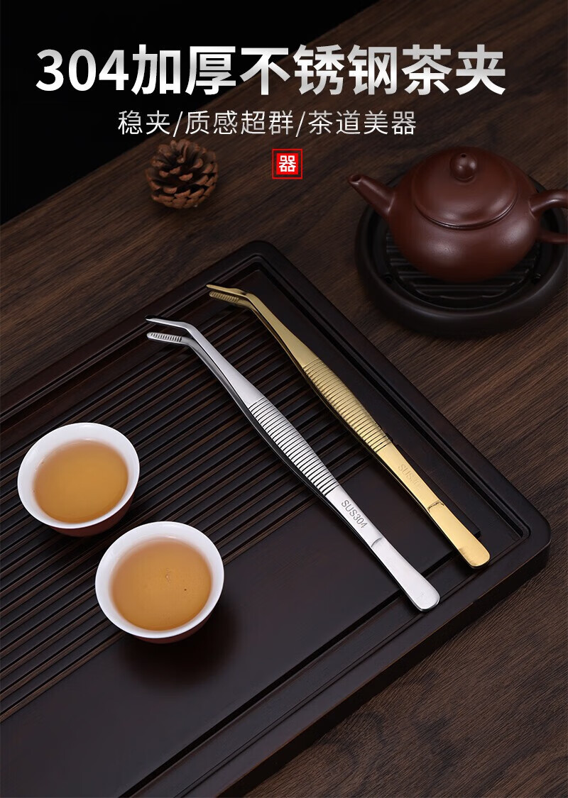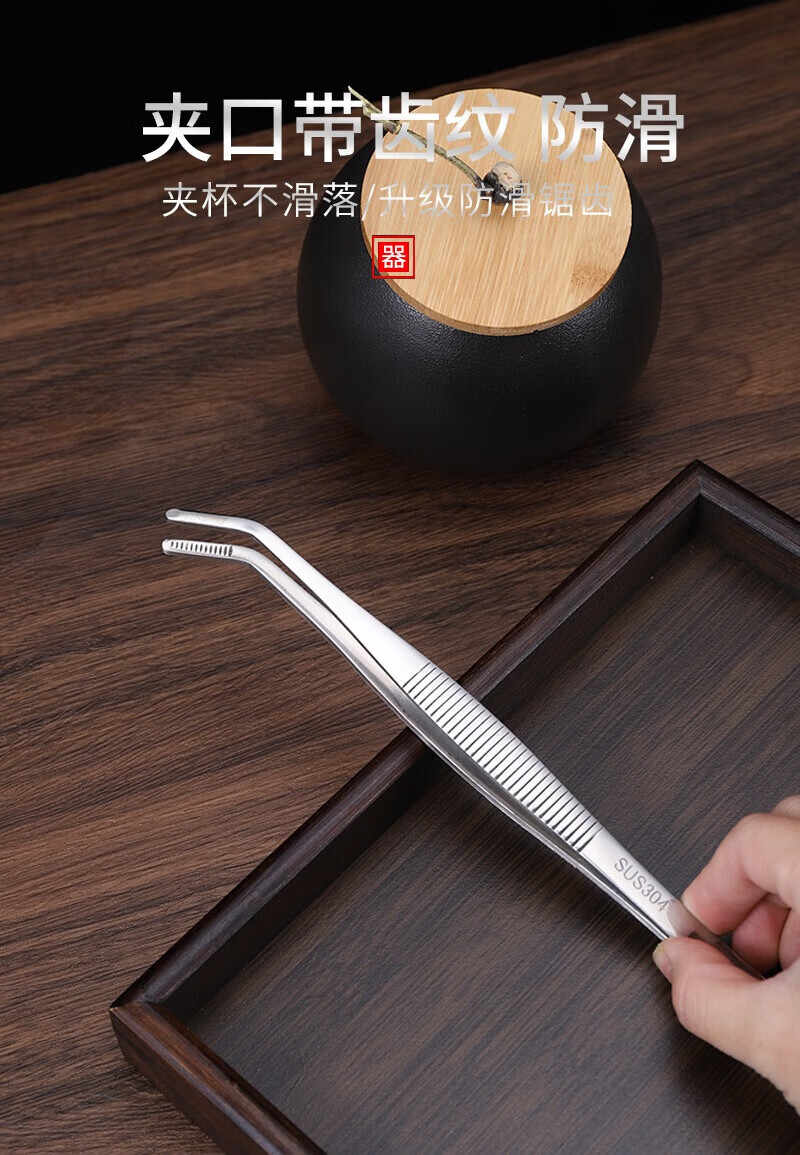 He Jiagong tea clip, tea tweezers, copper tea clip, non-slip cup clip, Kung Fu tea set accessories, stainless steel tea cup clip, tea tweezers, stainless steel 304 large curved tea clip with teeth