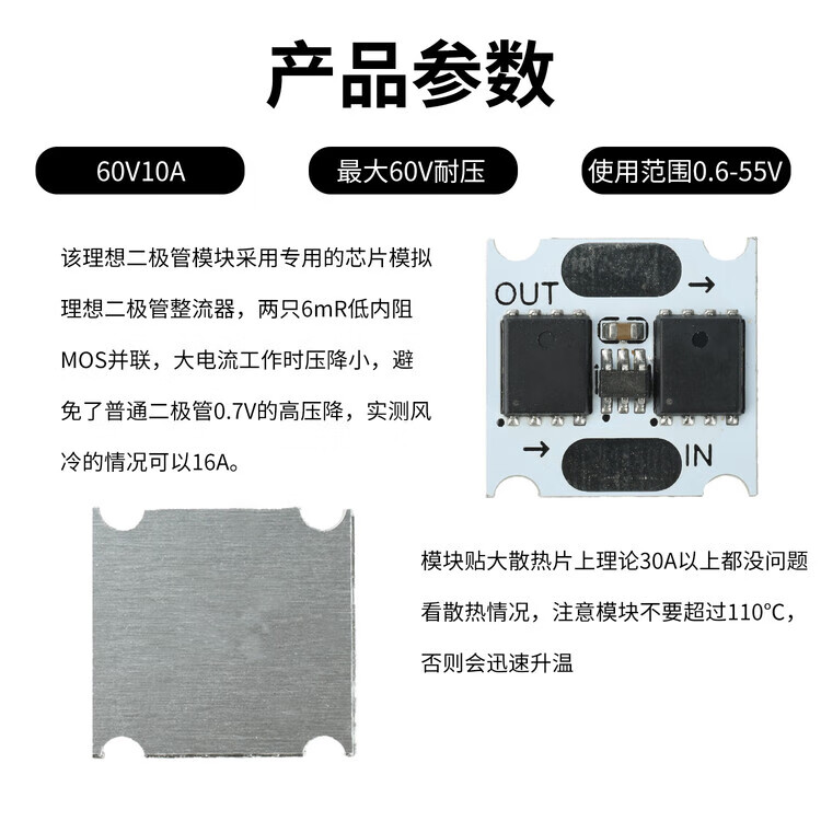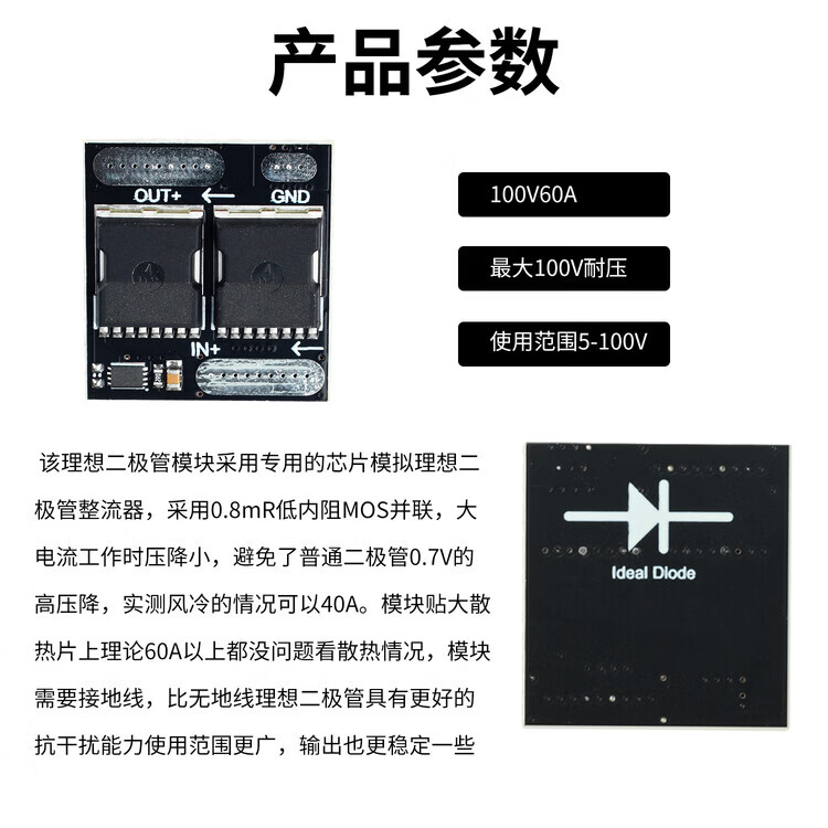 100V/30A 60V/10A ideal diode module anti-backflow and anti-reflow ultra-low power mini rectifier 100V 30A