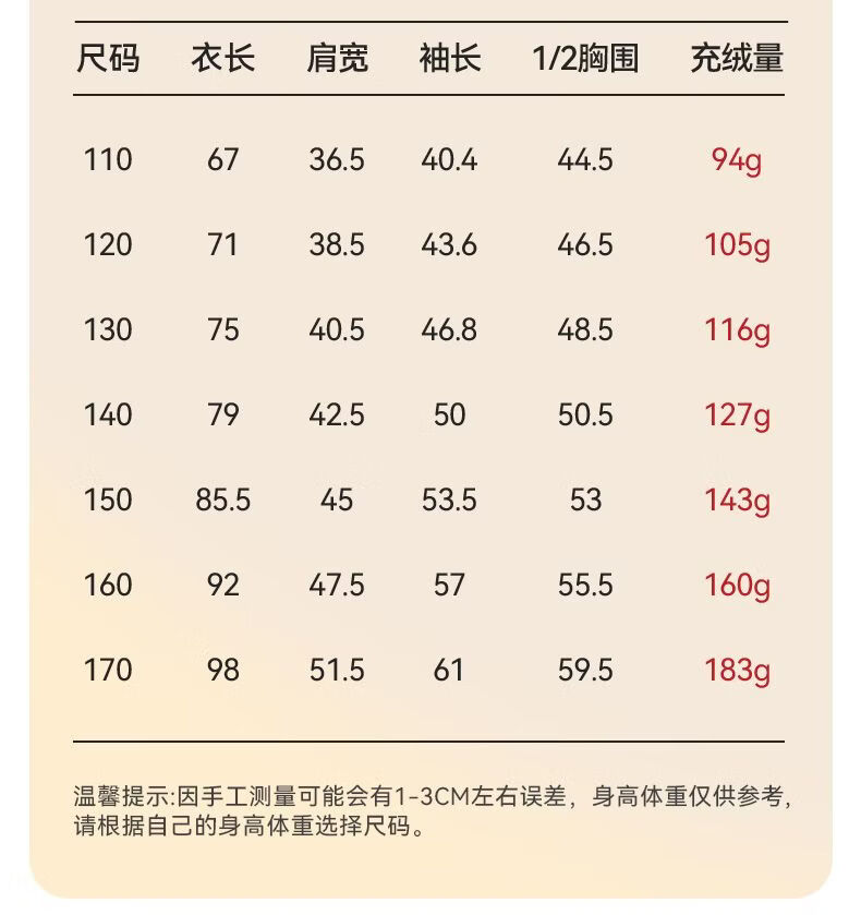 China (cm) 160-165/84-86 165-170 / 88-90 167-172 / 92-96 168-173 / 98-102 170-176 / 106-110