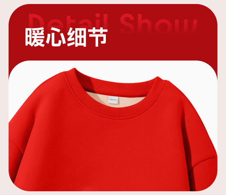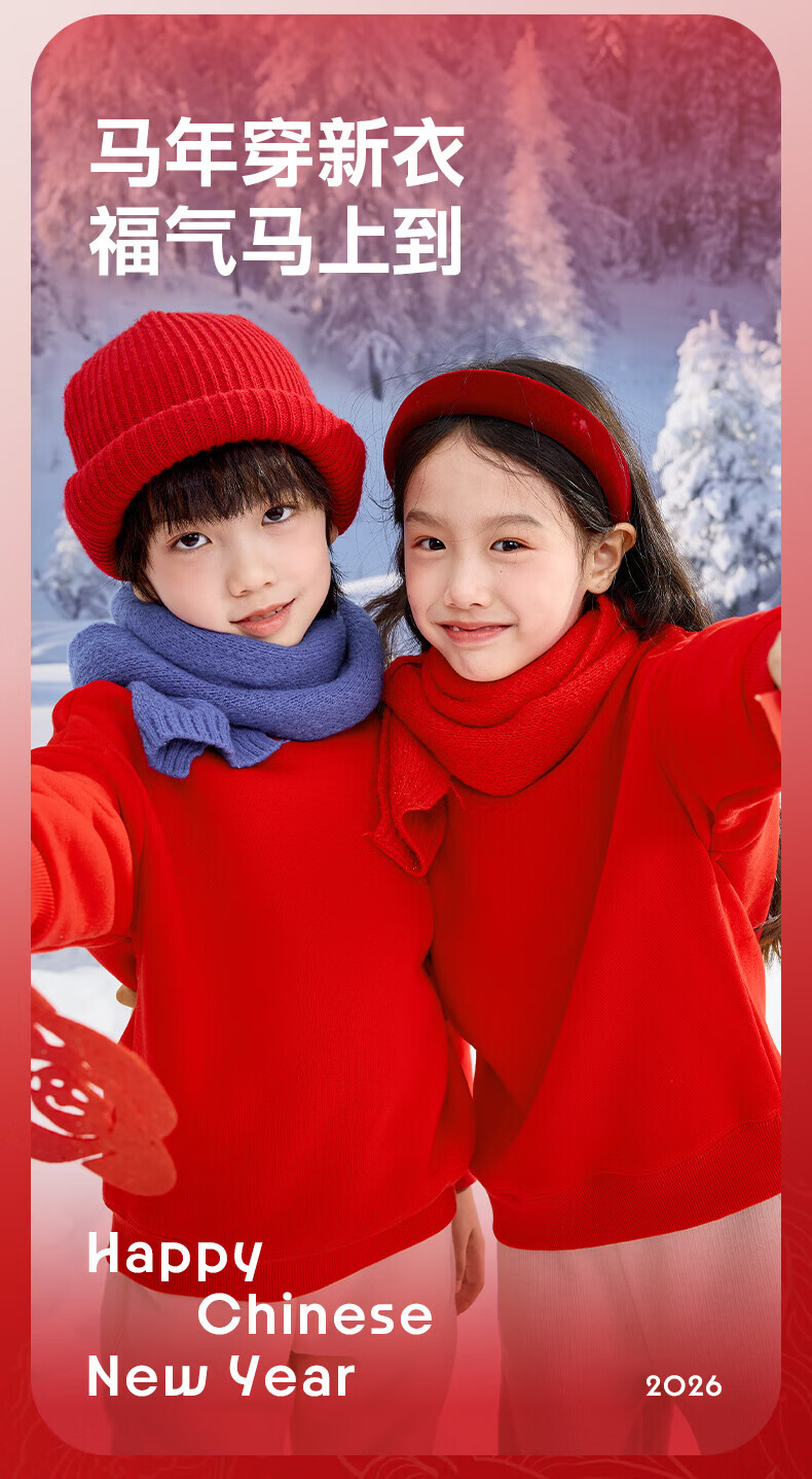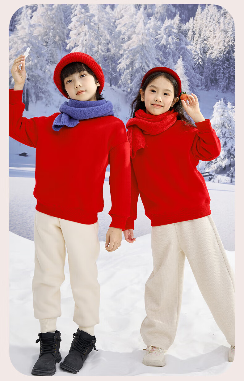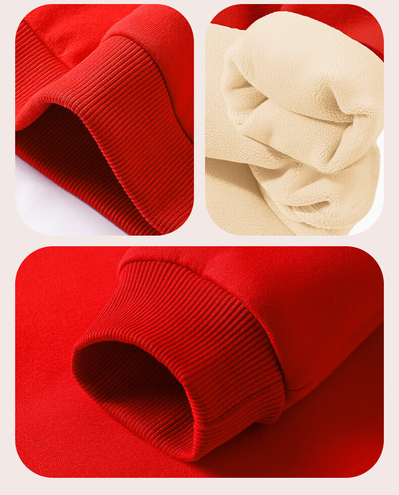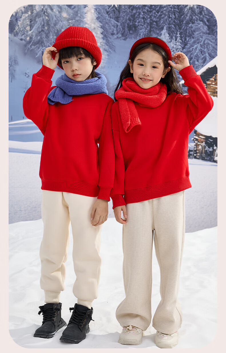 Jeanswest Children's Clothes Children's Sweaters Velvet 2026 Autumn and Winter New Boys' Red Tops Middle-aged and Older Children's Year of the Horse Animal Year Clothes Velvet Sweatshirt + Velvet Scimitar Pants 2-piece Set Red/J Good Things Happen-Black/J Solid Color 110