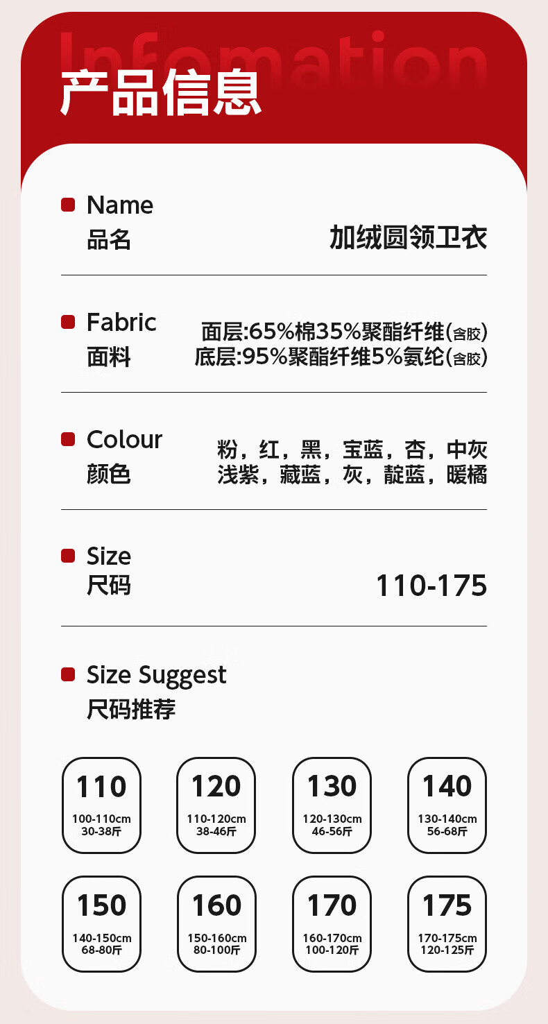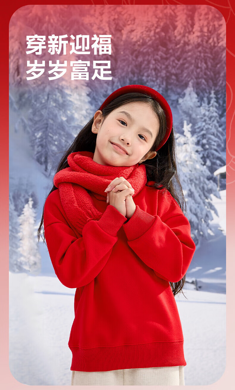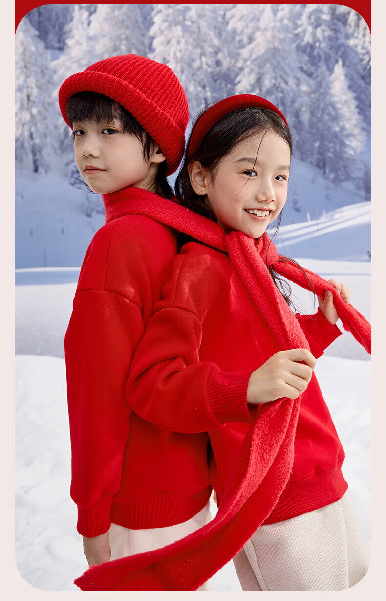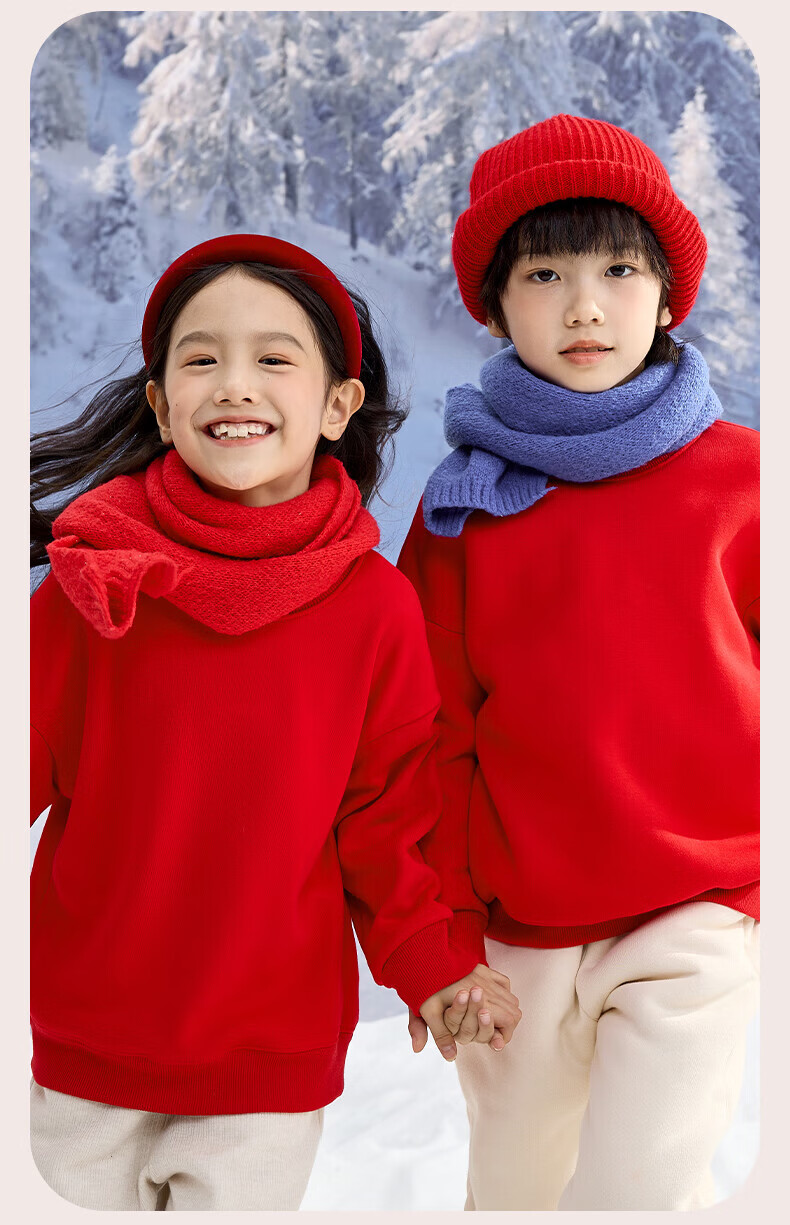Jeanswest Children's Clothes Children's Sweaters Velvet 2026 Autumn and Winter New Boys' Red Tops Middle-aged and Older Children's Year of the Horse Animal Year Clothes Velvet Sweatshirt + Velvet Scimitar Pants 2-piece Set Red/J Good Things Happen-Black/J Solid Color 110