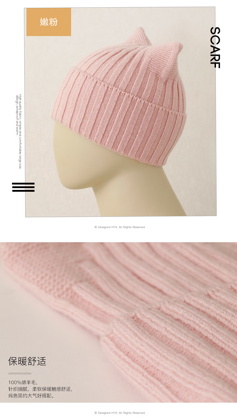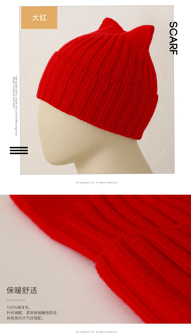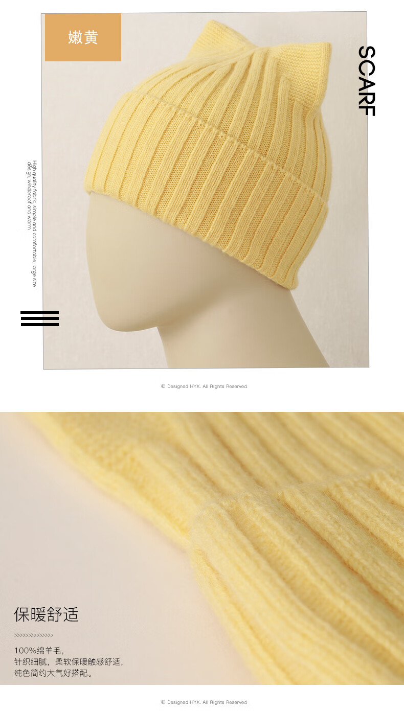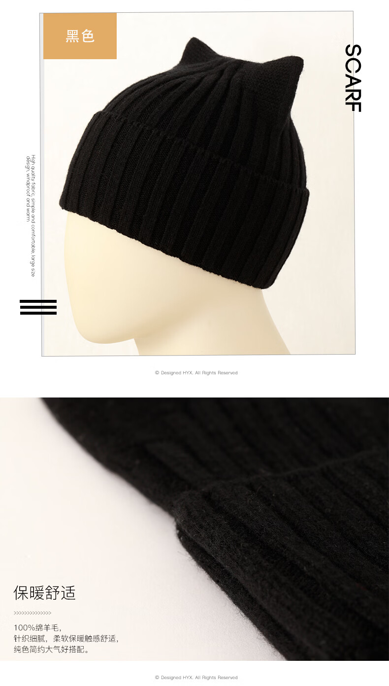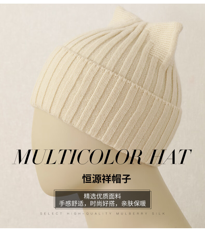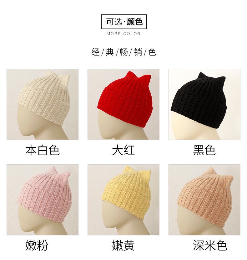 Hengyuanxiang Sheep Wool Hat Women's Autumn and Winter Niche Warm Knitted Hat Beanie Hat Cute Cat Ears This White One Size