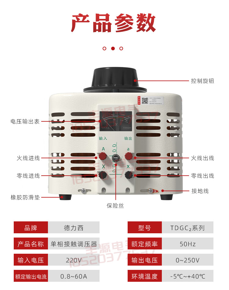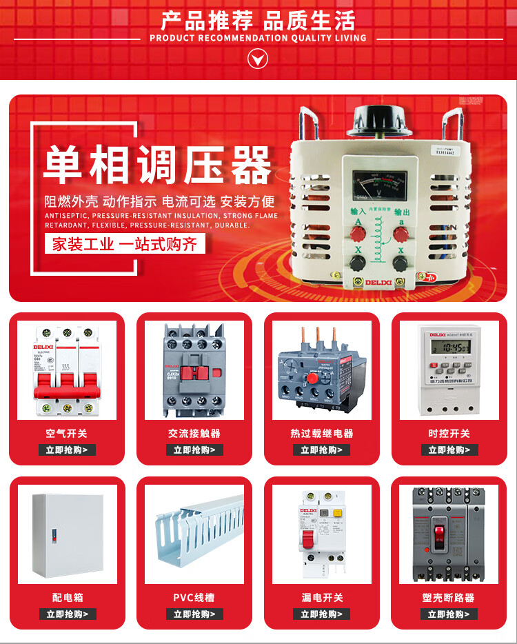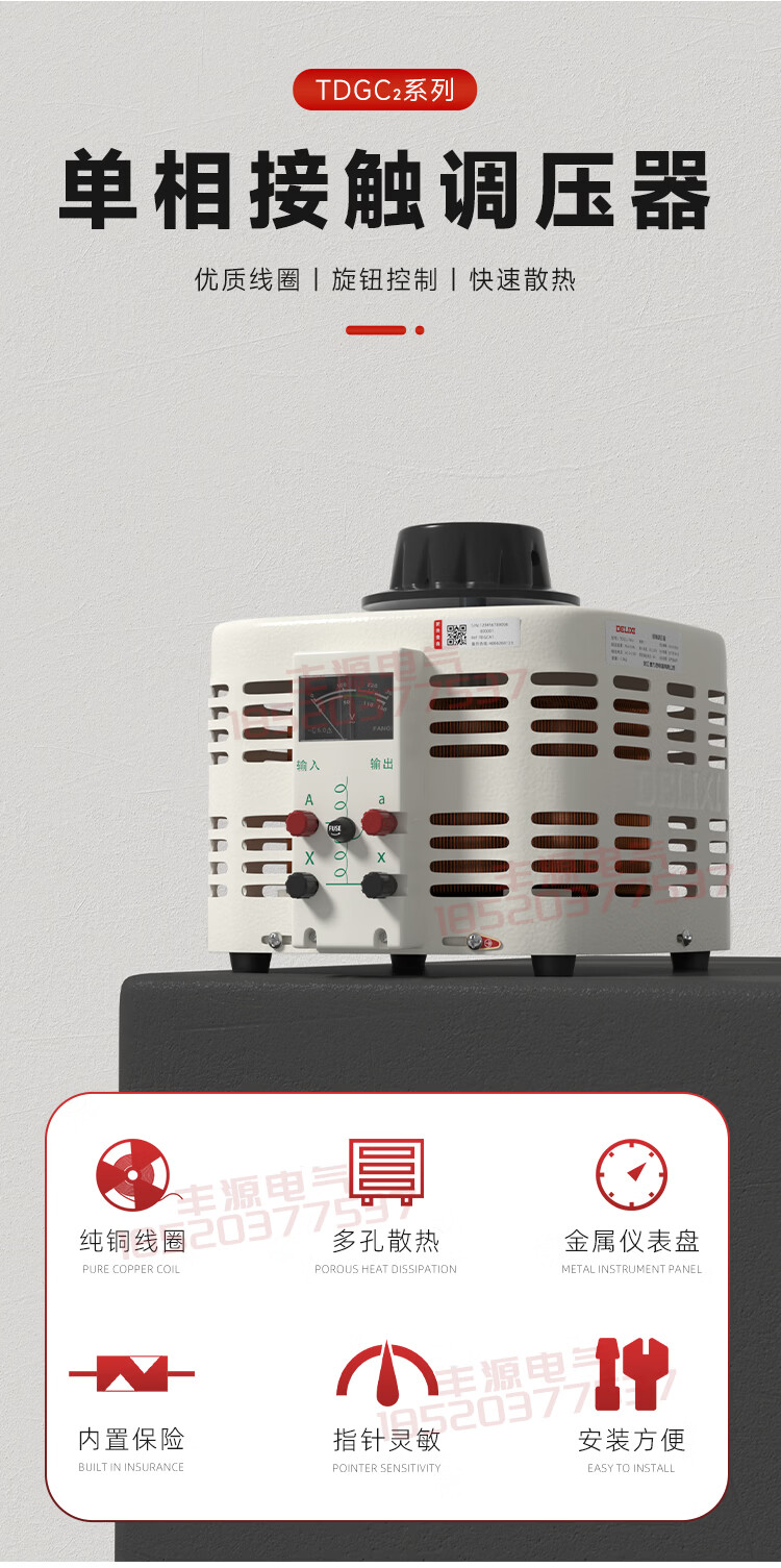 Delixi voltage regulator-0.5K household 3KW single-phase contact voltage regulator 1KV manual voltage regulator TDGC2-2K