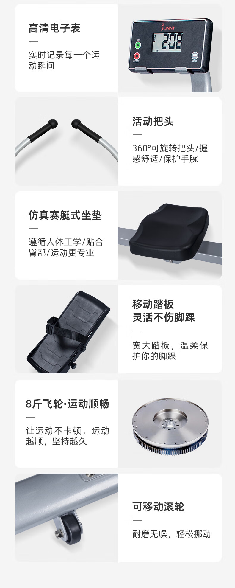 SUNNY official direct sales sculls rowing machine home fitness equipment indoor silent foldable exercise shoulder and neck performance upgraded version package installation / this option is exposed