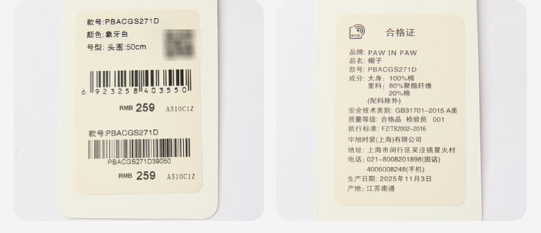 PawinPaw cartoon bear children's clothing 26 spring and summer new baby boy bear pattern baseball cap adjustable Ivory ivory/39 050