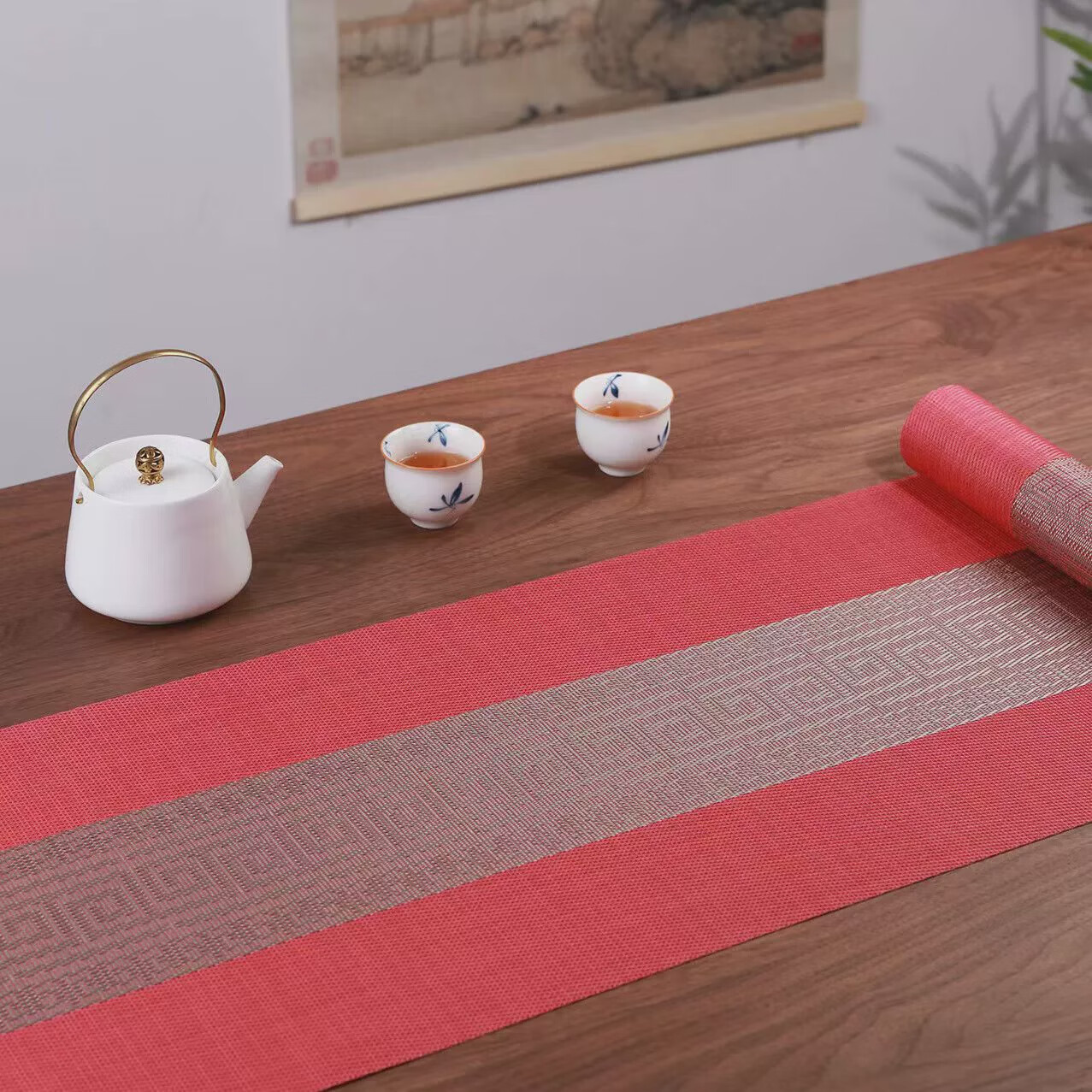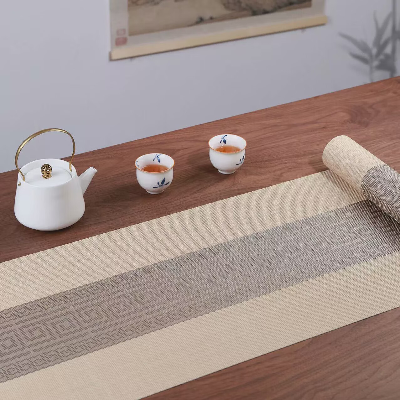 Yusenyi PVC new Chinese Zen tea mat tea table mat tea table rectangular long strip TV cabinet tea 30 cm wide Chinese style light green one meter long