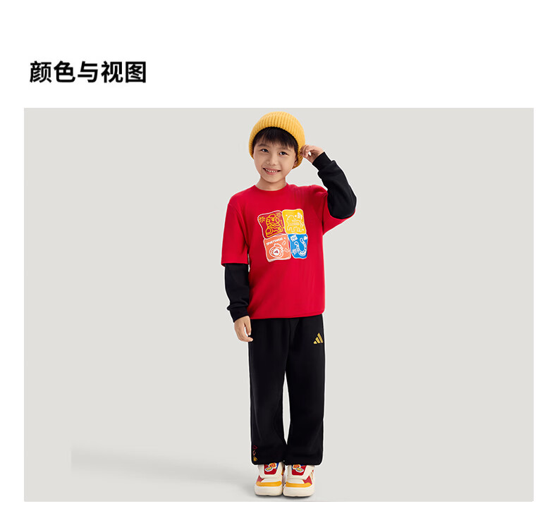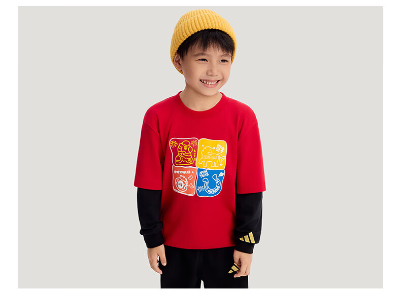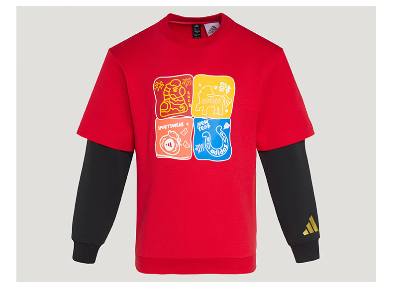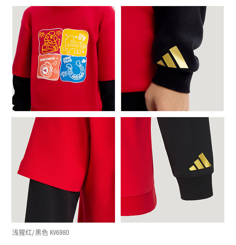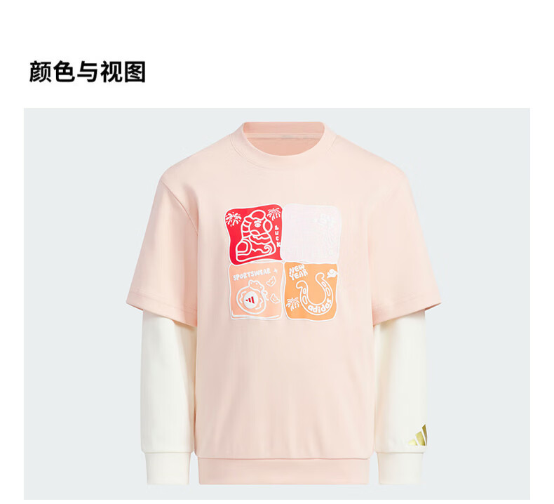 Adidas children's clothing girls round neck sweatshirt 26 New Year's model medium and large children's cartoon print fake two-piece sweatshirt KV6981 KV6981 light pink/white 164