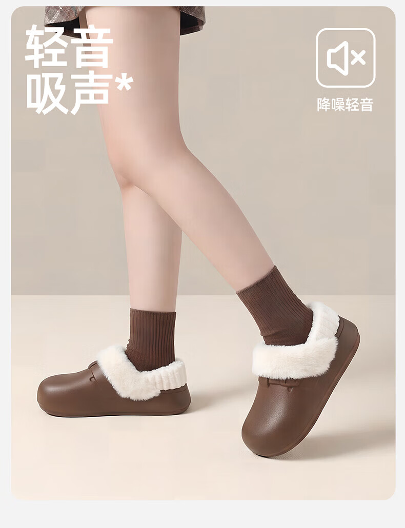 QYCKABY waterproof cotton slippers for women winter 2025 new style bag heel indoor home non-slip home warm plush plus velvet cotton shoes for men dark coffee 36-37 regular size