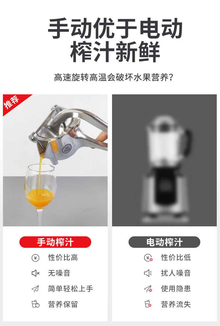 Fantasy hand juicer, multifunctional thickened manual juicer, sugarcane, pomegranate and orange juice squeezer, household fruit squeezer, bright and thickened upgraded model + free 100 juice bags + clip