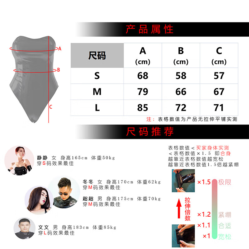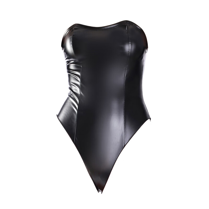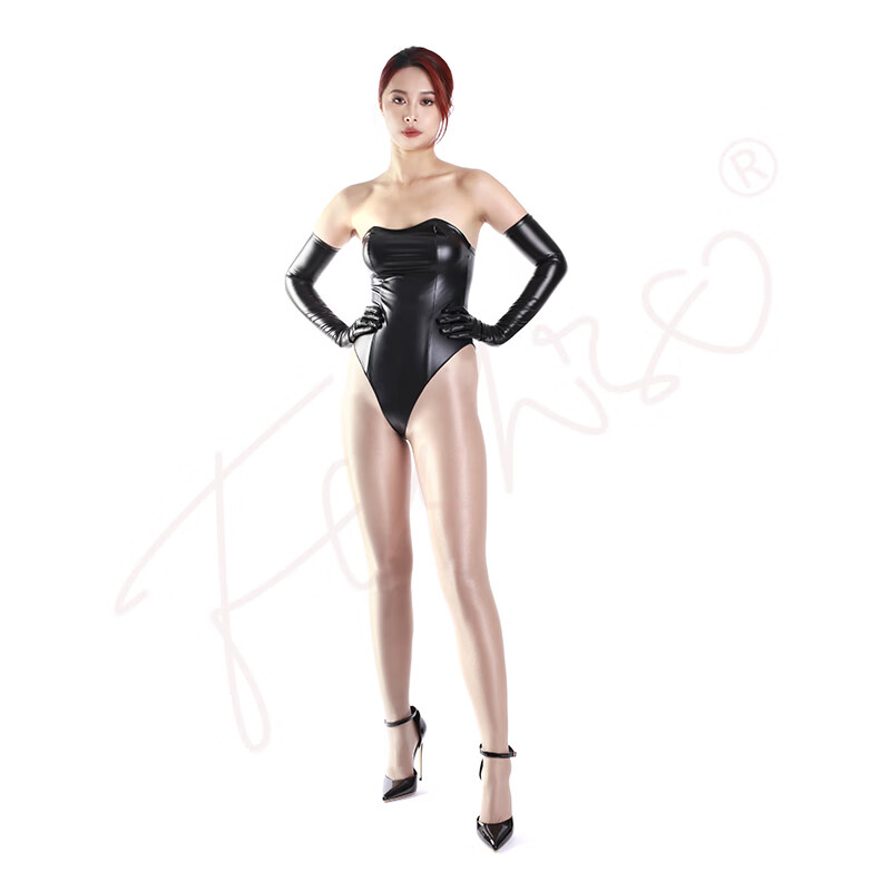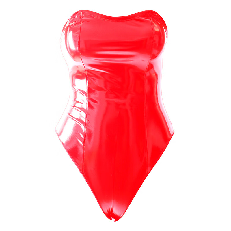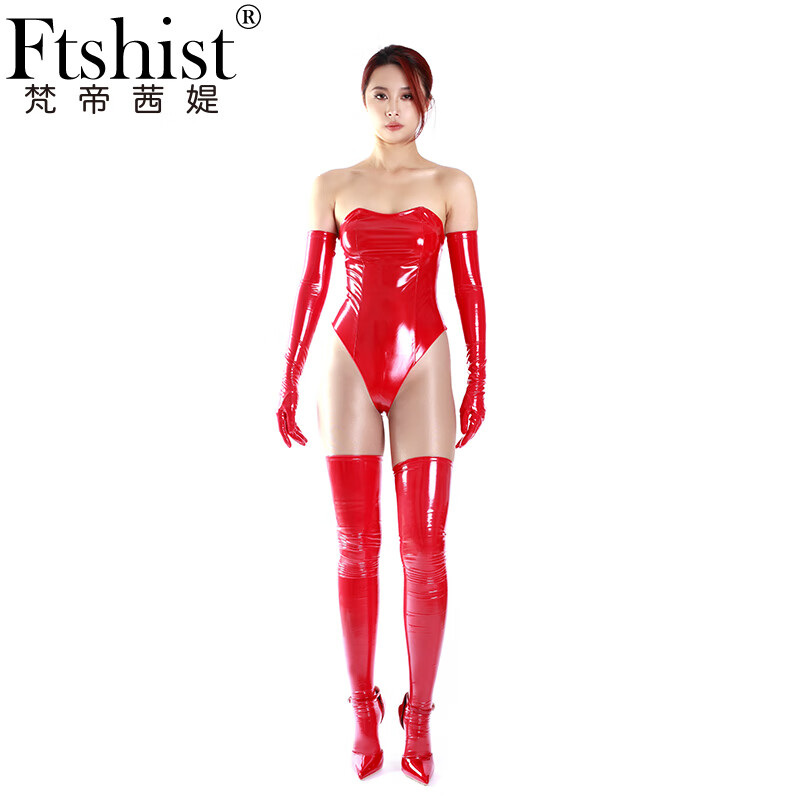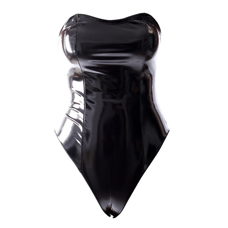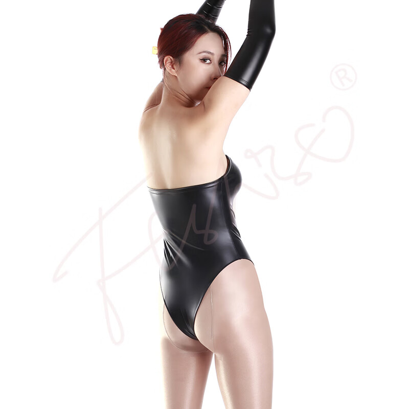 Ftshist sexy bunny girl cosplay queen high-gloss patent leather latex large size charming off-shoulder bodysuit tube top patent leather-black S