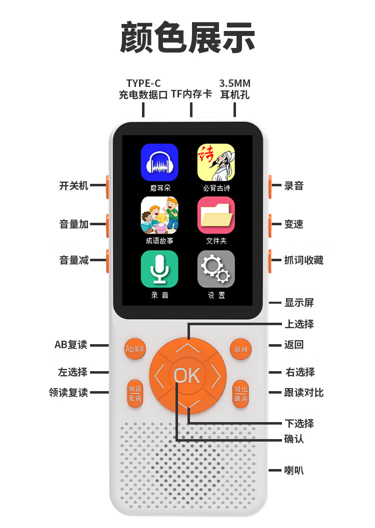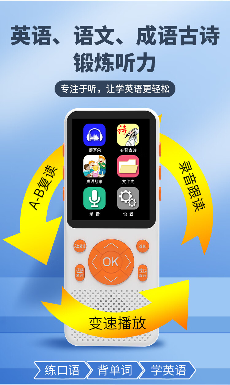 Lan Cai He Youdao Listening Treasure English Repeater Listening Walkman Synchronous Course Personal Teaching Edition Learning Machine Ear Sharpening Artifact 32G + Primary, Junior High and High School Texts + A Small amount of Extracurricular + 2025 New Version Downloaded