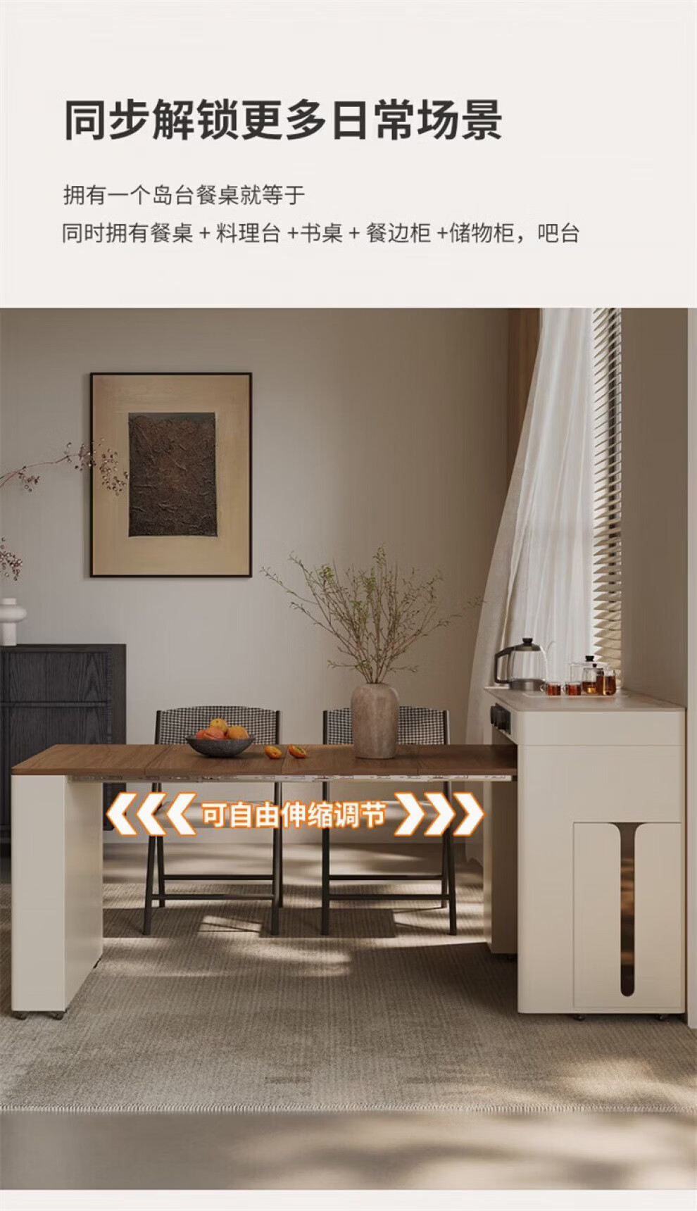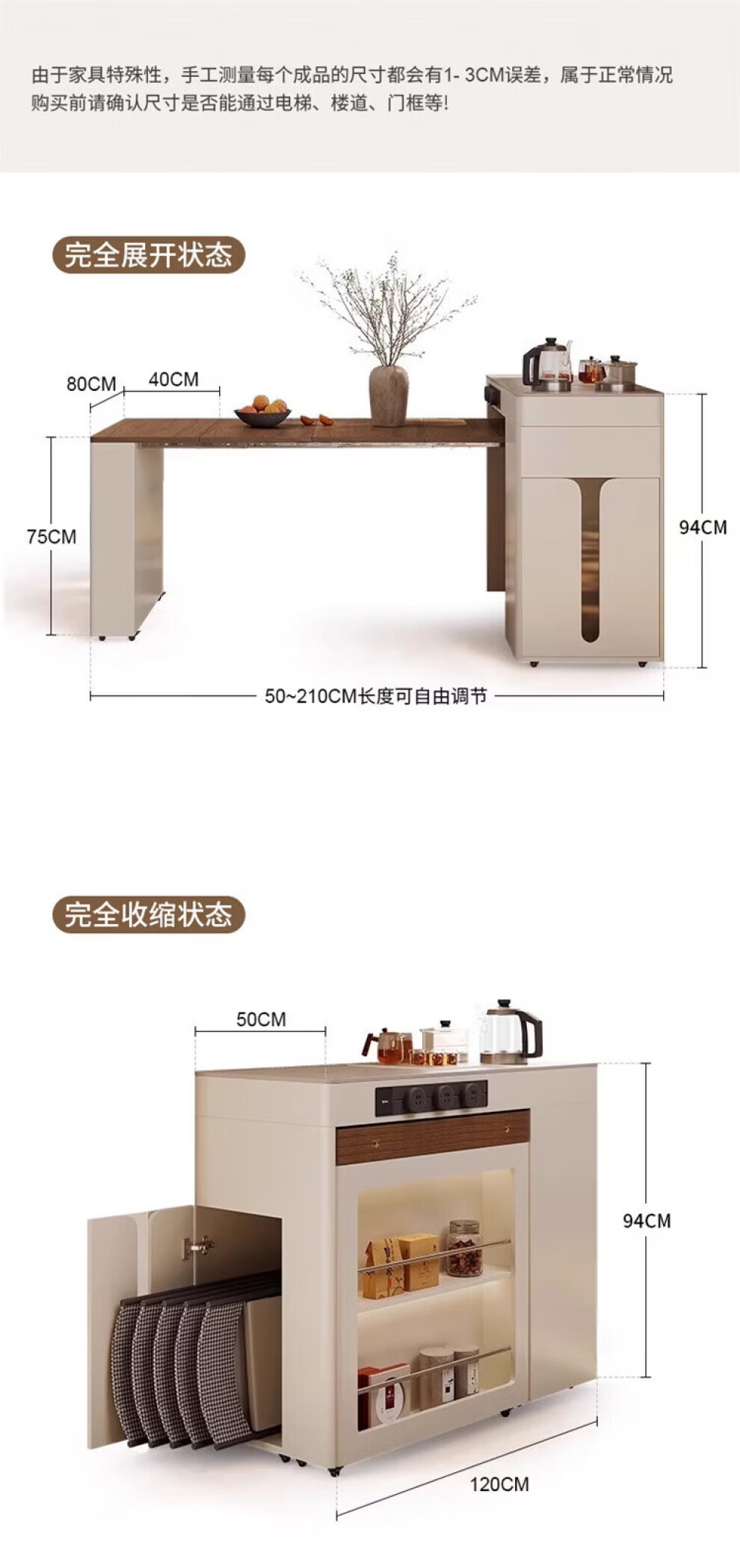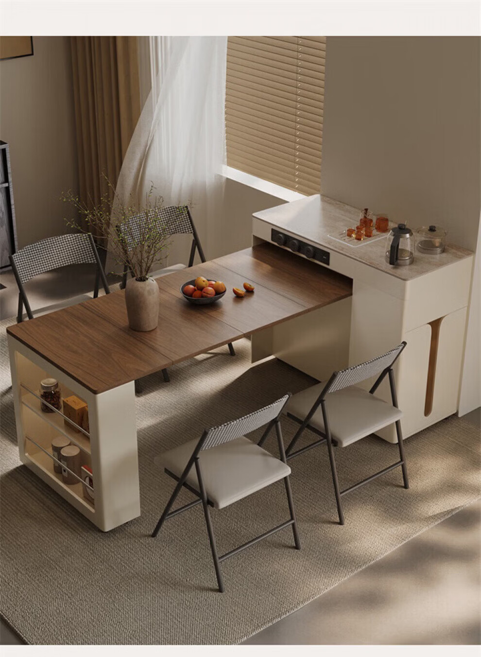 Gejia German quality travertine slate dining table removable telescopic folding sideboard island dining table for home use telescopic folding dining table + folding dining chairs*2 island tea stove 750m 2100x800xm