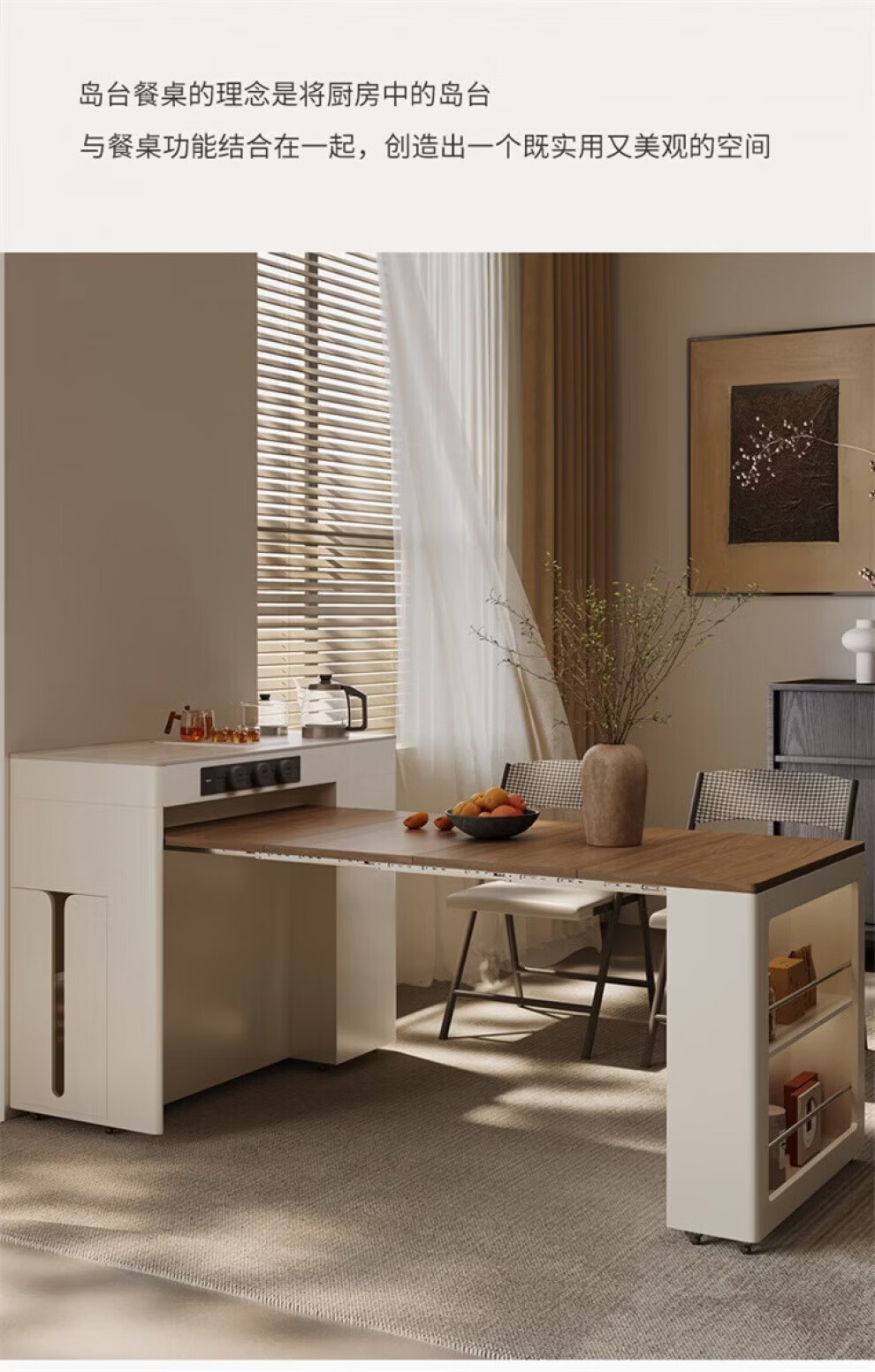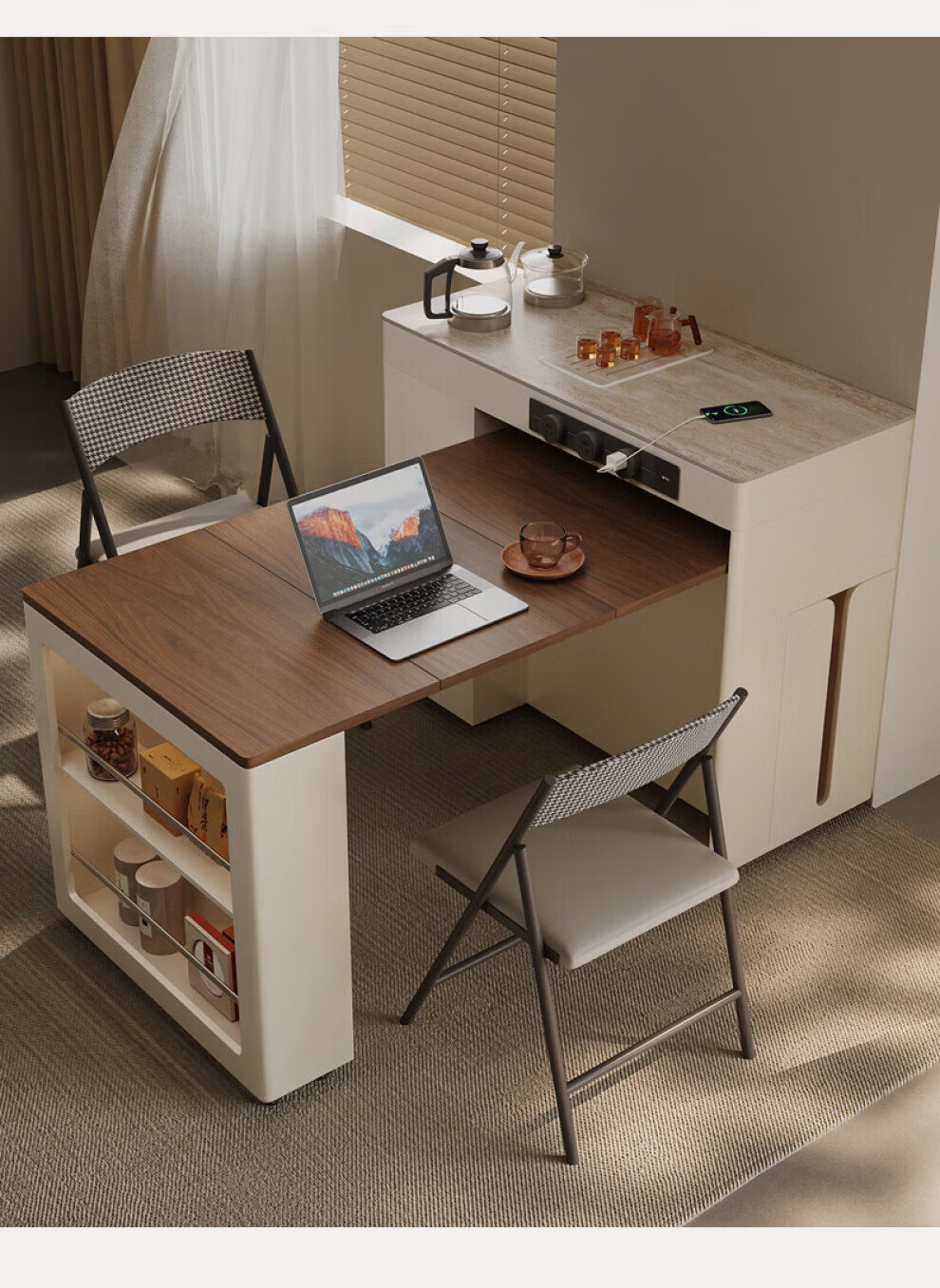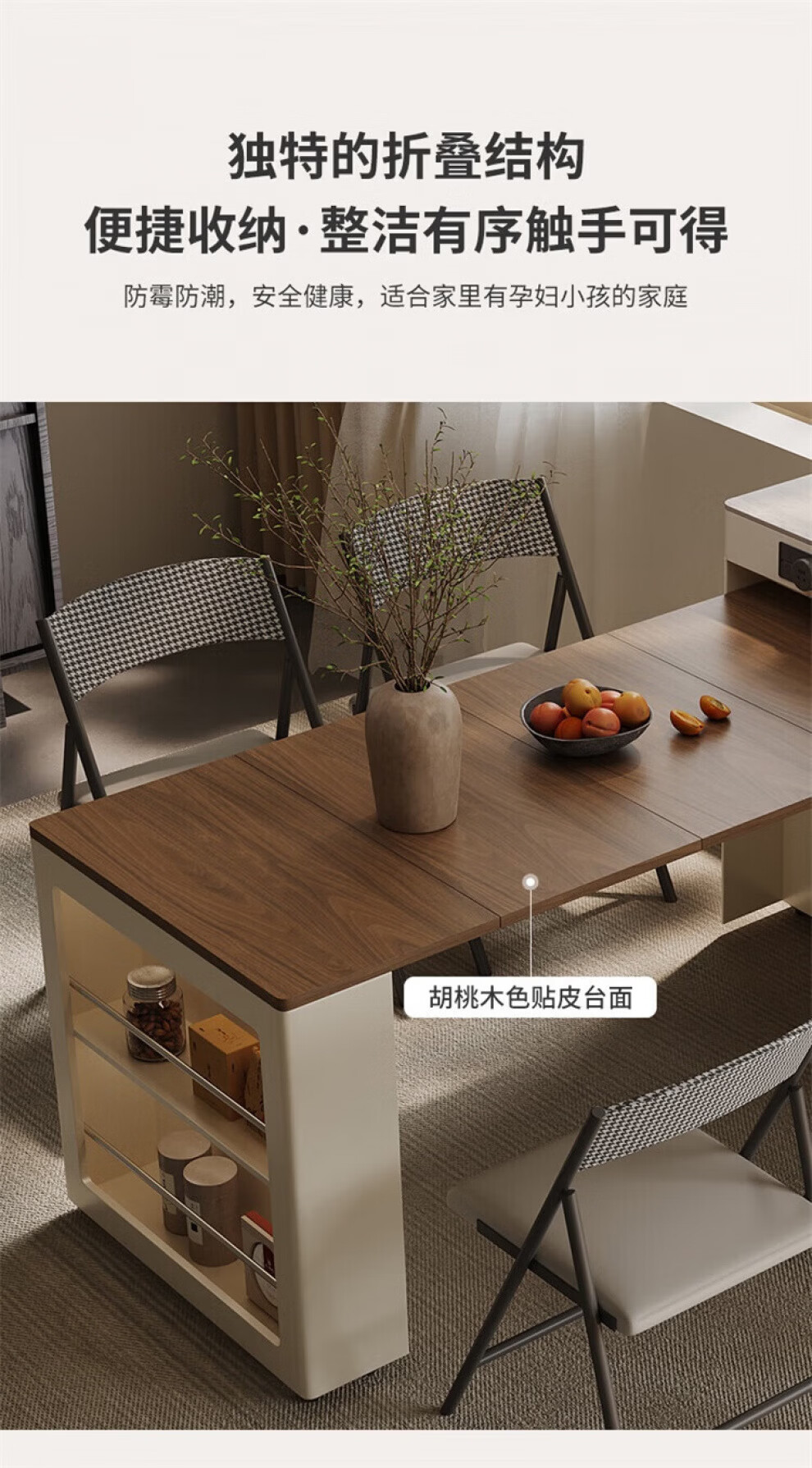 Gejia German quality travertine slate dining table removable telescopic folding sideboard island dining table for home use telescopic folding dining table + folding dining chairs*2 island tea stove 750m 2100x800xm
