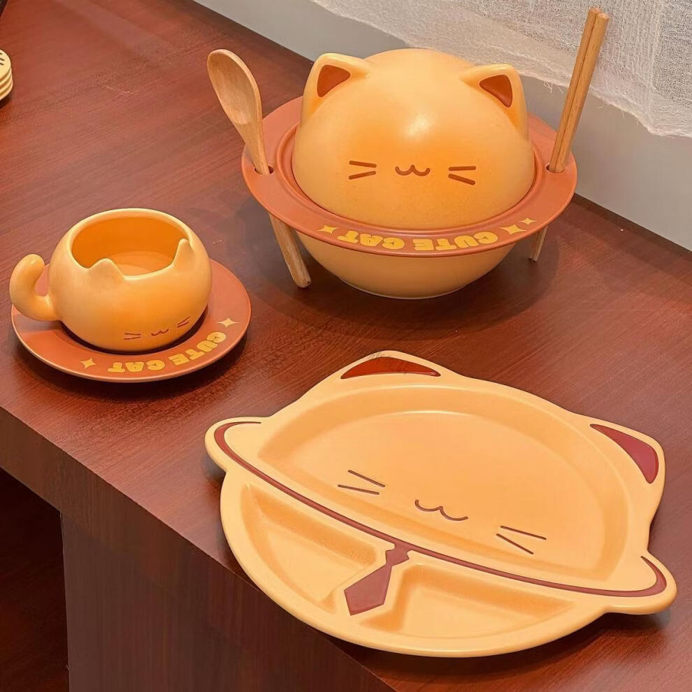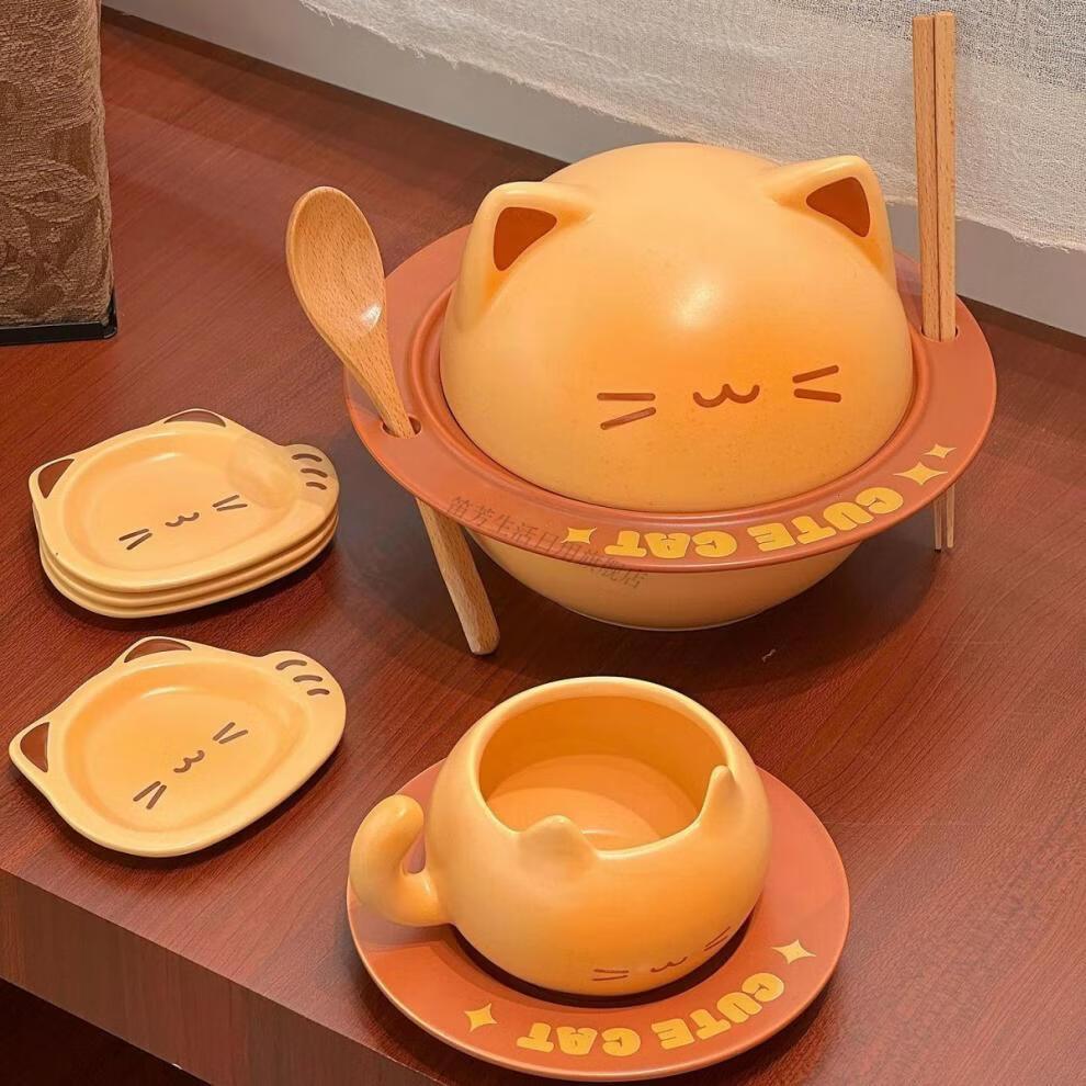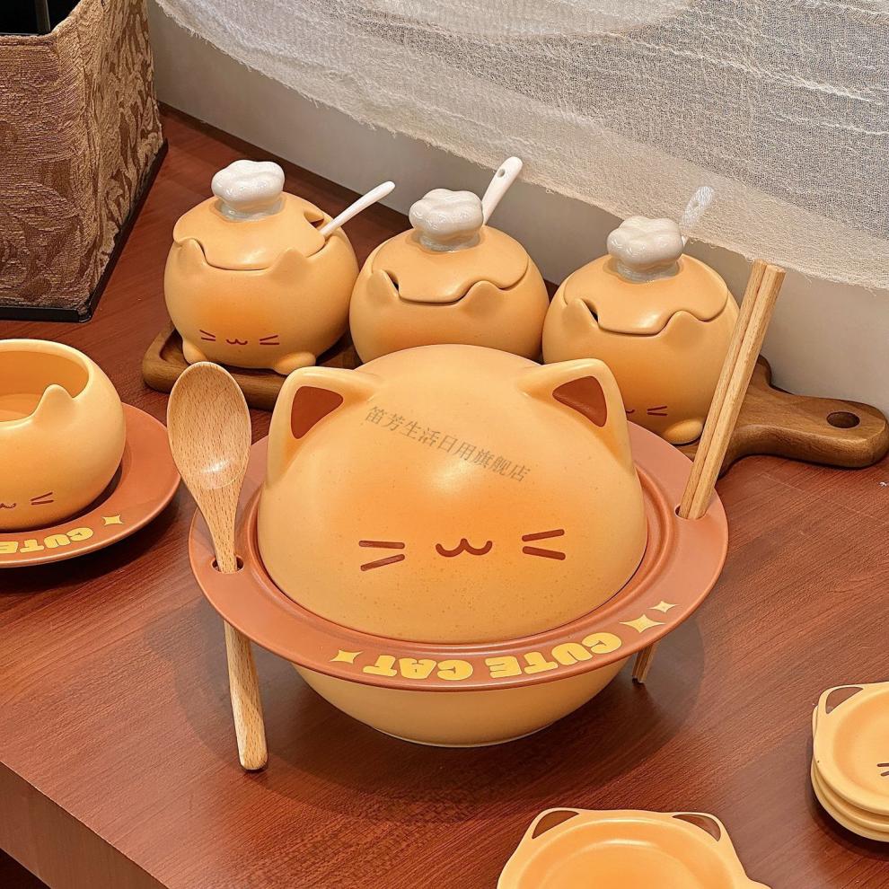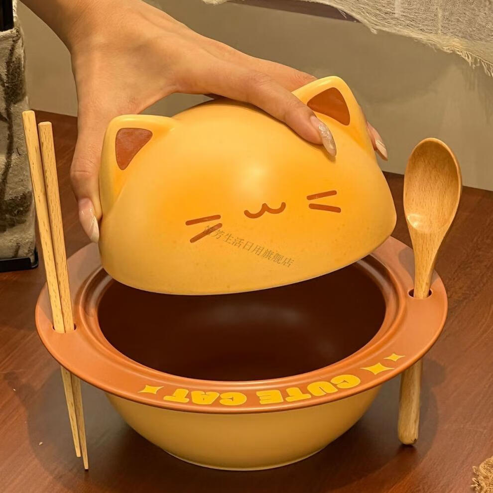 Defang Toast Kitten Instant Noodle Bowl Cute Tableware Large Capacity Covered Creative Home Beautiful Ceramic Bowl Set