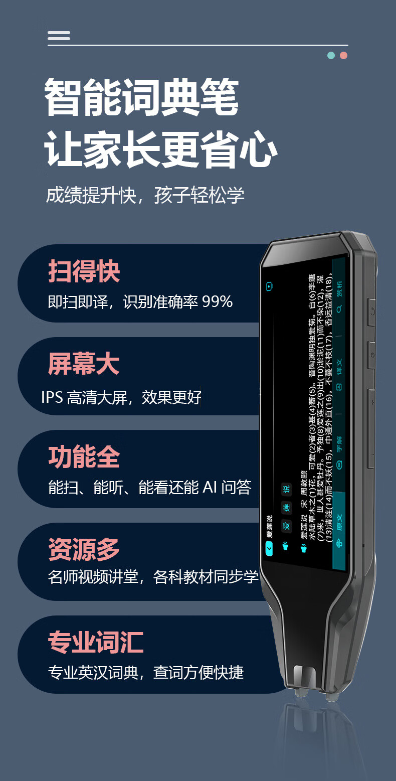 Lan Cai He Alpha Synchronous Multi-Function Intelligent Offline Scan Search Question AI Dictionary Pen for Primary, Middle and High School Students Translation Reading Pen Version 7.0 Offline Translation + Synchronized Textbook Black Original Anti-Counterfeiting Brand New Unopened Standard 16G+ Gift