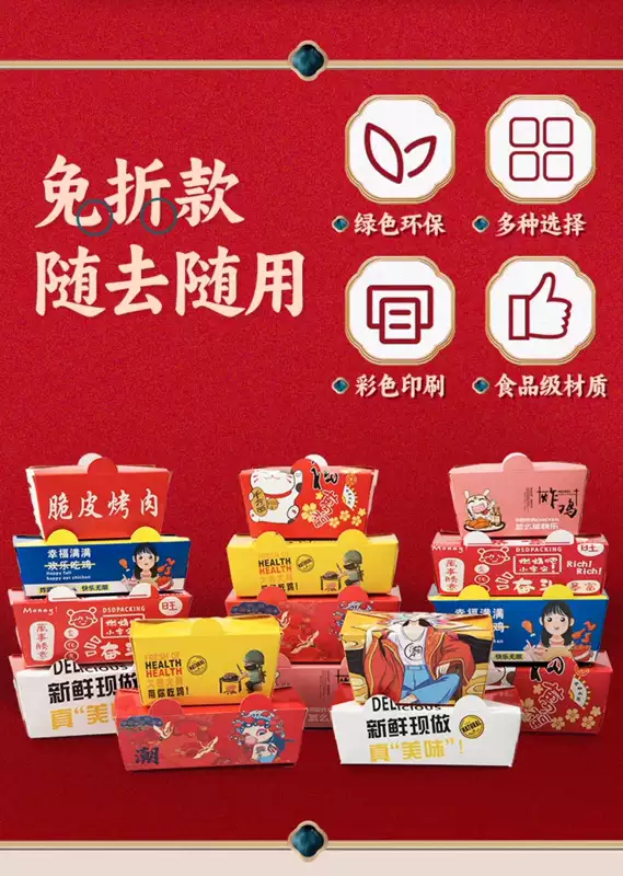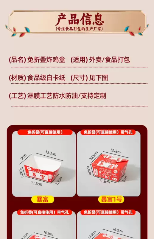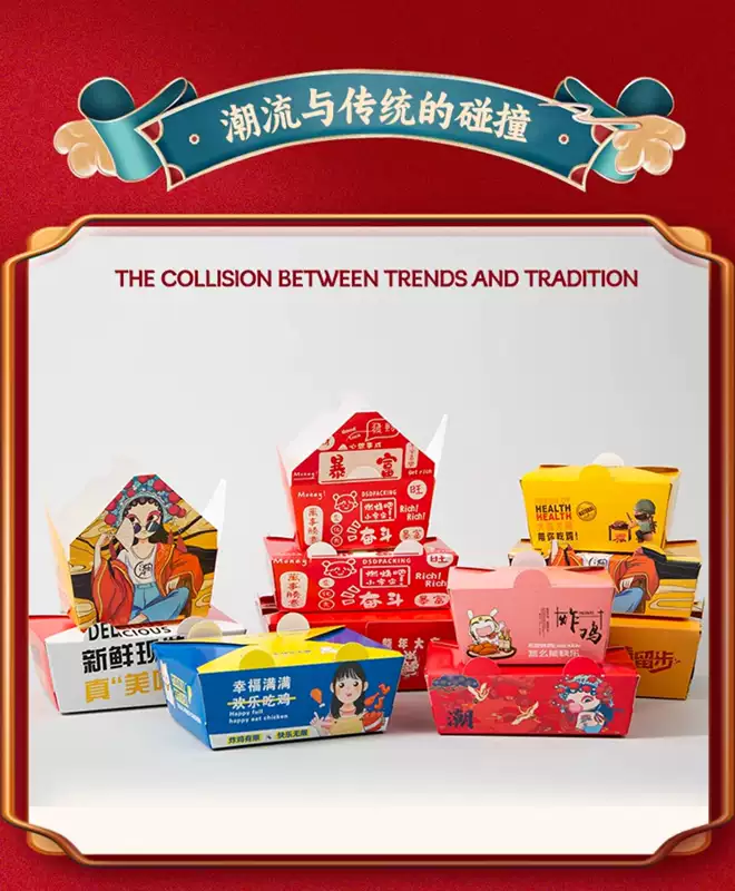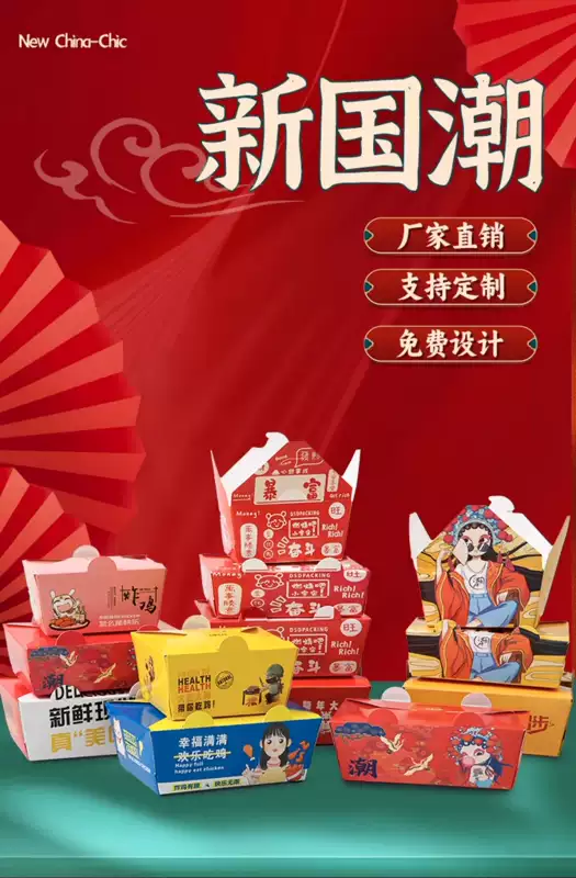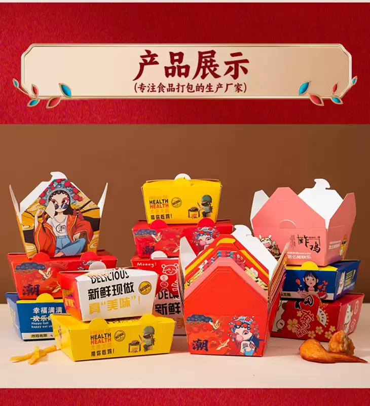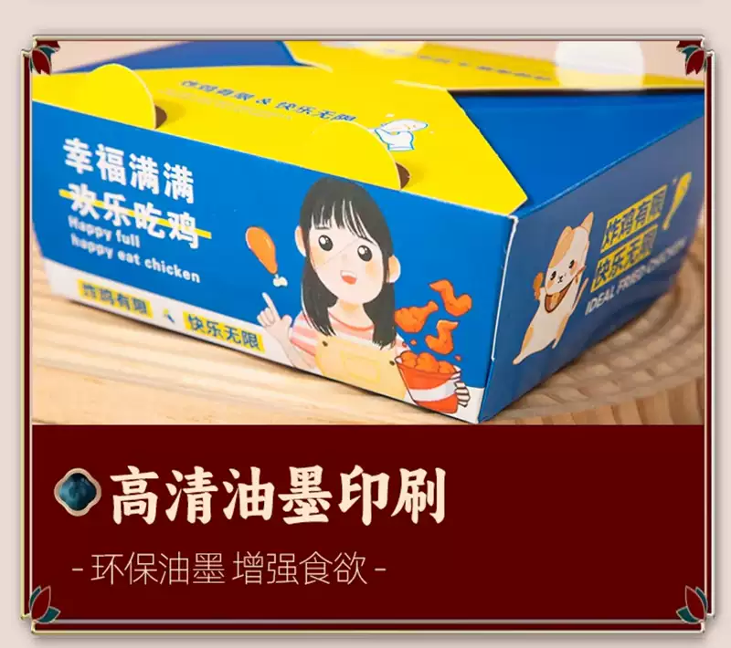 Yusenyi Korean Fried Chicken Packaging Box Lunch Box Paper Box Snack Takeaway Chicken Wings Disposable Packaging Commercial Chicken Box National Style Lunch Box No. 3 National Style Lunch Box No. 3 400 per box