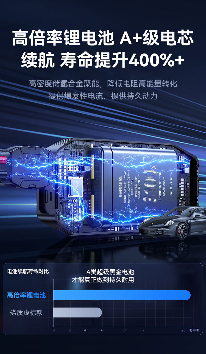 Yusenyi Battery Power Car Starter Emergency Power Supply is suitable for Xiaomi car power bank special air pump all-in-one machine + real standard high-performance A-grade explosion-proof battery with static zero loss and can stand by for 5 years after one charge