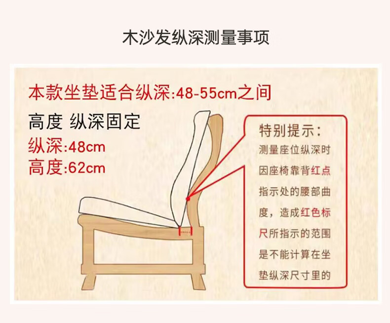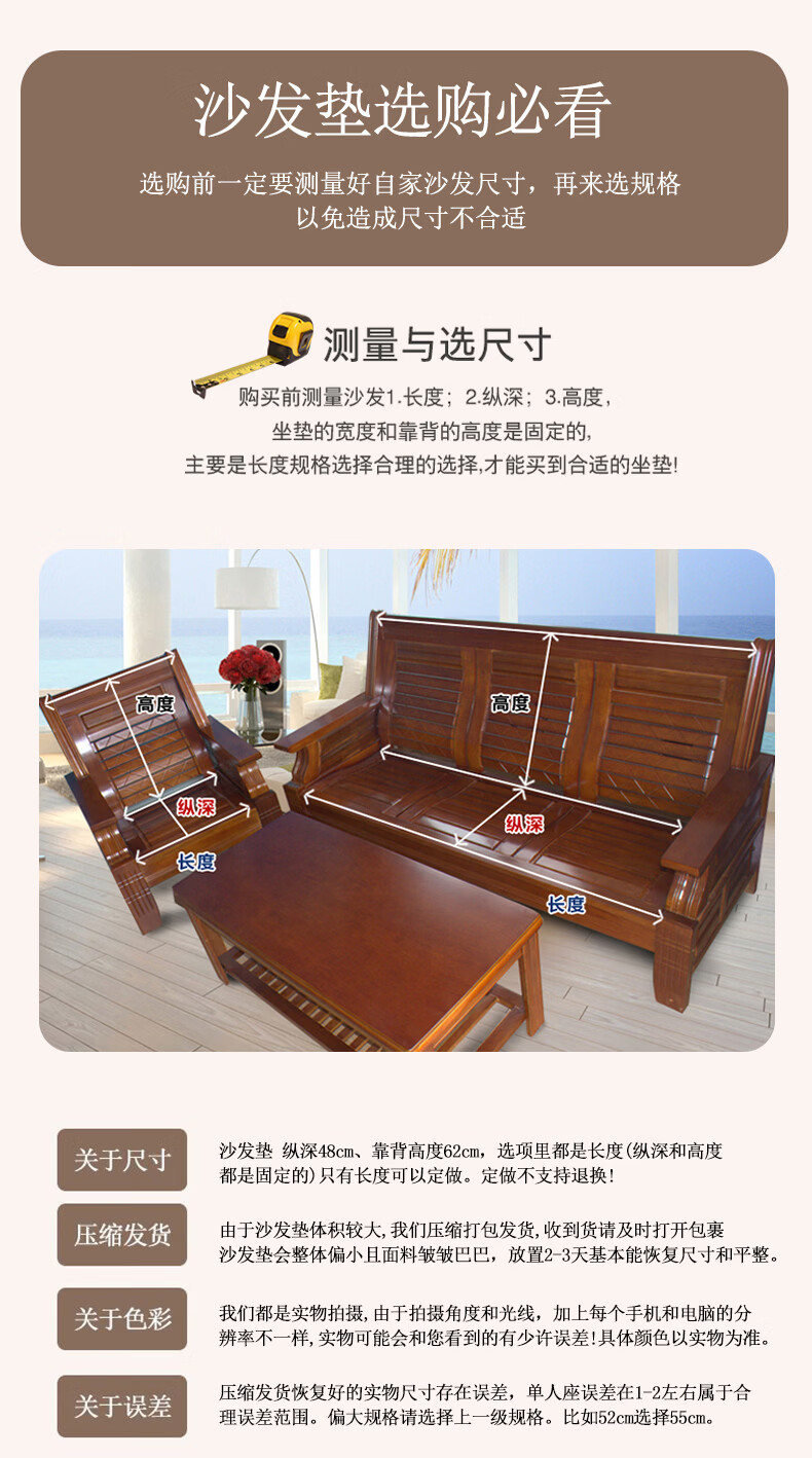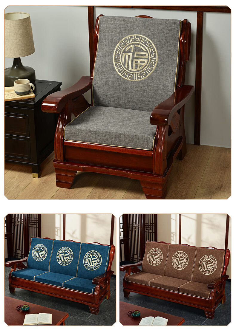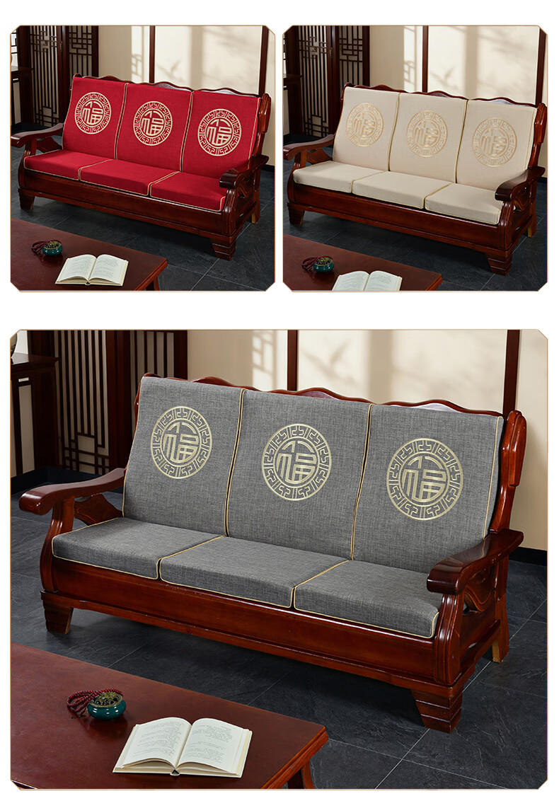 Old-fashioned solid wood sofa cushion with backrest wood chair three-seater thickened sponge cushion Fuyuan-ka 55cm*50cm single seat height 60cm