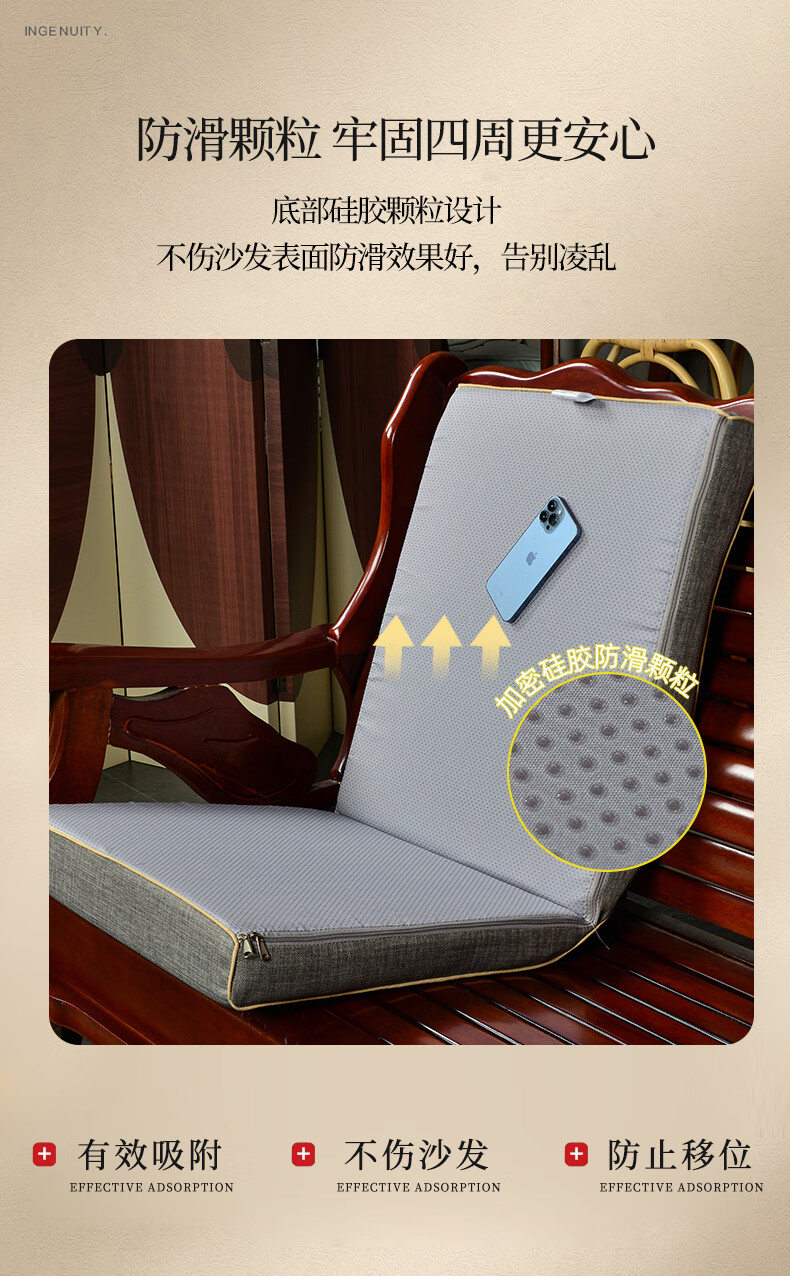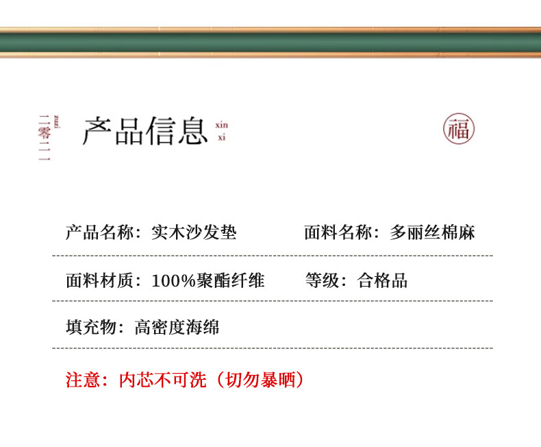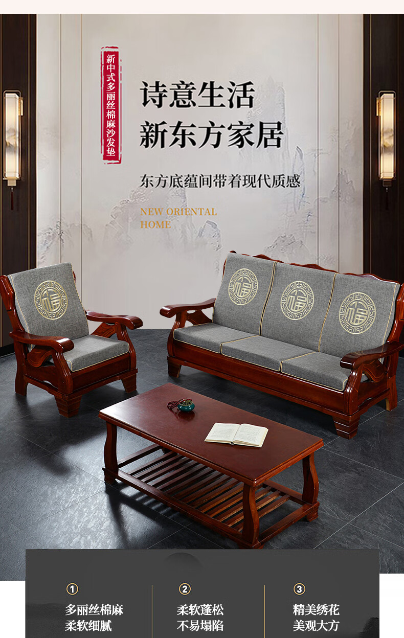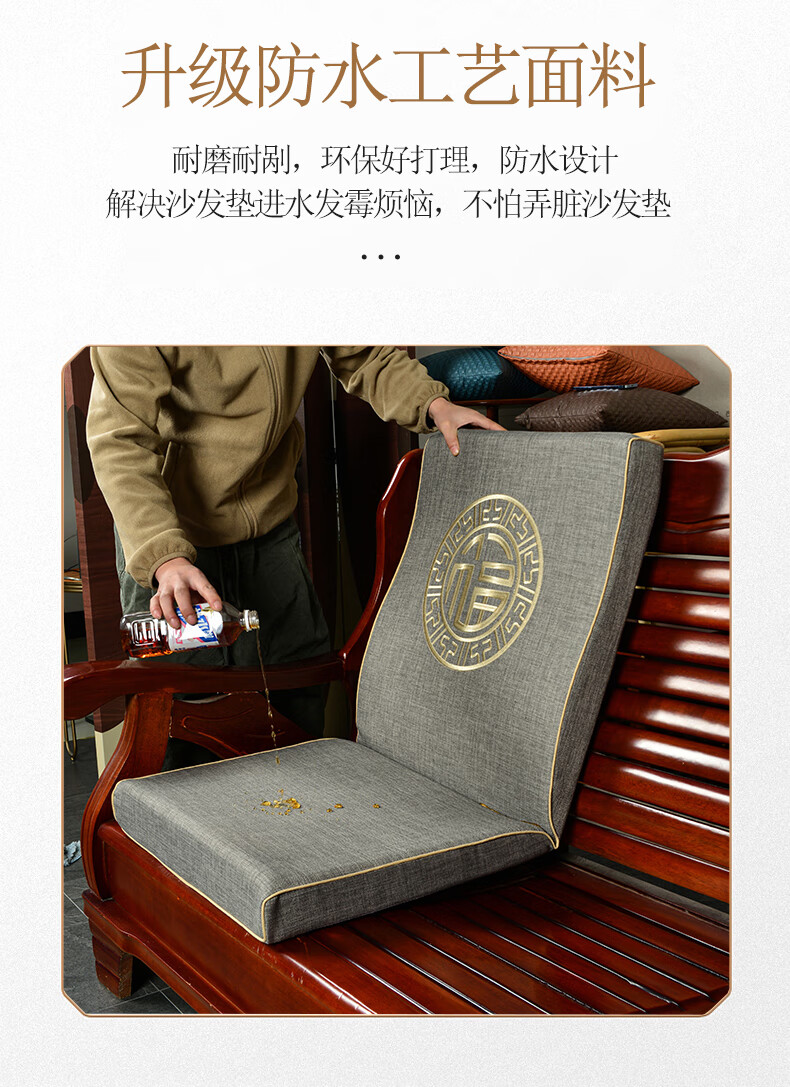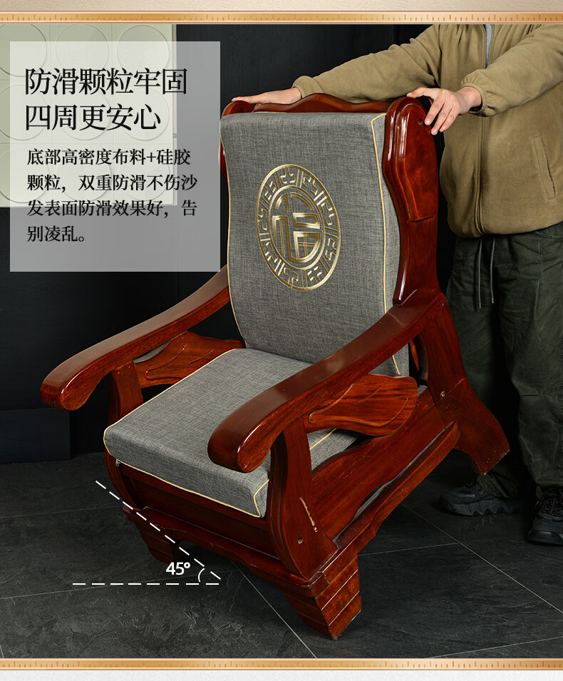 Old-fashioned solid wood sofa cushion with backrest wood chair three-seater thickened sponge cushion Fuyuan-ka 55cm*50cm single seat height 60cm