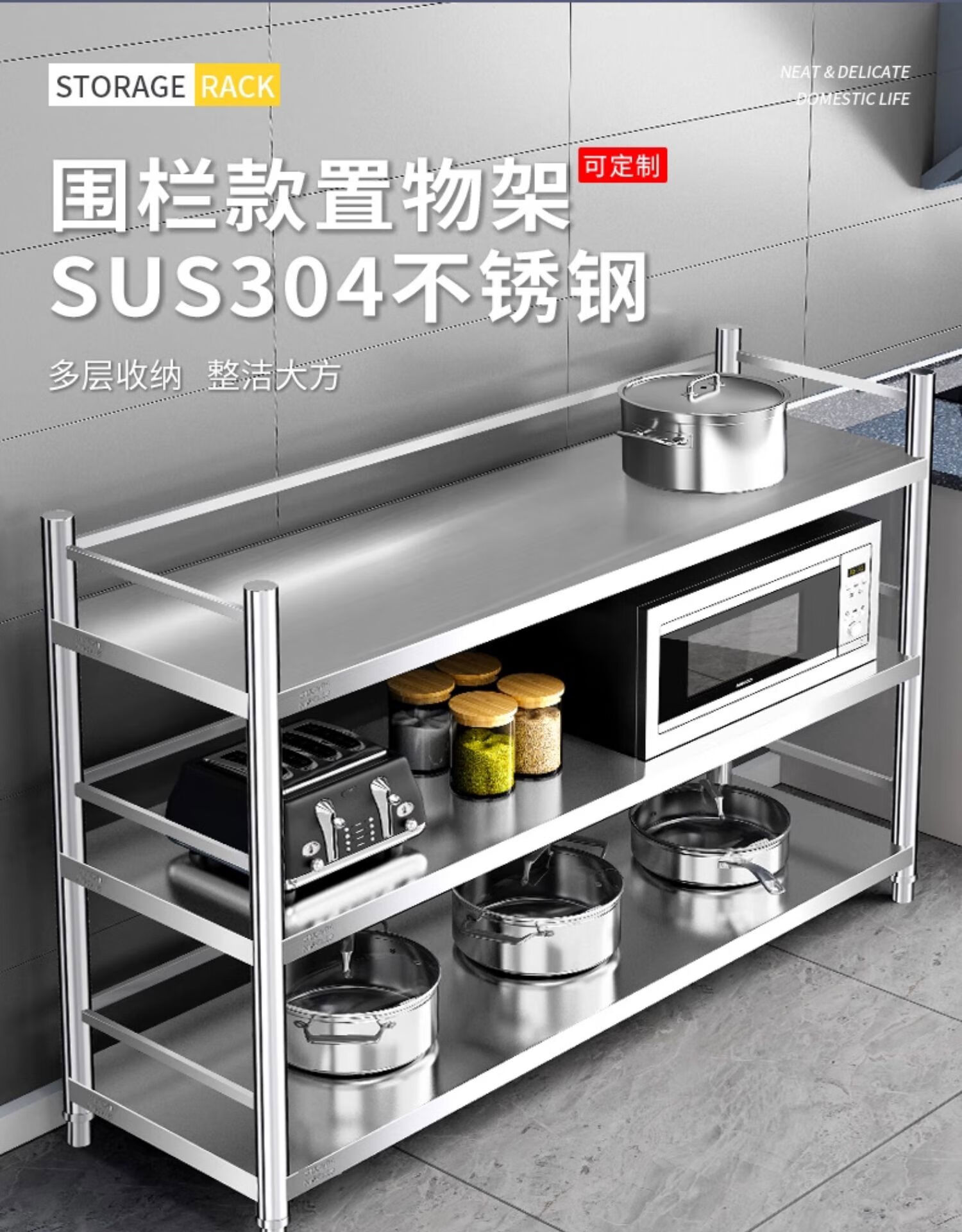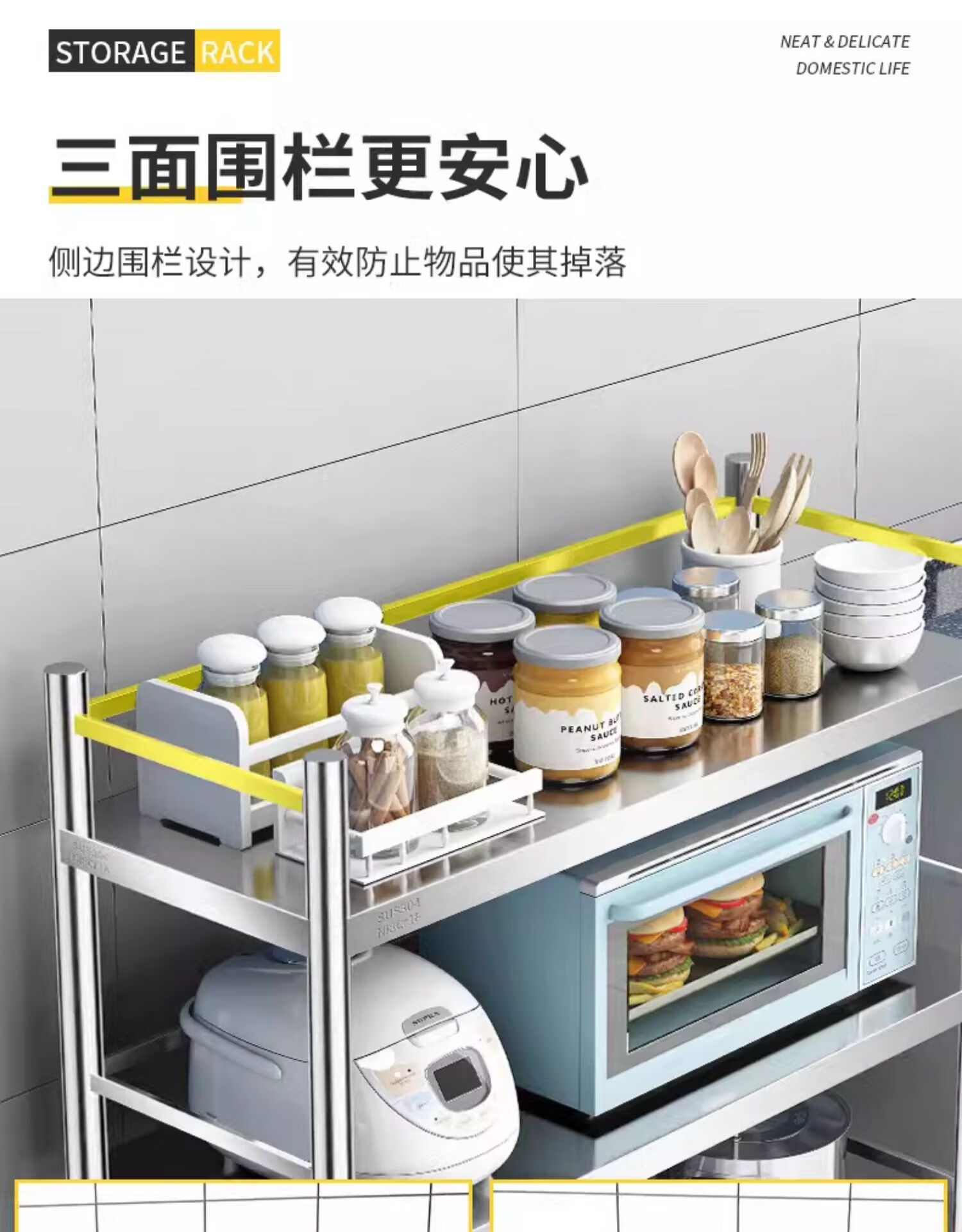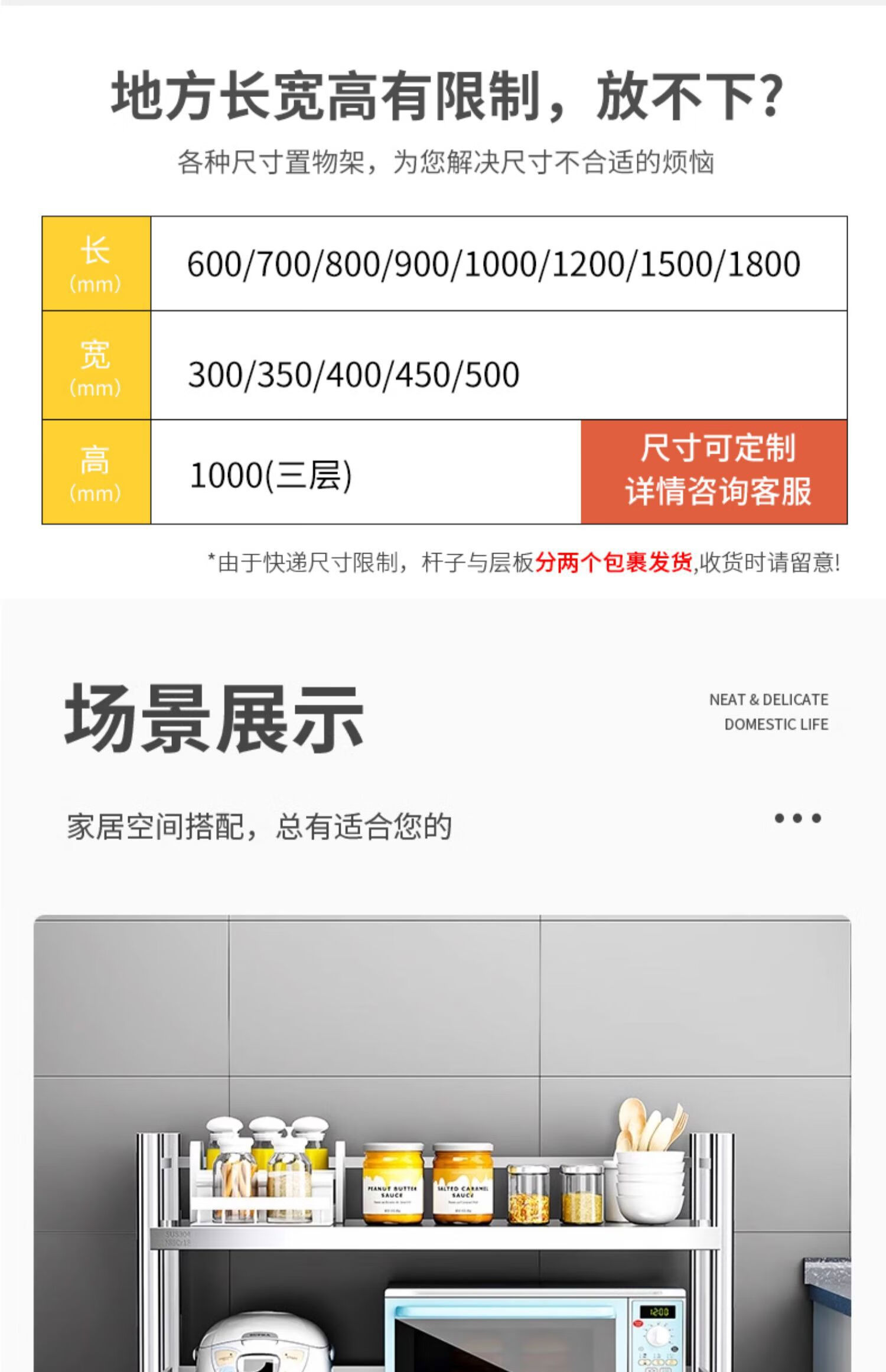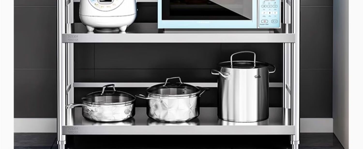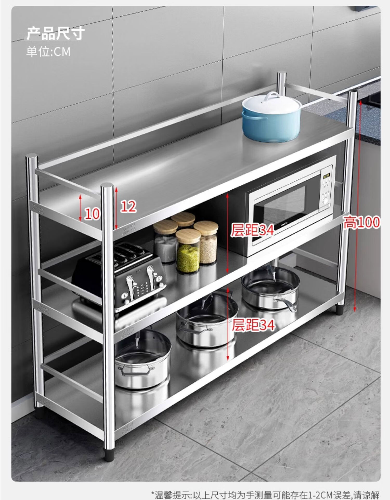 Floor-standing multi-layer microwave oven shelf with 3o4 storage 3 layers - length 150 width 40 height with