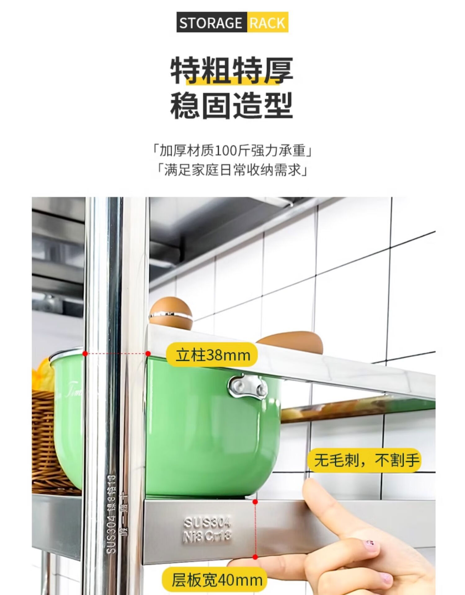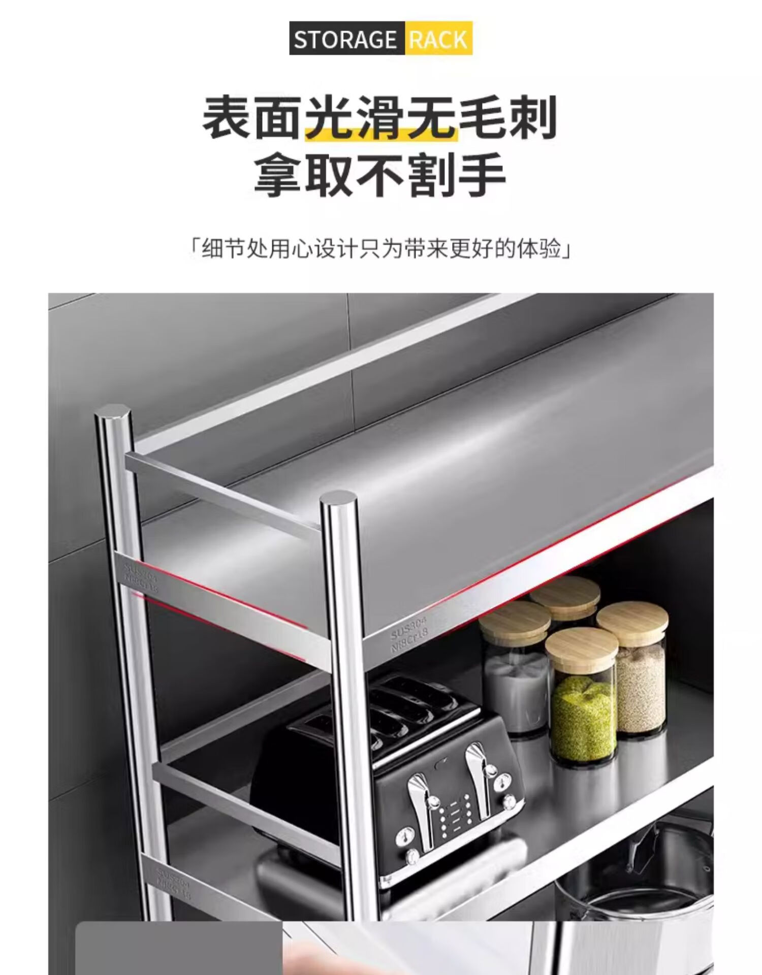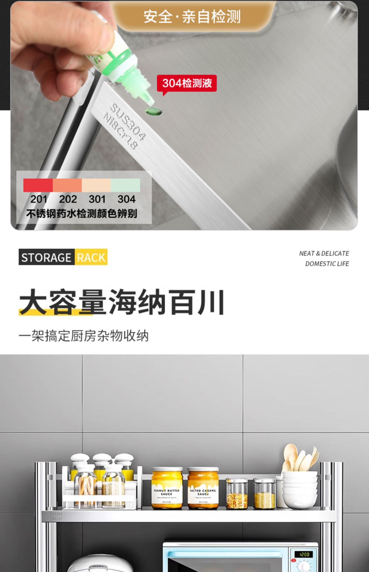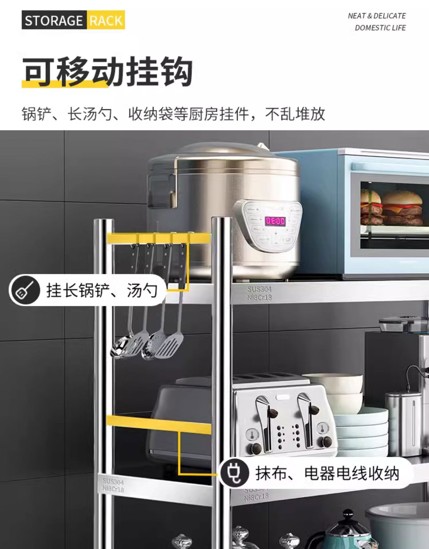Floor-standing multi-layer microwave oven shelf with 3o4 storage 3 layers - length 150 width 40 height with