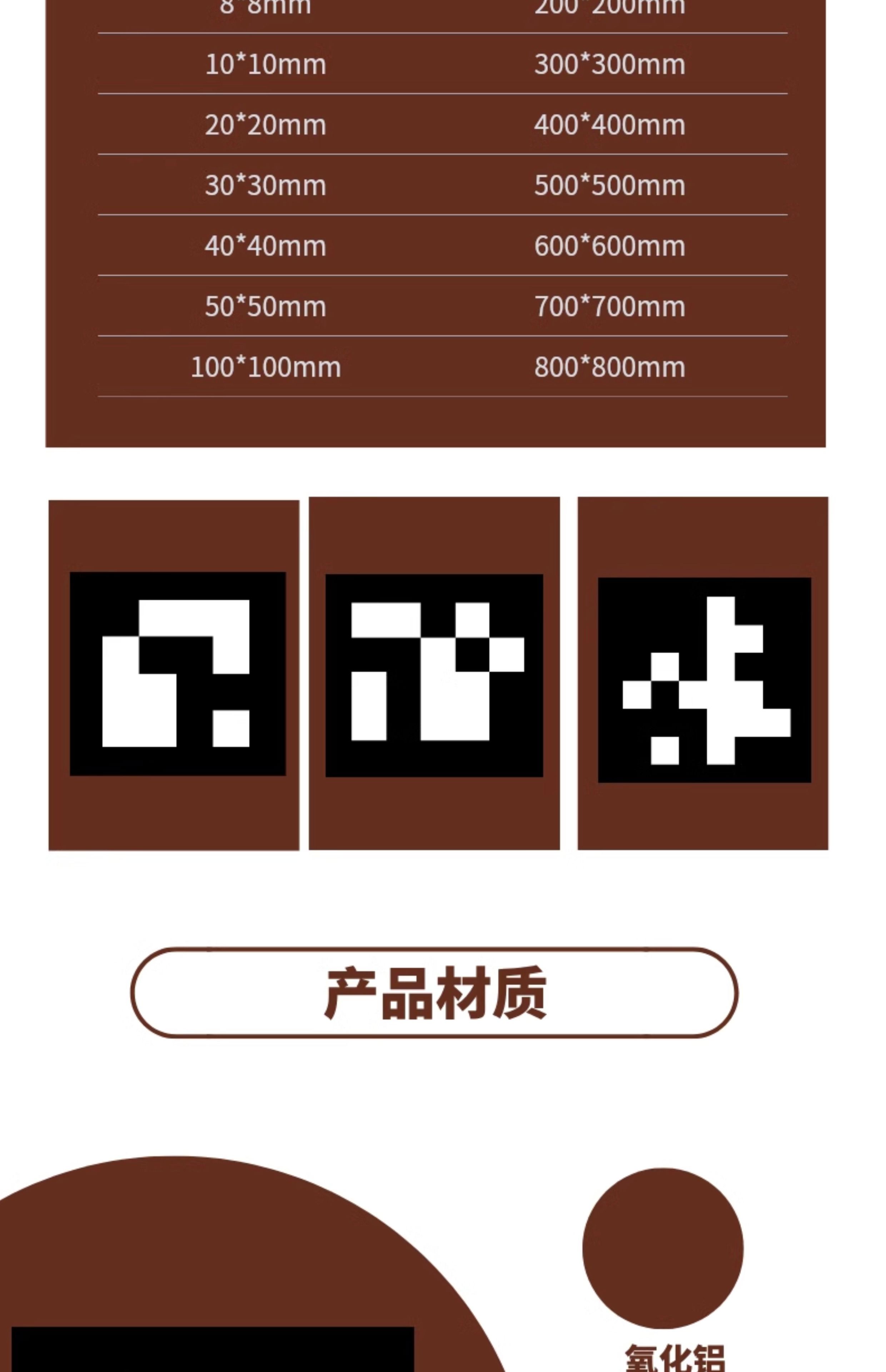 Pupan aruco code calibration board checkerboard calibration board charuco code glass alumina ceramic dots 500*500mm