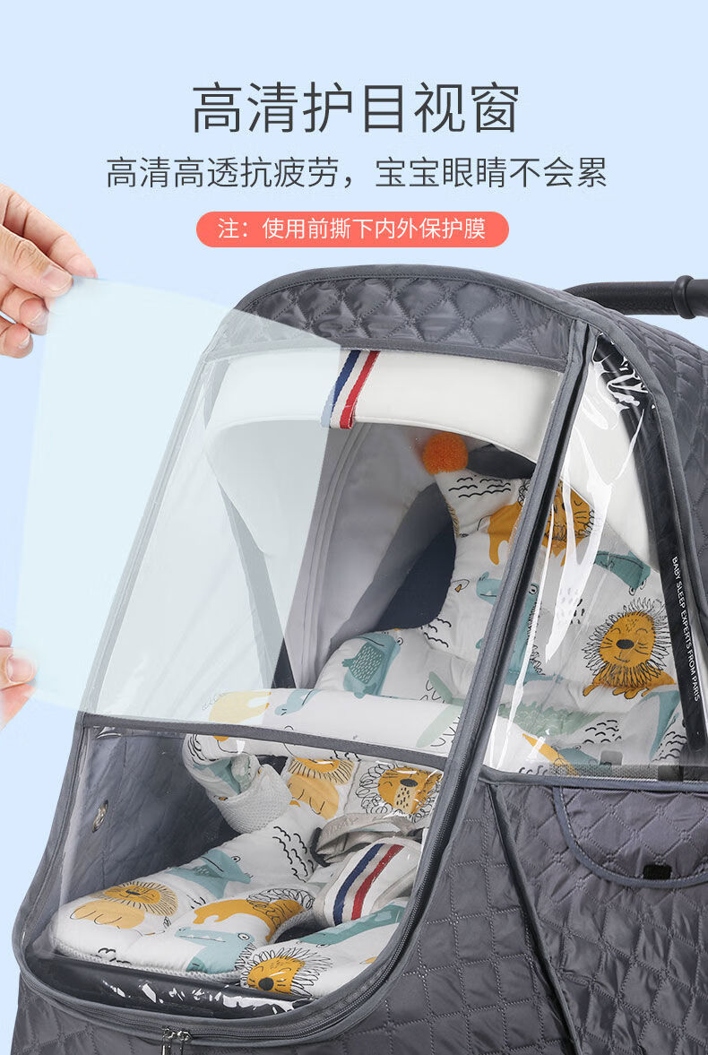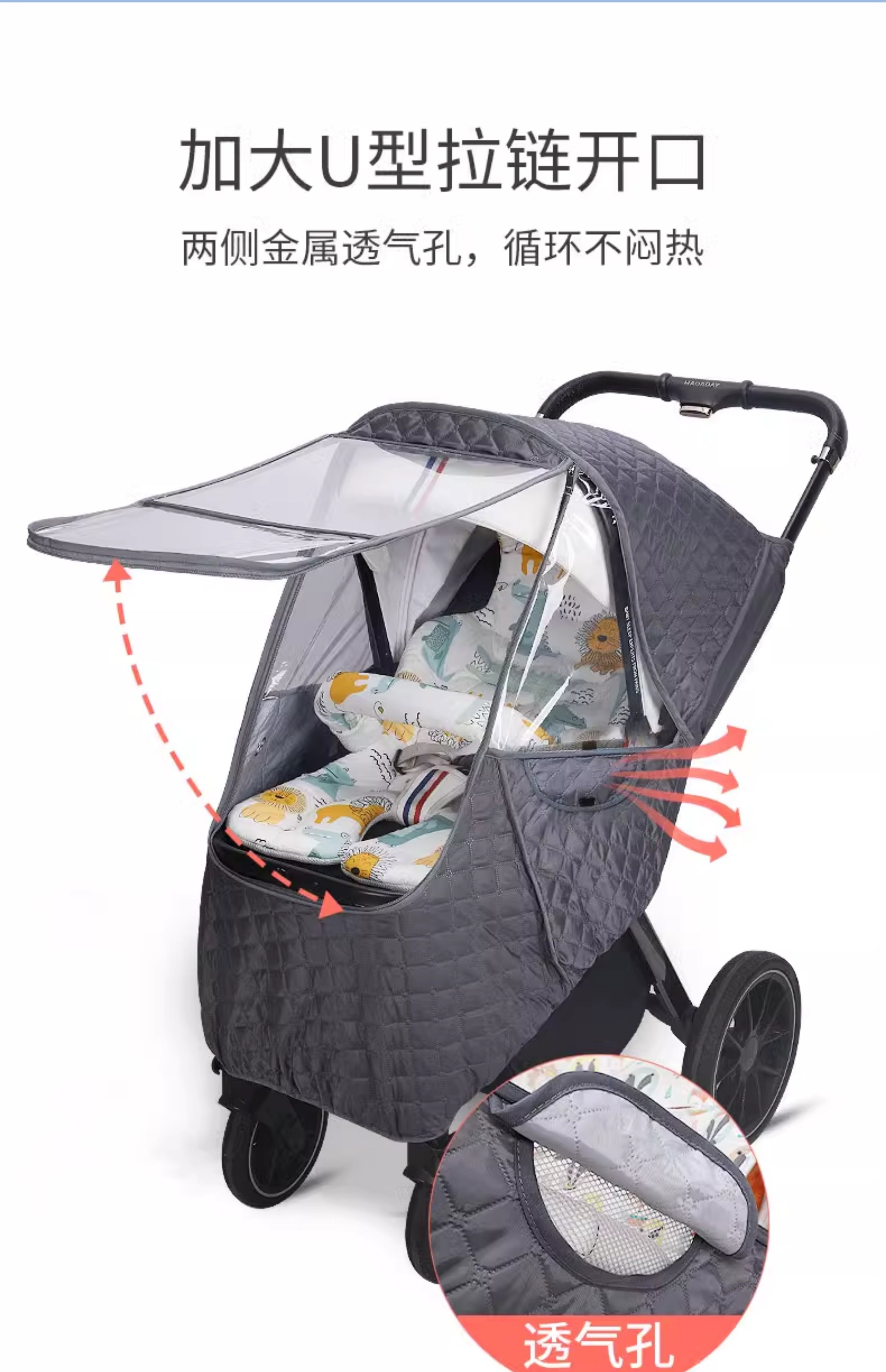 Stroller Windproof Cover Baby Stroller Windproof Cloak Winter Children's Car Warm Rainproof Cover Universal Winter Dark Gray Model 2024 Upgraded Large Window