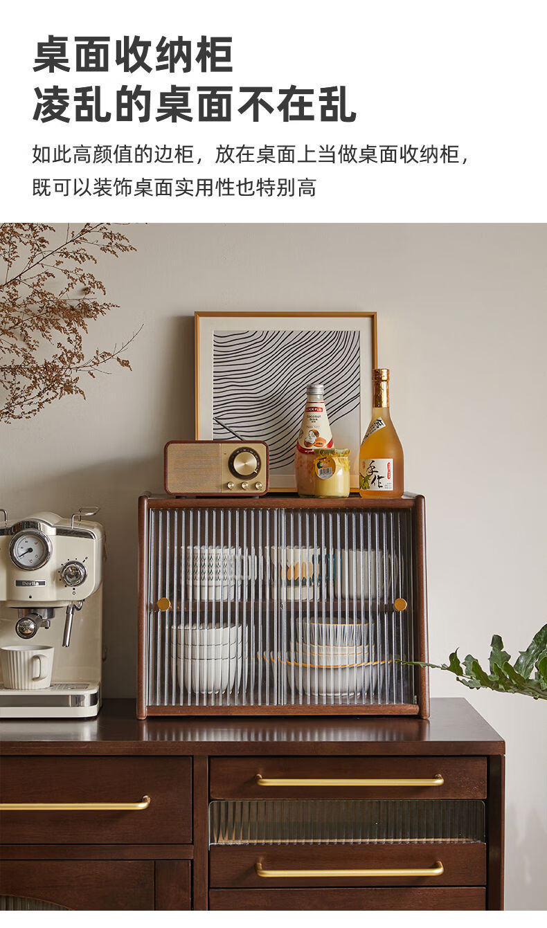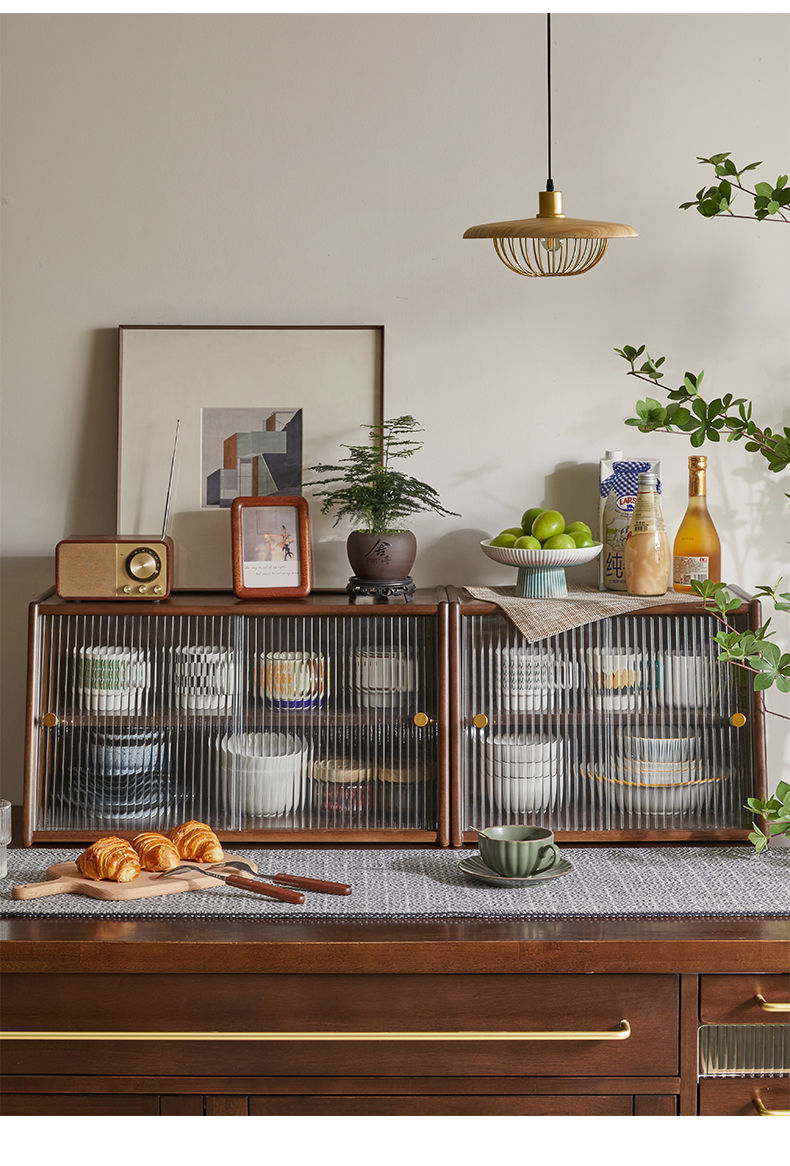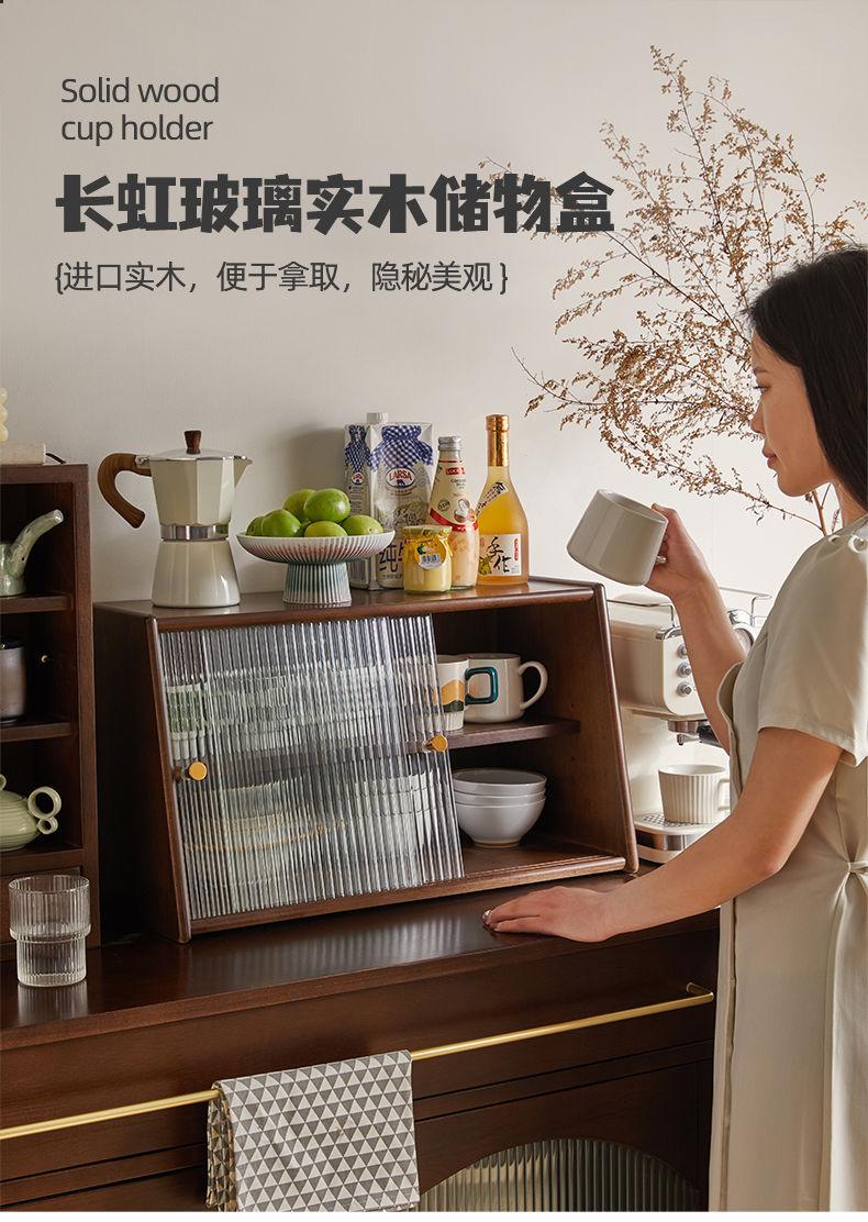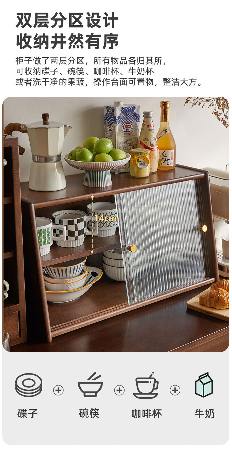 Jiayi solid wood light luxury sideboard kitchen storage rack wall cabinet household dining table bowl counter top storage high cabinet storage rack sliding door small size - walnut color imported solid wood shipped in one package