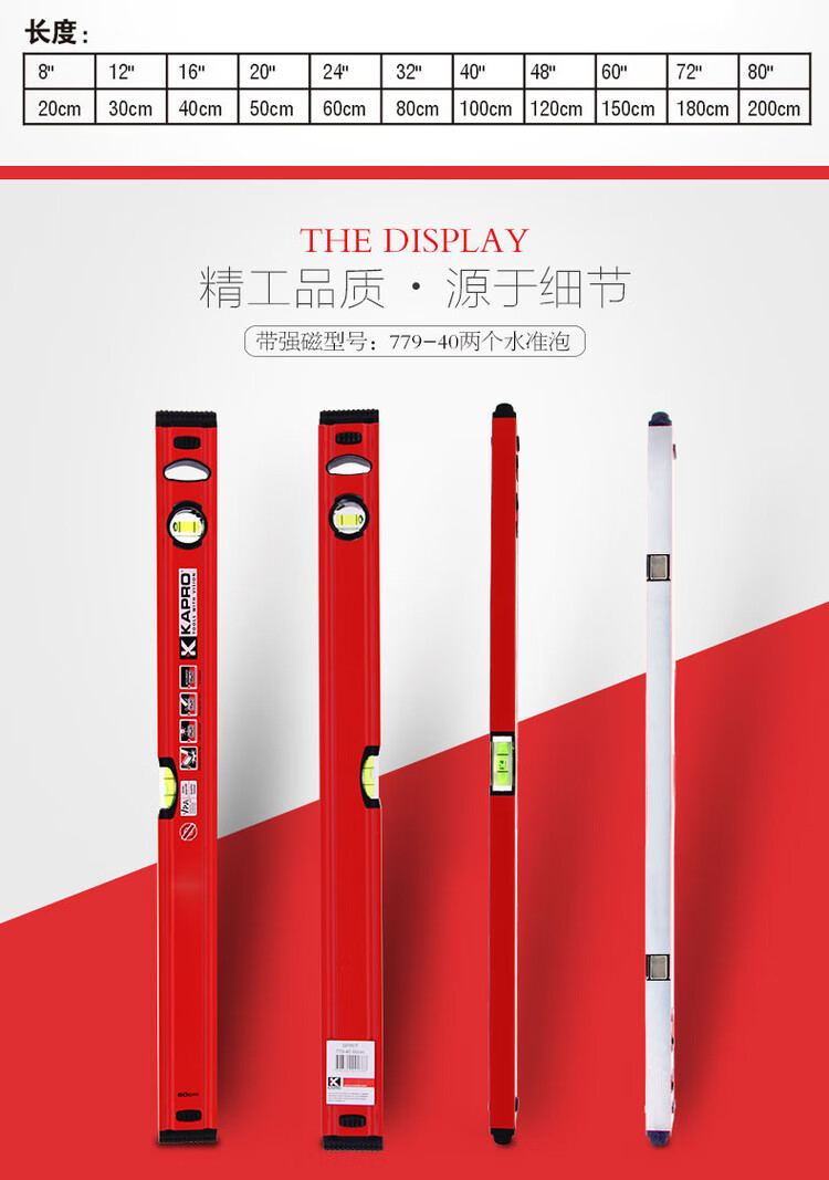 779 spirit level high-precision magnetic aluminum alloy level for home decoration measurement 779-40M30cm with magnetic 2 bubbles