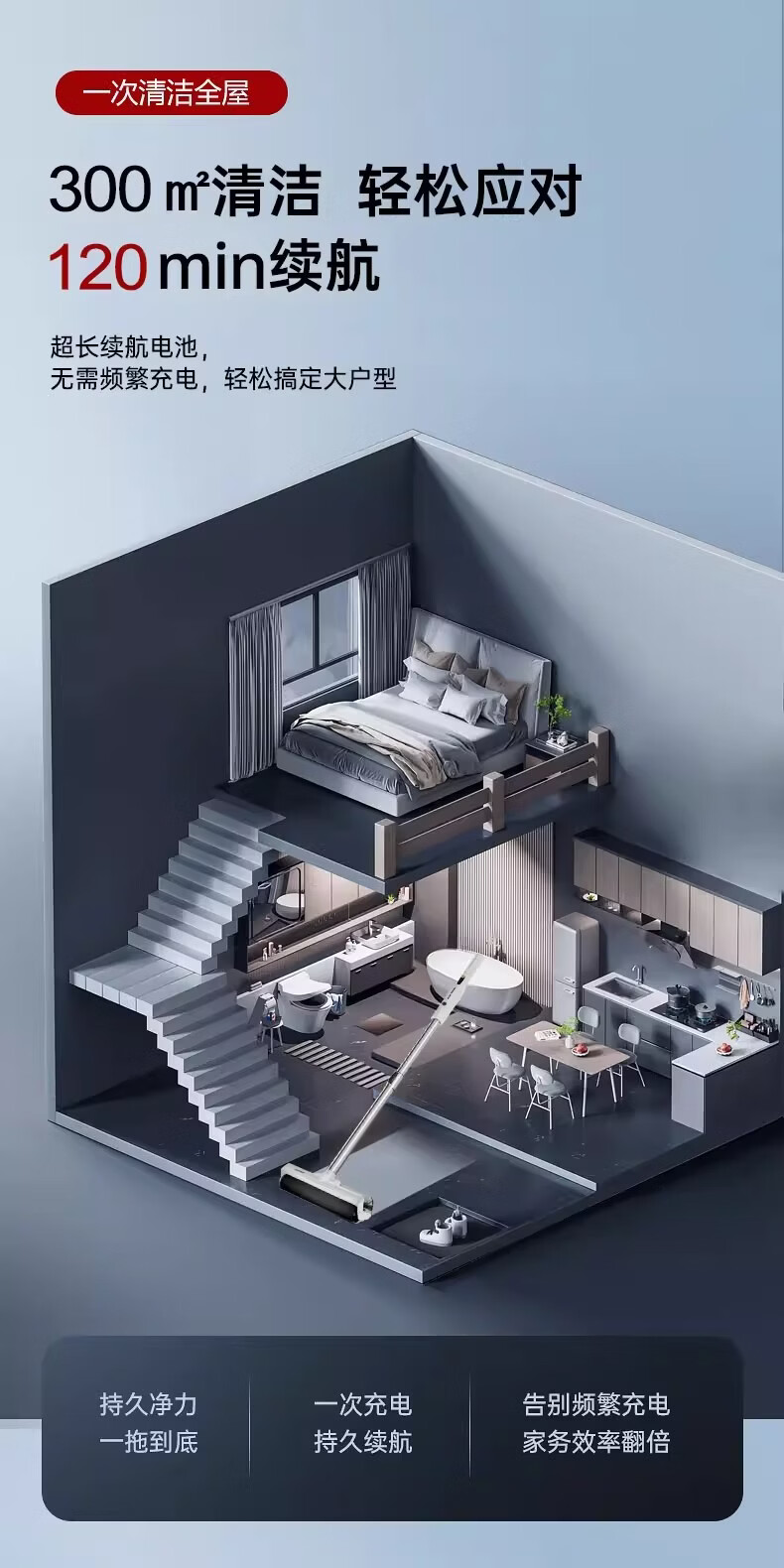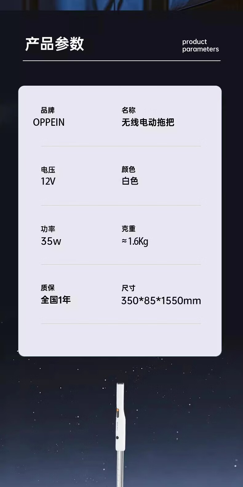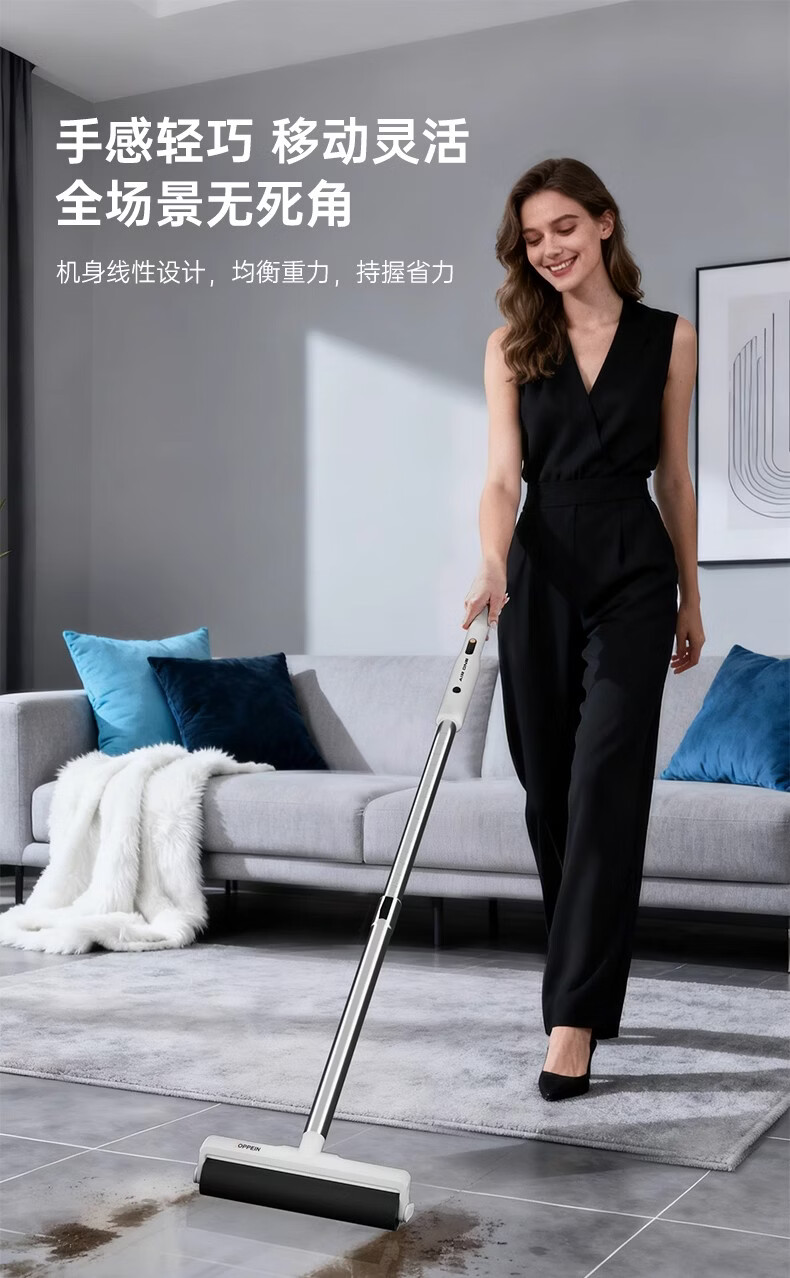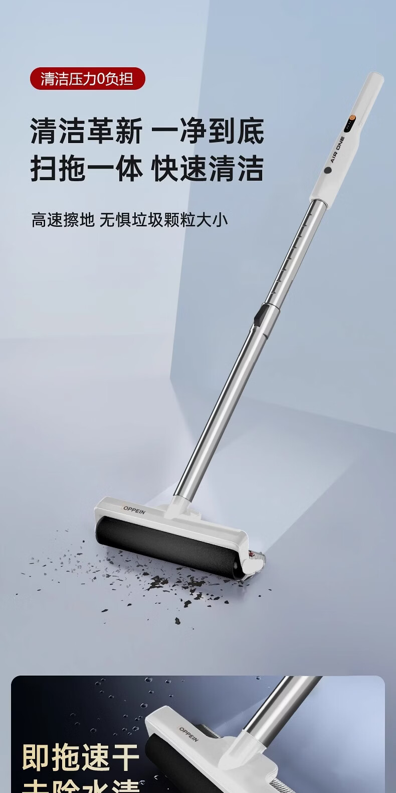 Oppein household electric mop wireless lazy automatic floor scrubber intelligent dry and wet dual-use mopping and wet mopping in one 25 upgraded wireless electric mop (white simple model)