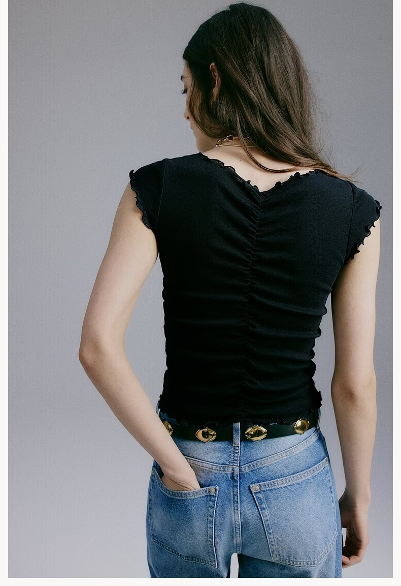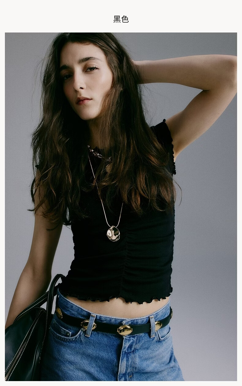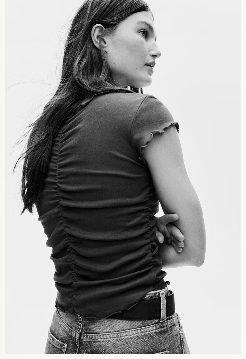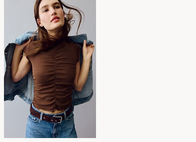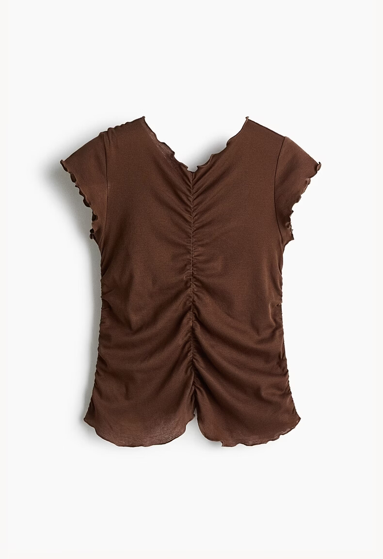 H&M 2026 Spring New Women's Draped Cotton Top 1320809 Brown XL 175/116
