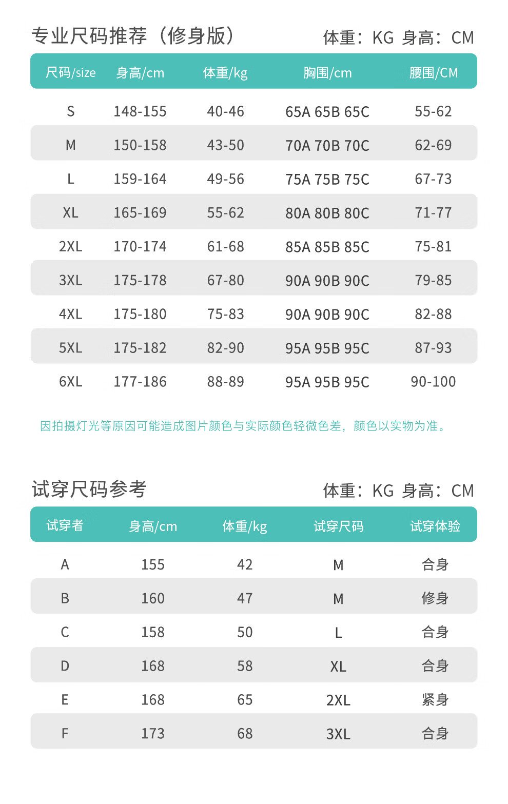 China (cm) 160-165/84-86 165-170 / 88-90 167-172 / 92-96 168-173 / 98-102 170-176 / 106-110