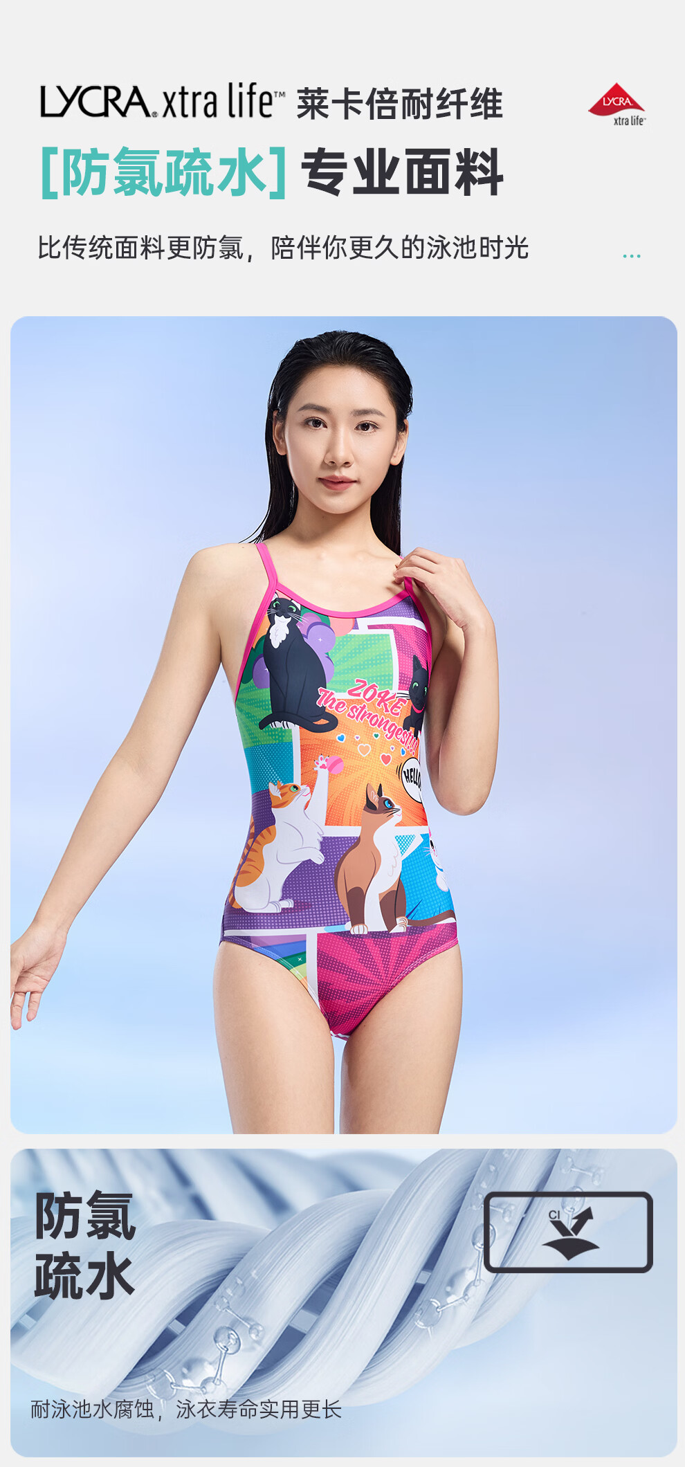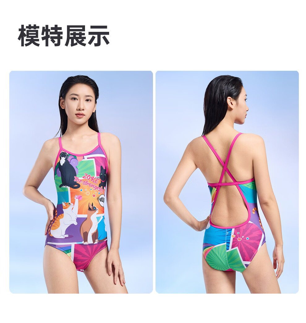 Chauke swimsuit women's sleeveless one-piece triangle belly-covering professional swimming training women's swimsuit hot spring swimsuit rose green orange cat party flower 126301120 L