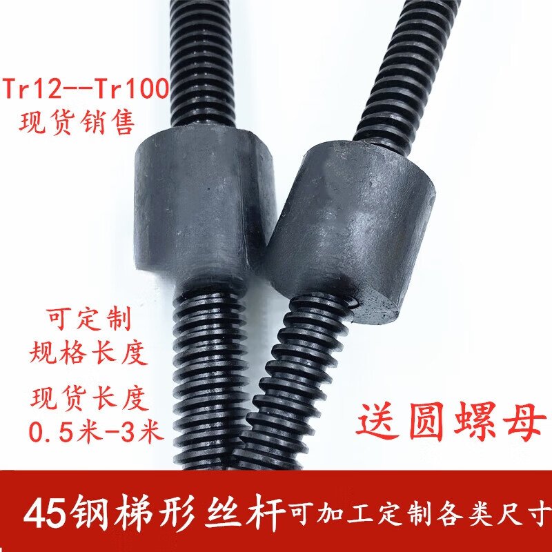 Jieyunmao No. 45 steel trapezoidal screw nut, coarse tooth T-type screw set, positive wire, reverse tooth, right-hand left-hand thread, positive wire 100*10*1 meter, 1 piece, 2 hexagonal nuts