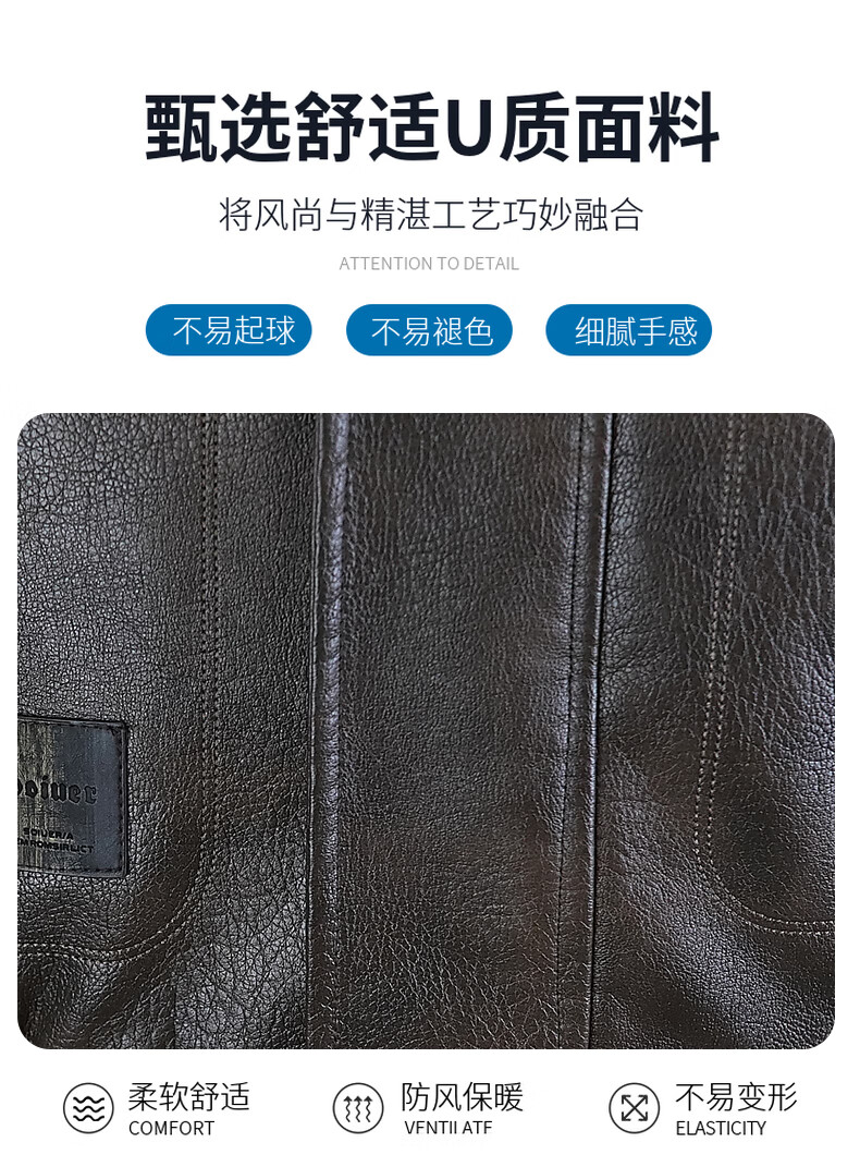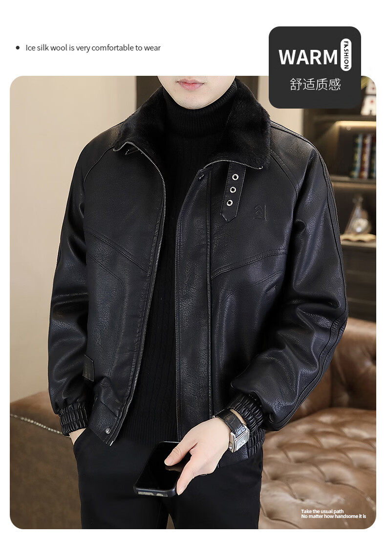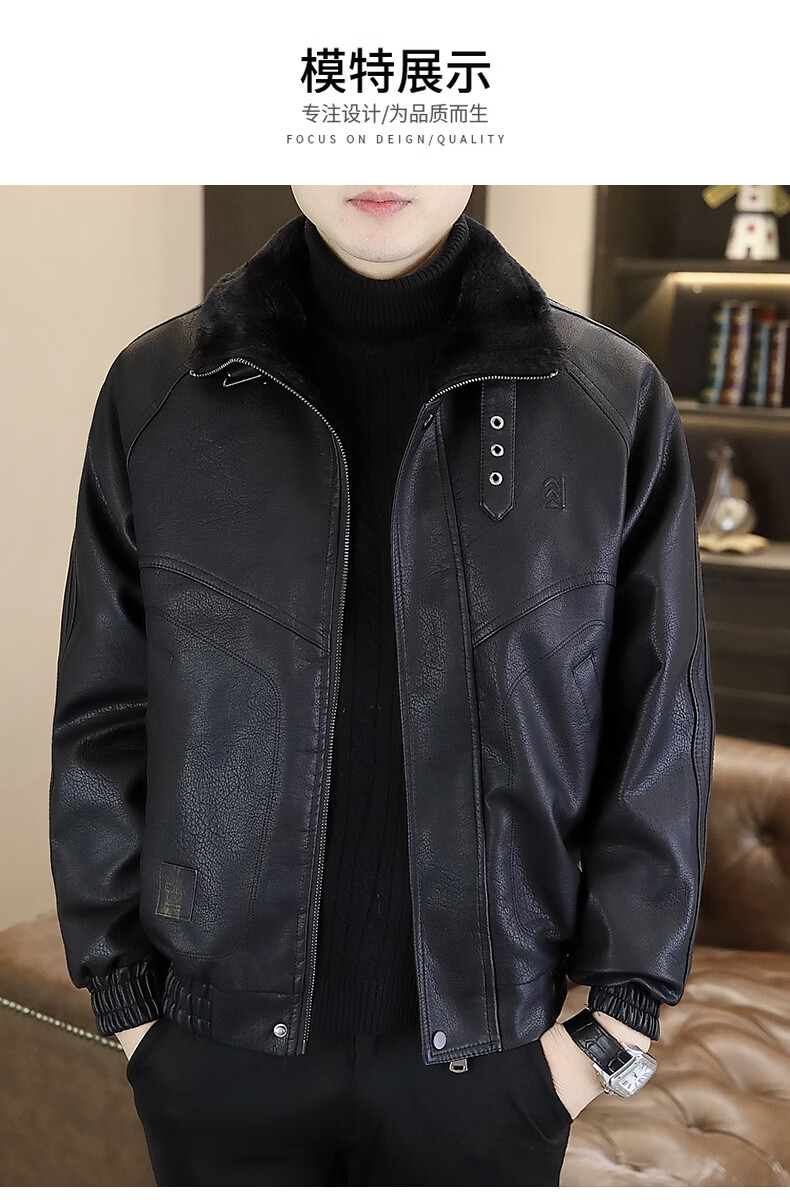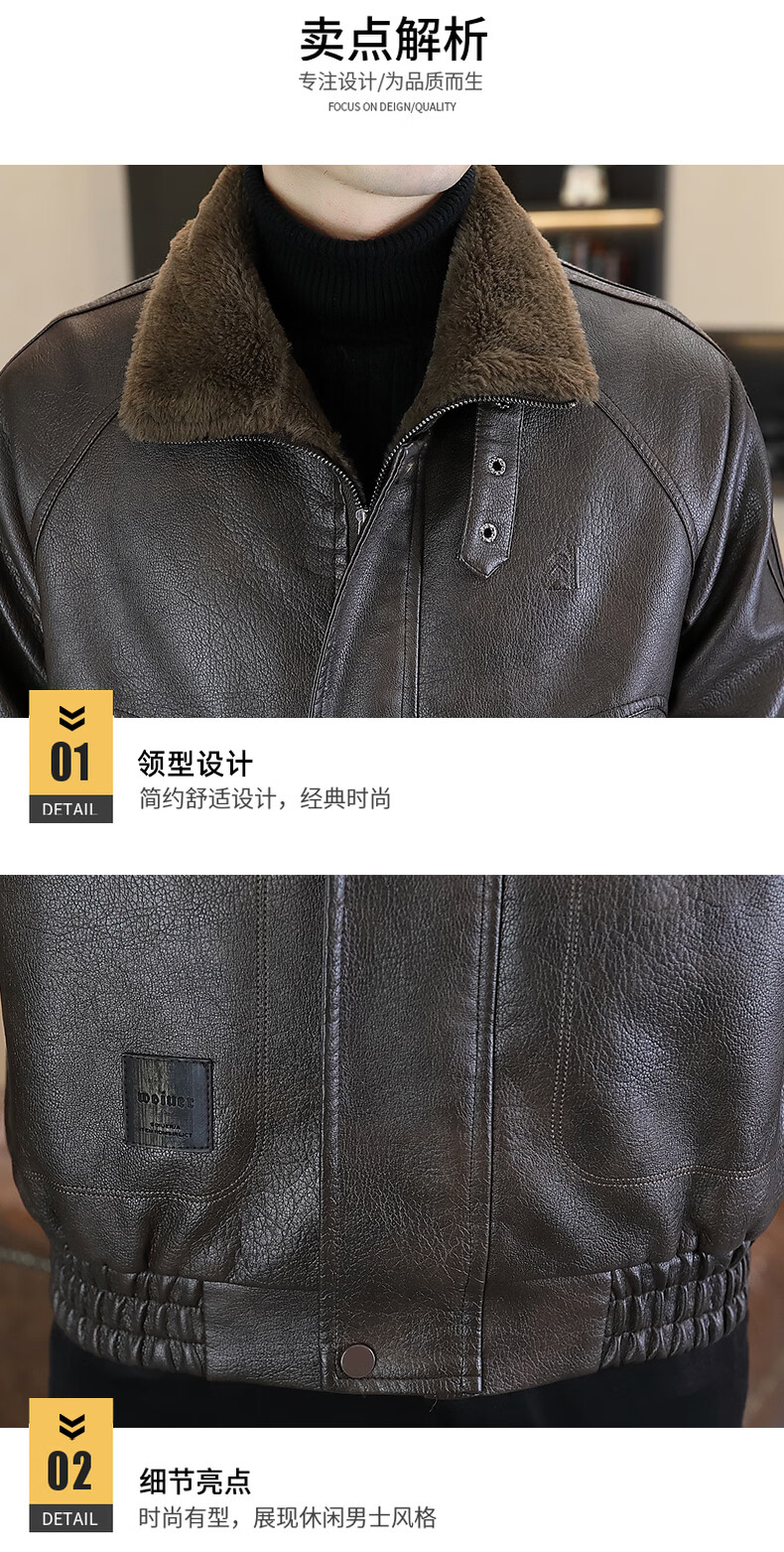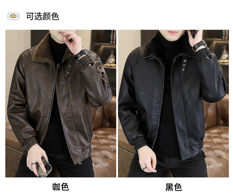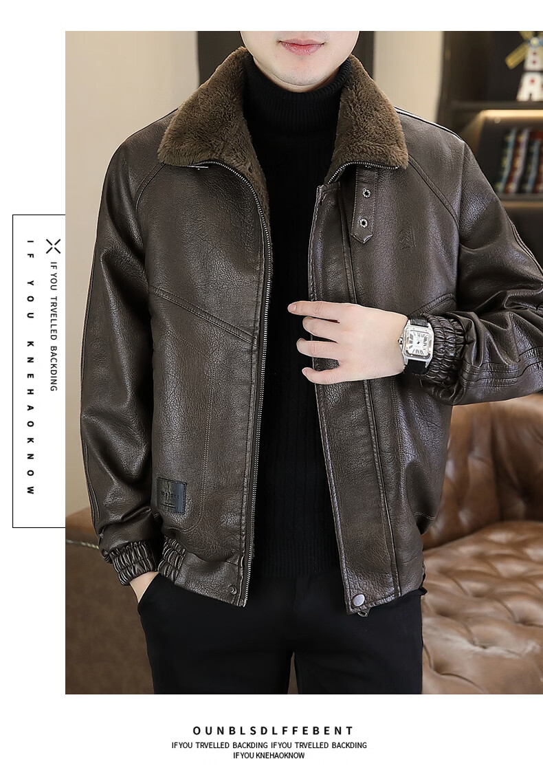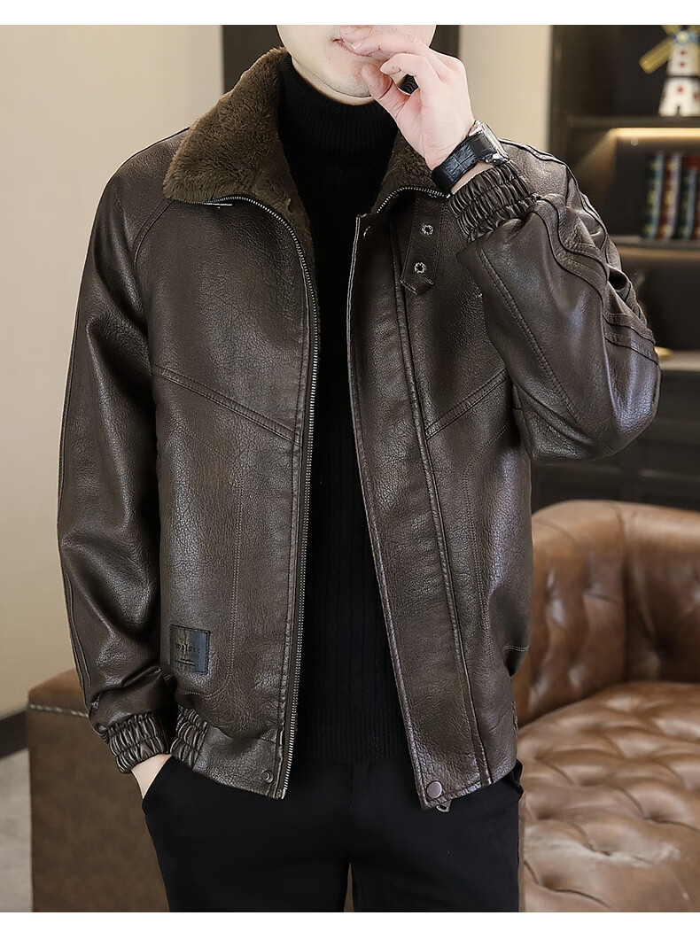 Playboy leather jacket men's velvet jacket winter new trend windproof warm casual light luxury luxury thickened leather jacket 8523 coffee color L recommended 90-105Jin Jin equals 0.5 kg