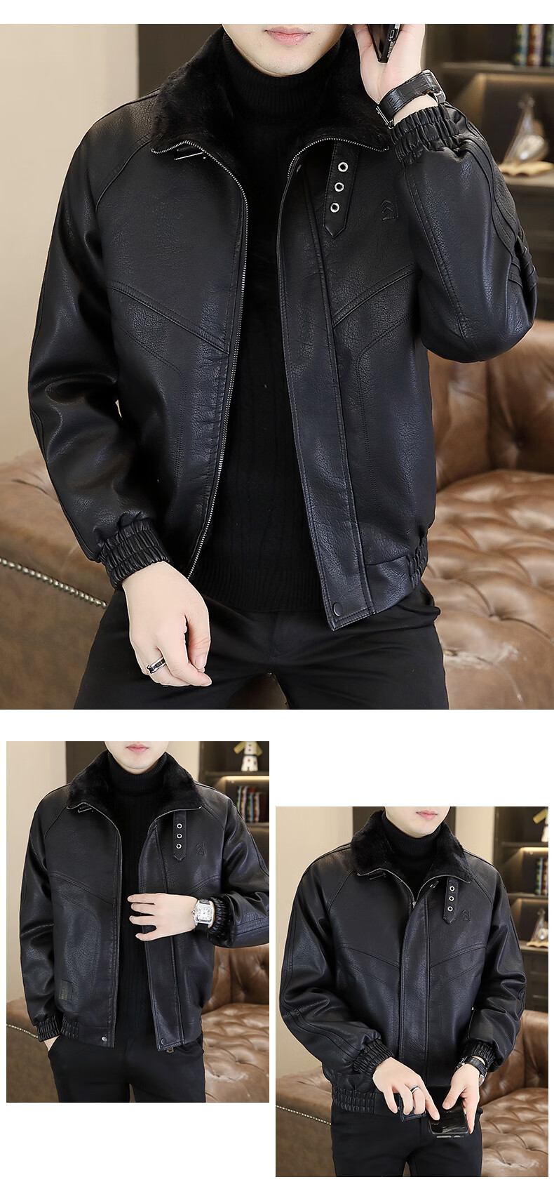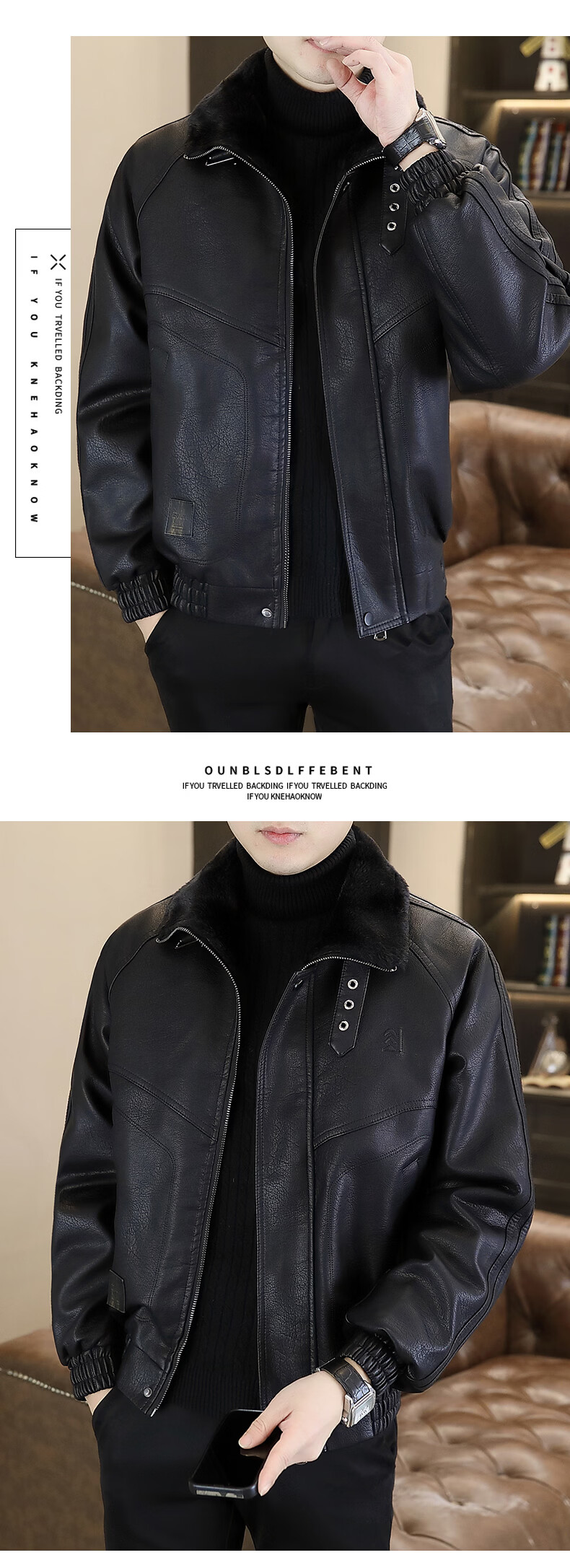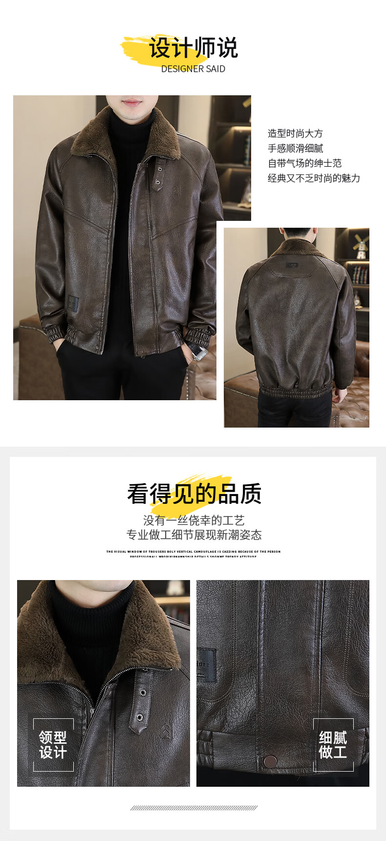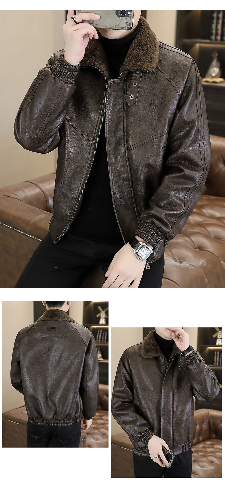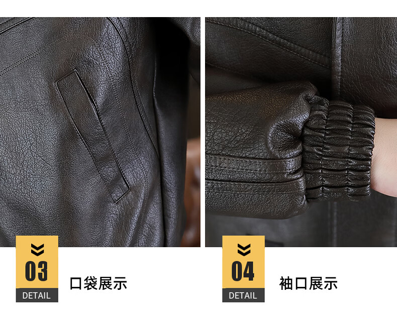 Playboy leather jacket men's velvet jacket winter new trend windproof warm casual light luxury luxury thickened leather jacket 8523 coffee color L recommended 90-105Jin Jin equals 0.5 kg