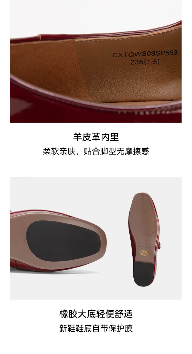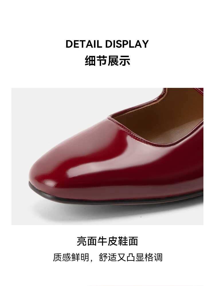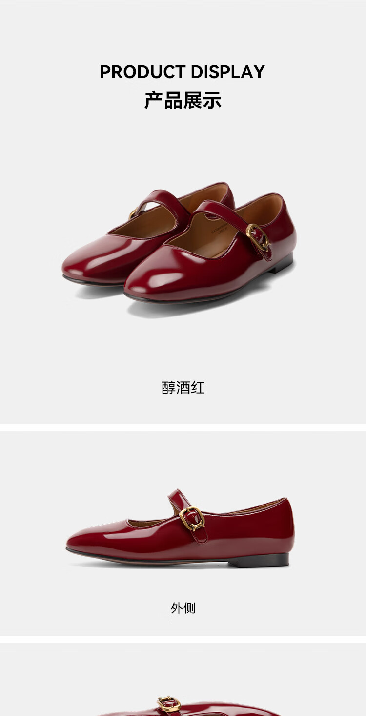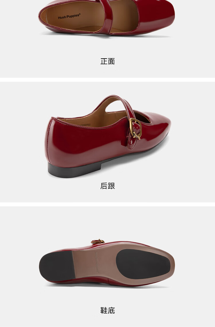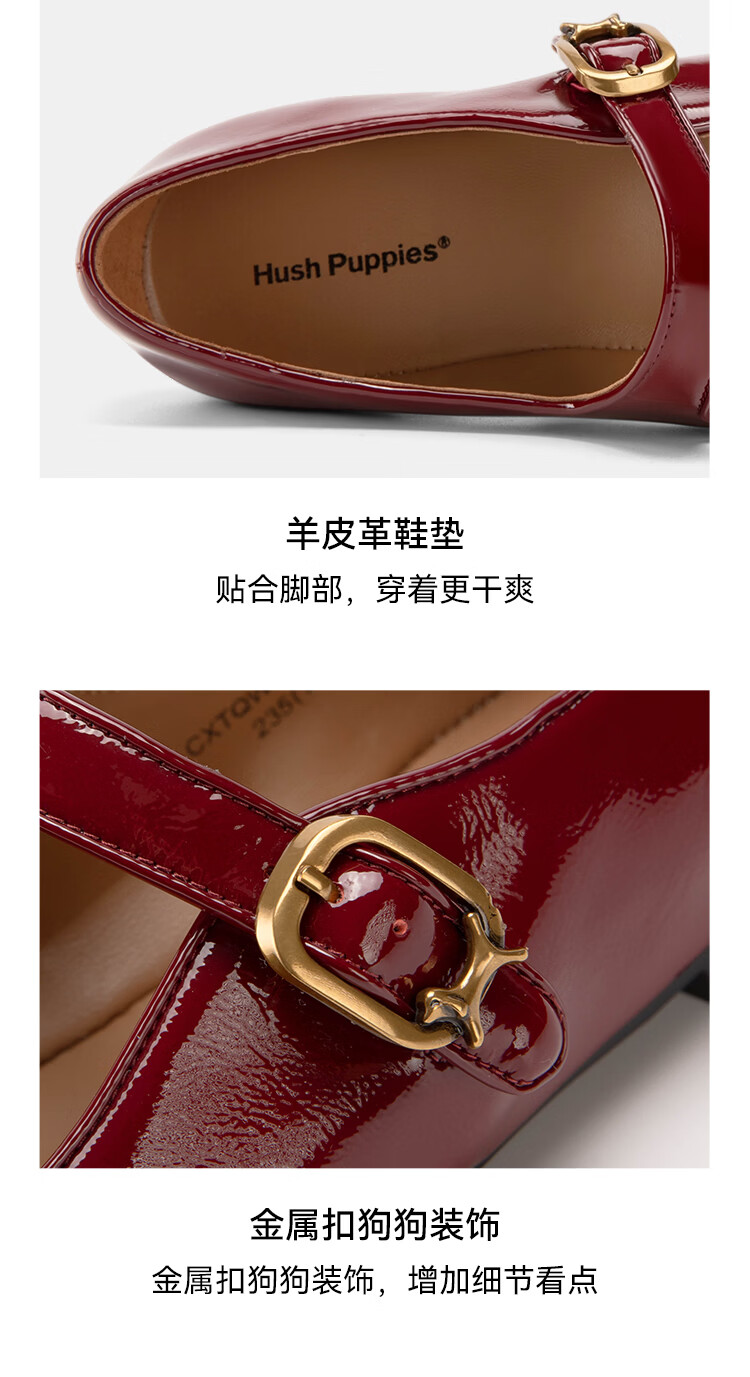 Hush Puppies Mary Jane women's shoes 2026 new fashion square toe low heel shallow mouth single shoes French light shiny cowhide shoes mellow wine red 35