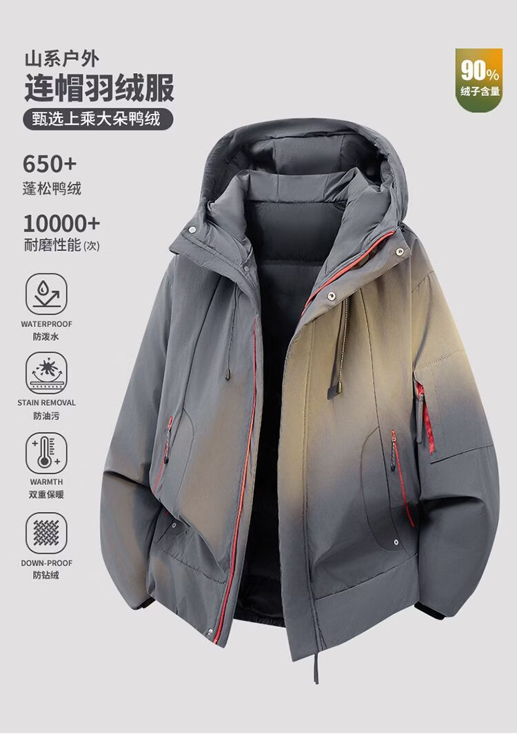 PANMAX down jacket winter men's trendy and versatile 2025 hooded new windproof thickened warm casual jacket distant mountain gray XL recommended 150-170Jin Jin equals 0.5 kg
