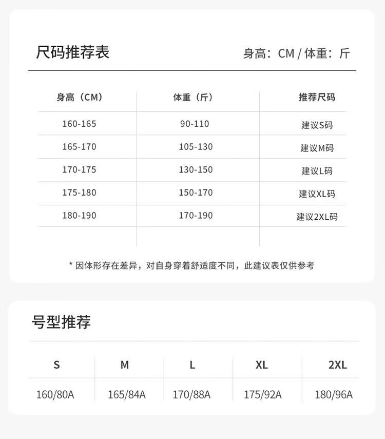 China (cm) 160-165/84-86 165-170 / 88-90 167-172 / 92-96 168-173 / 98-102 170-176 / 106-110