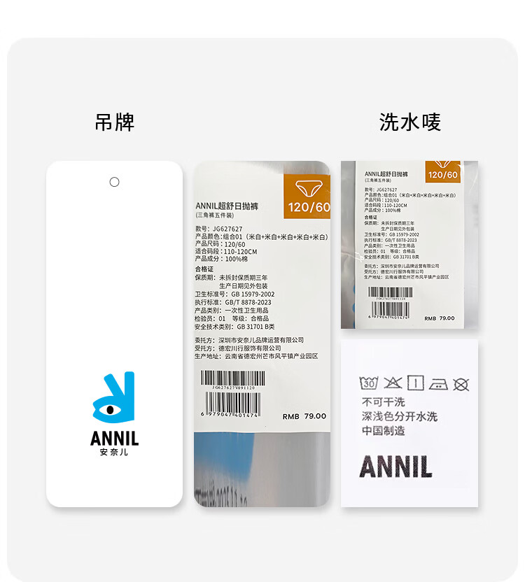 Annael 5 pairs of girls' pure cotton disposable briefs 2026 summer new EO sterilization and no-wash combination 01 (off-white + off-white + off-white + off-white + off-white) 120