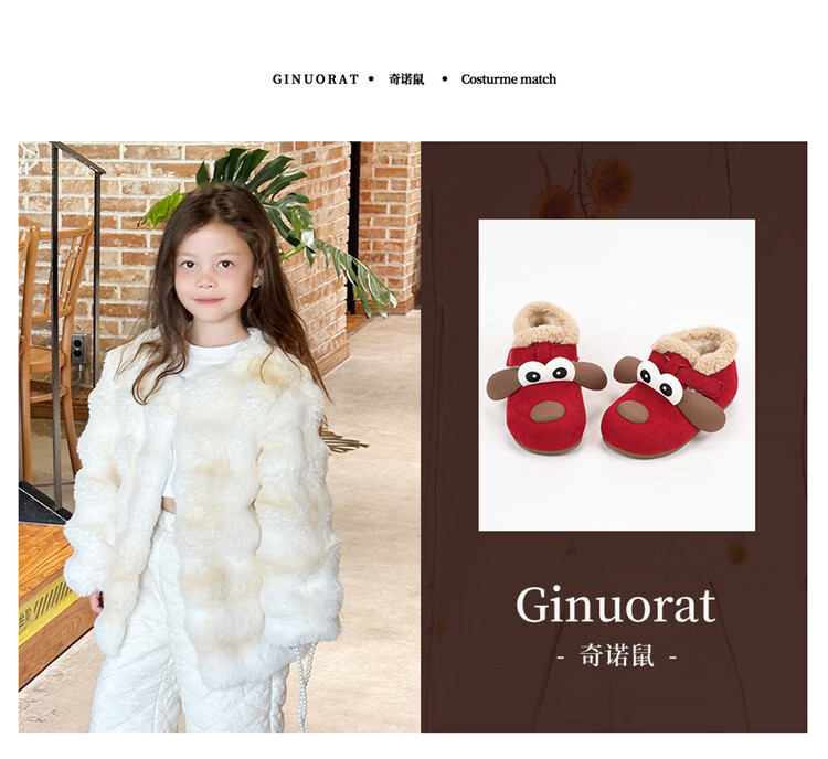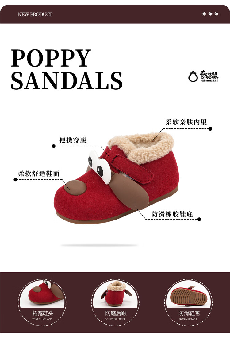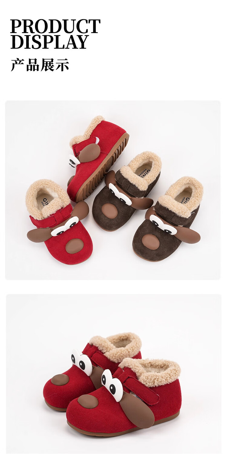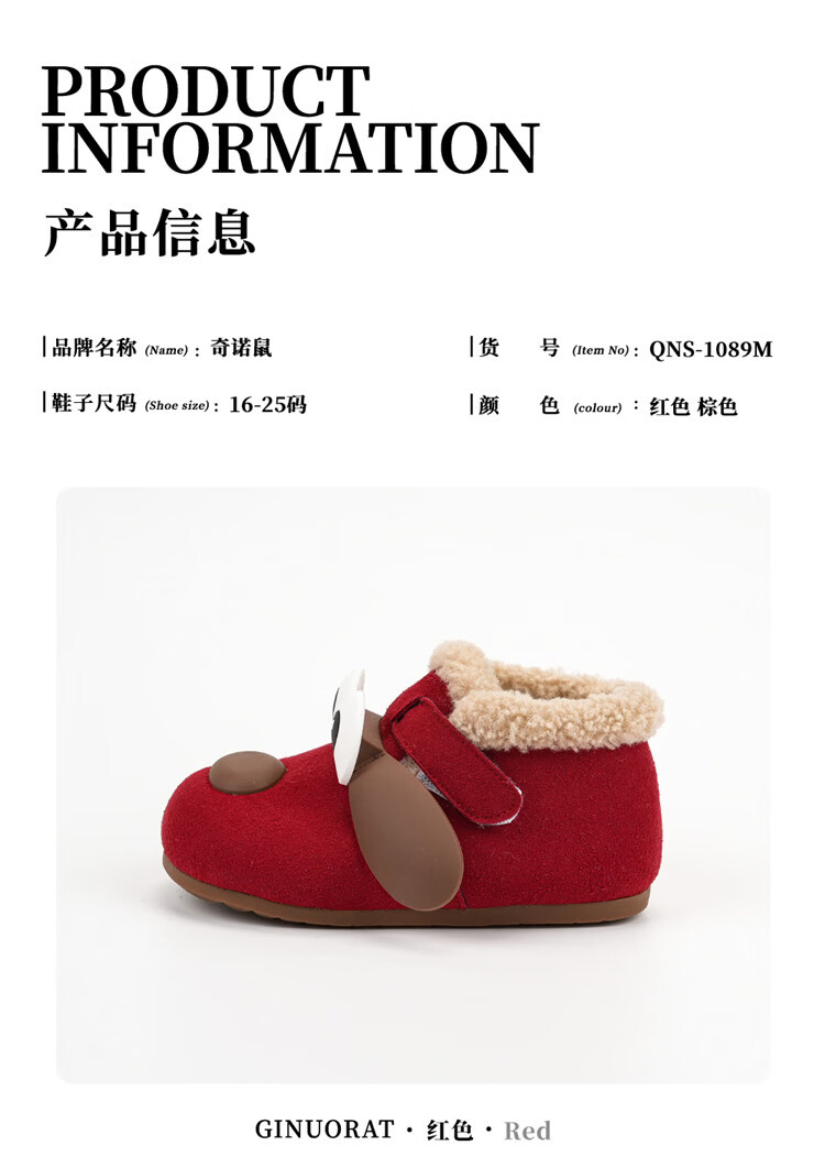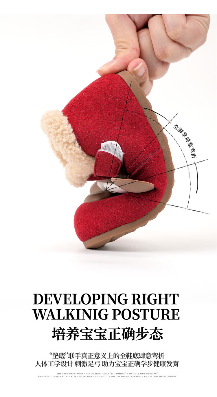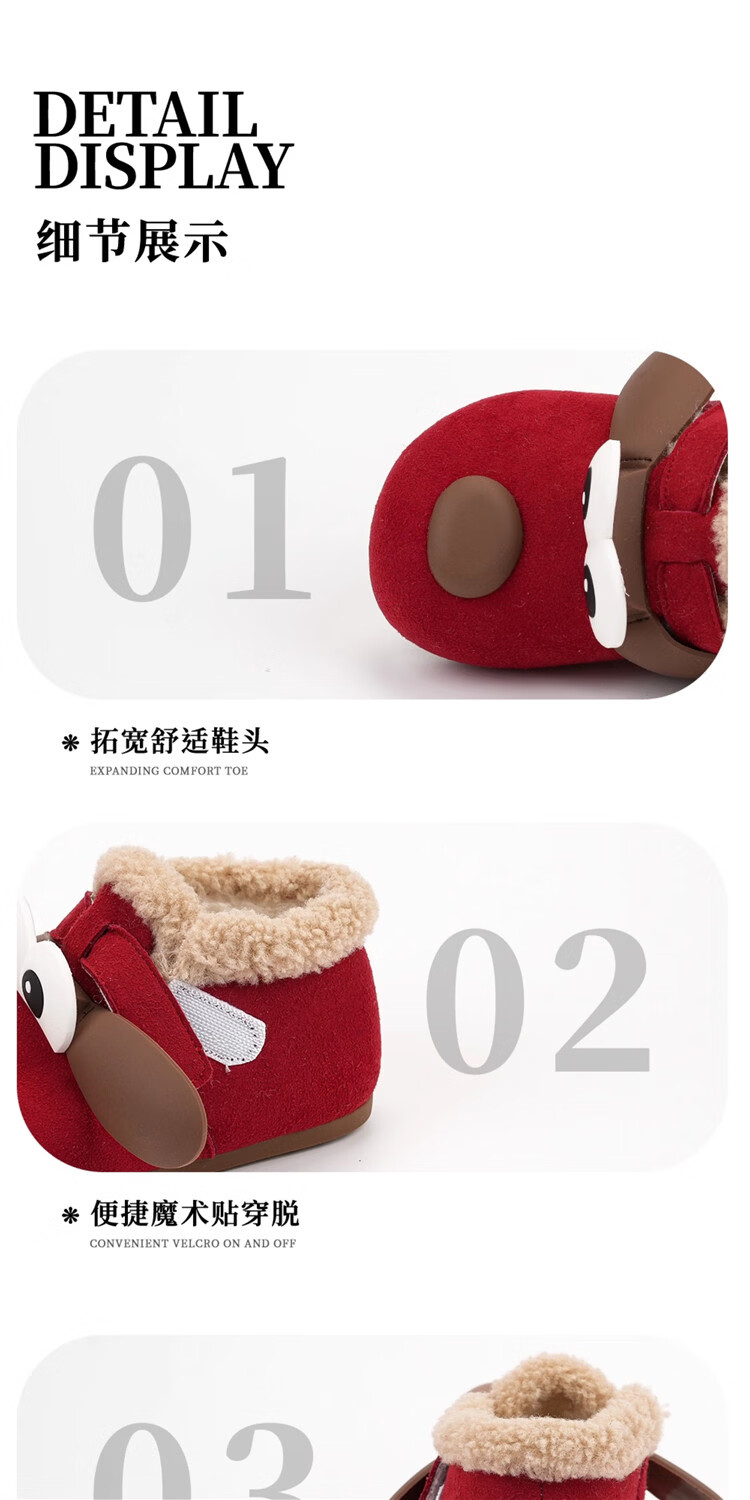 Chino Mouse Official Authentic Baby High Top Birkenstock Shoes Plus Velvet Cotton Shoes for Boys and Girls Winter New Children's Toddler Shoes Red Size 16 (Suitable for Feet Length 11.5-12.0cm)