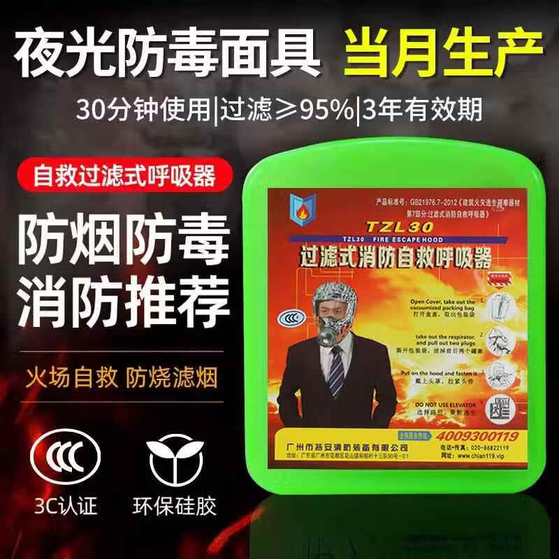 Gas mask full face fire escape household fire and smoke mask filter type fire self-rescue respirator upgrade 1.2m fire blanket + 1 mask