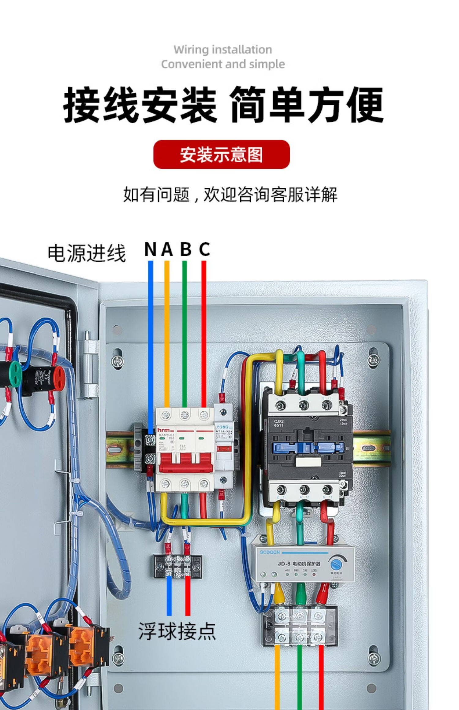 220V household water pump control box, one for use and one for backup float, 380V pressure gauge, one control and two-phase distribution box, single-phase water pump control box 0.75-4KW (economical type with short circuit 1